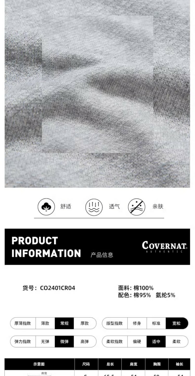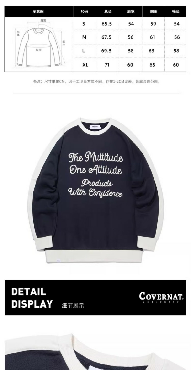 Covernat春季新款2024字母卫衣潮套头圆领上衣情侣同款CO2401CR04
