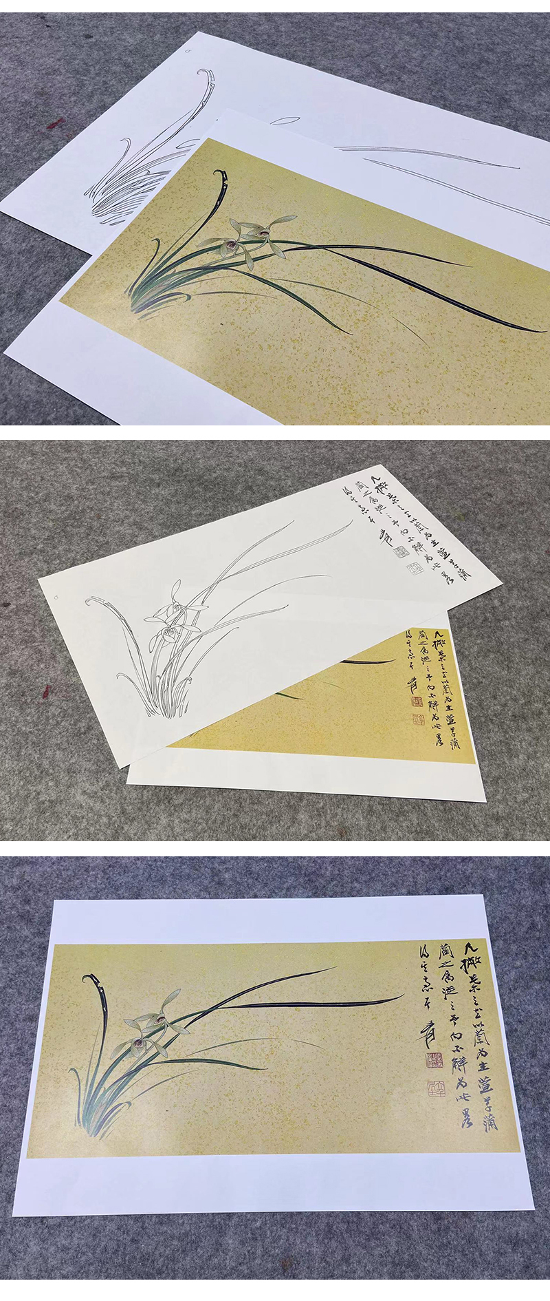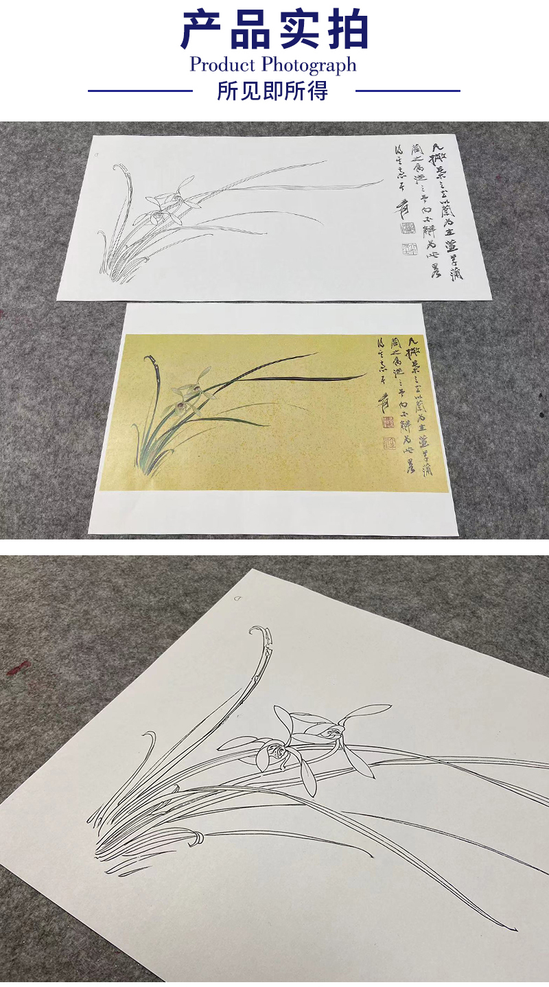 张大千横幅工笔花鸟白描底稿《兰花》临摹勾线高清打印稿QD25
