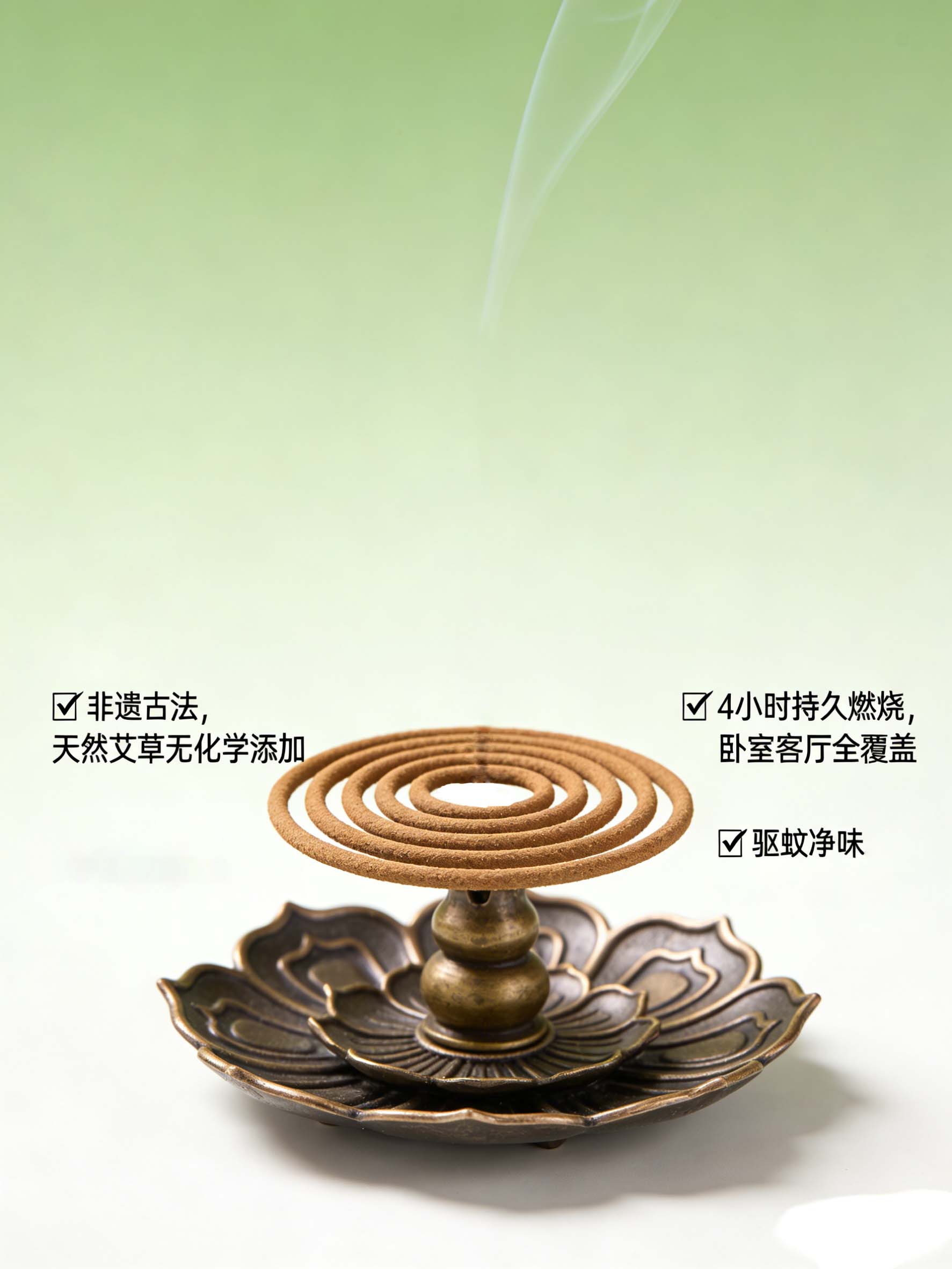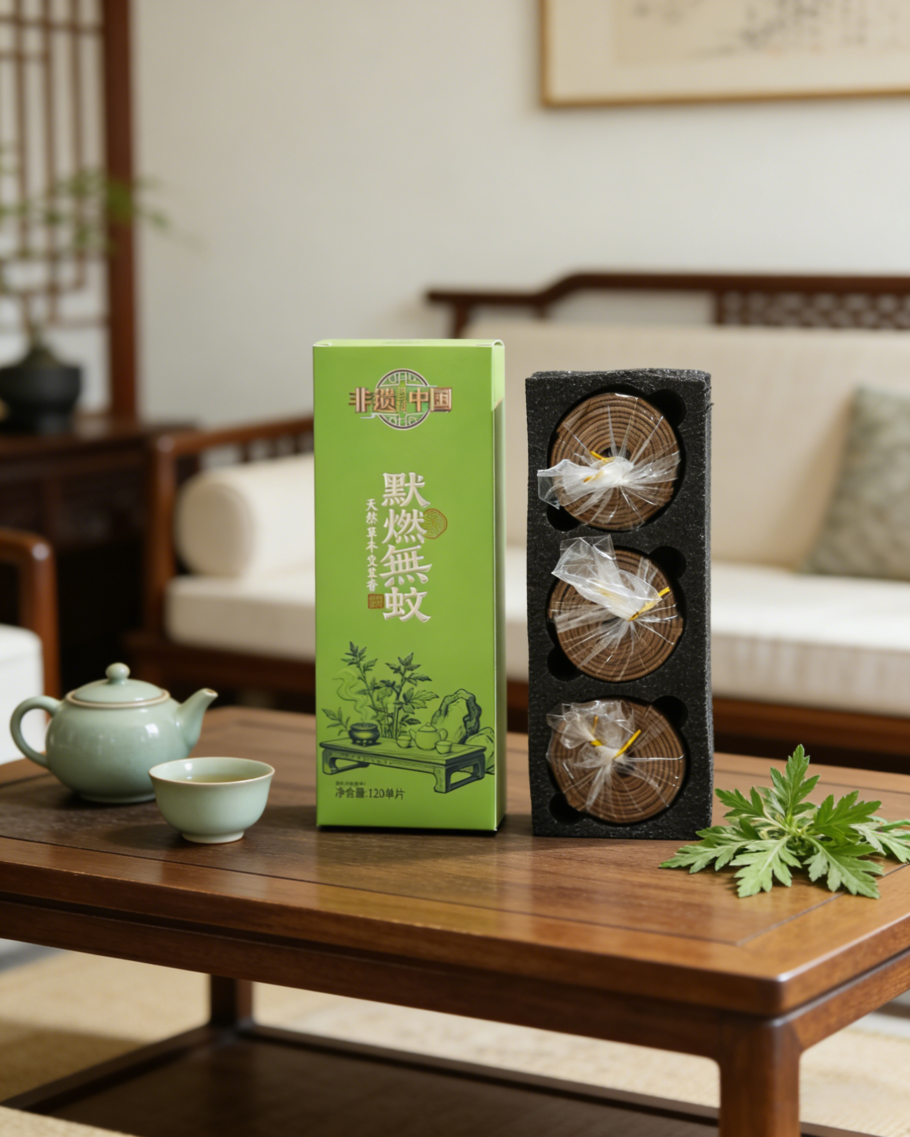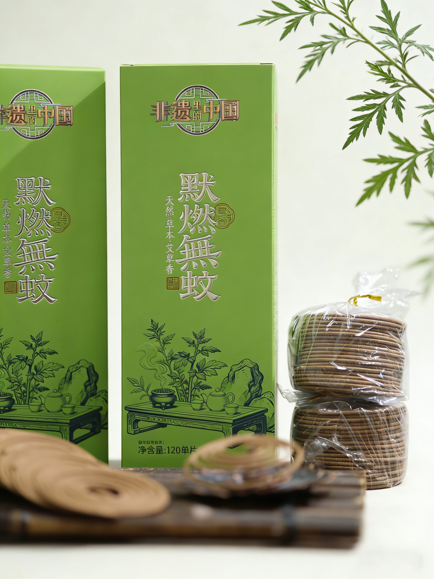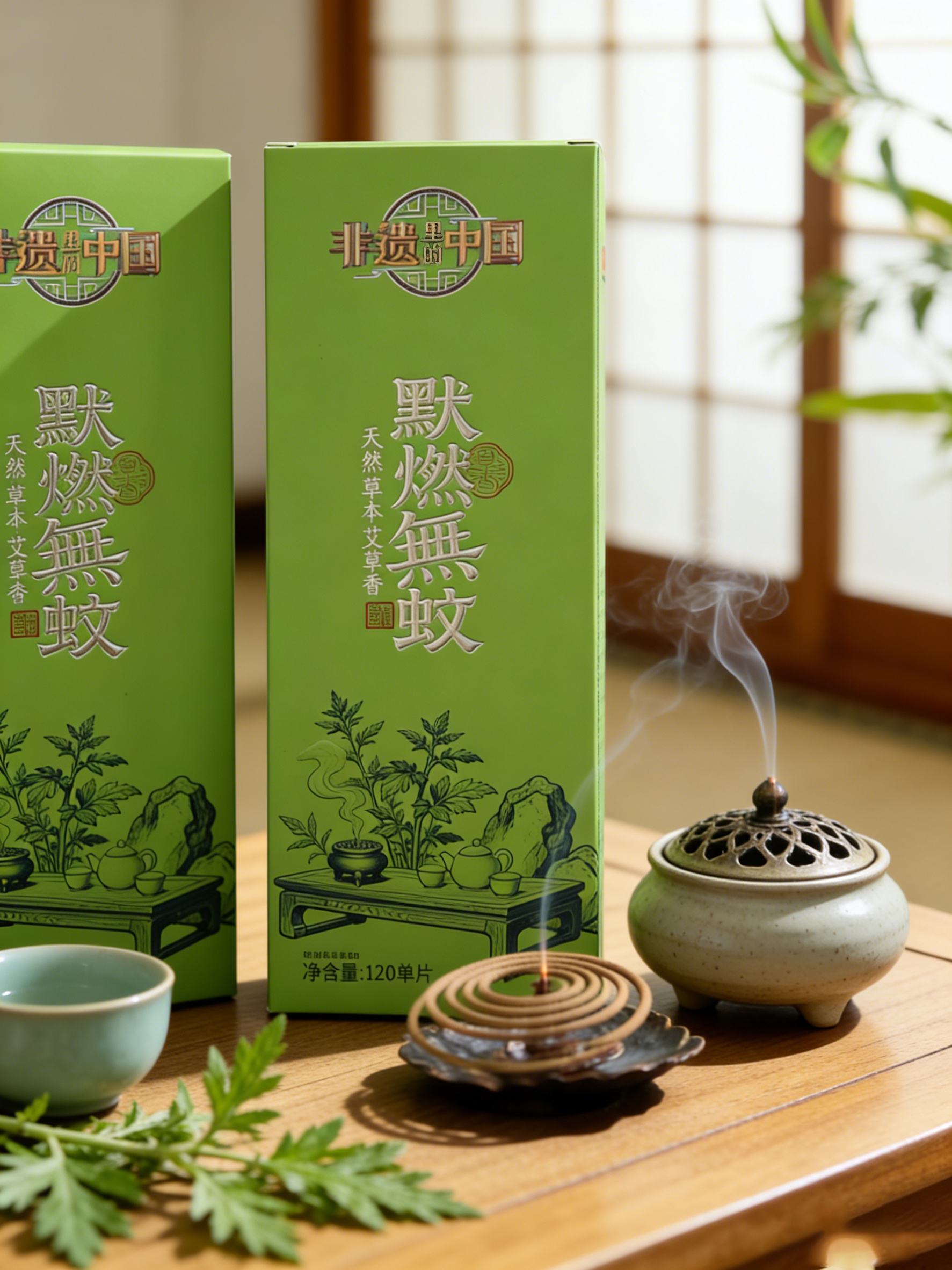 【超值2盒装 送莲花插1个】非遗里的中国 默燃無蚊线香 天然艾草香 120片/盒*2盒