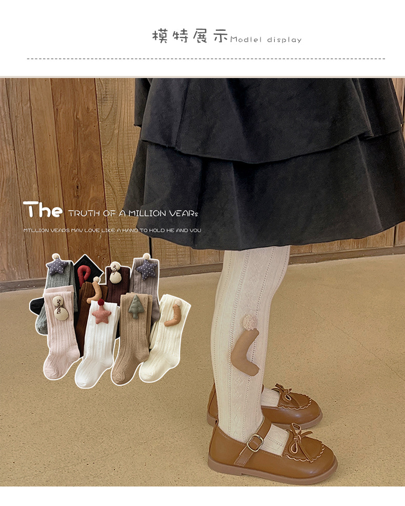 【精梳棉制,甜美又舒适~】春秋新款女童打底裤袜 精梳棉宝宝a类儿童连裤袜 甜美圣诞袜子-QQ