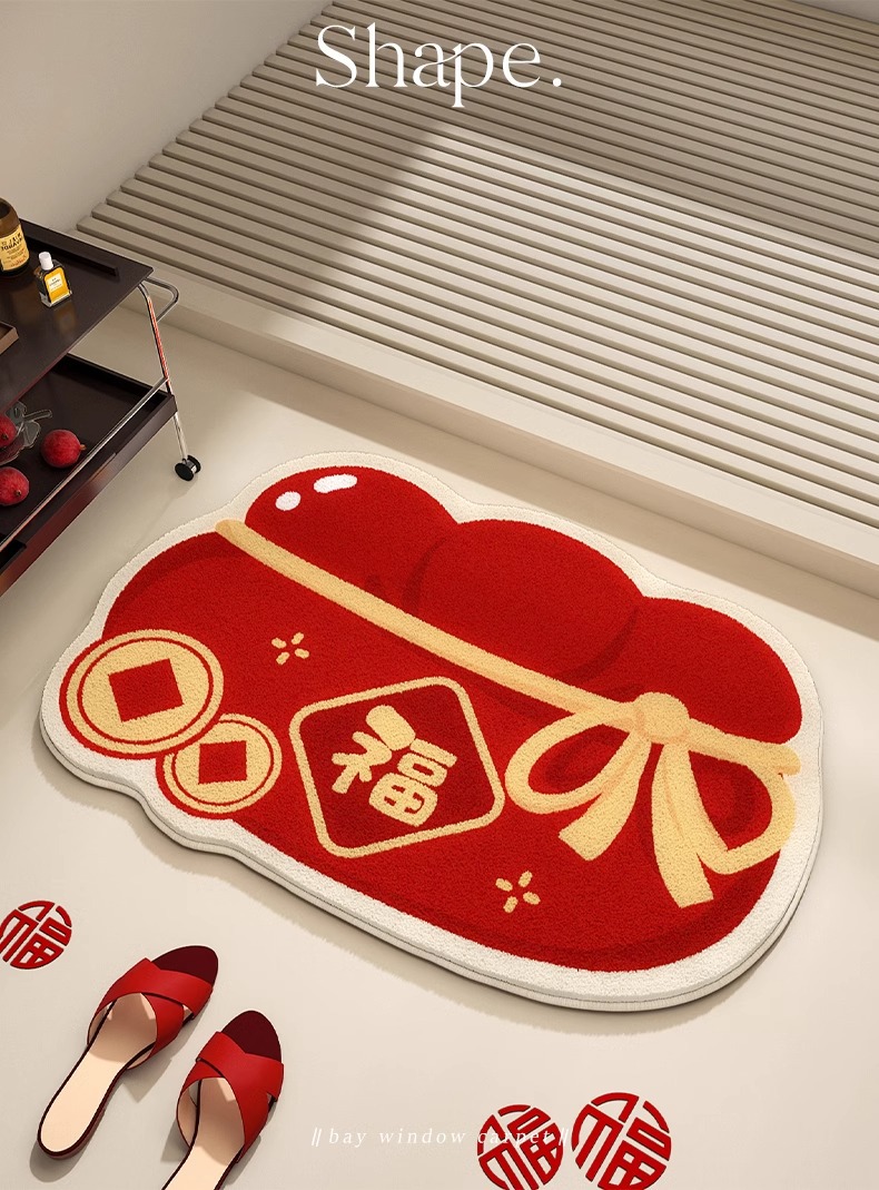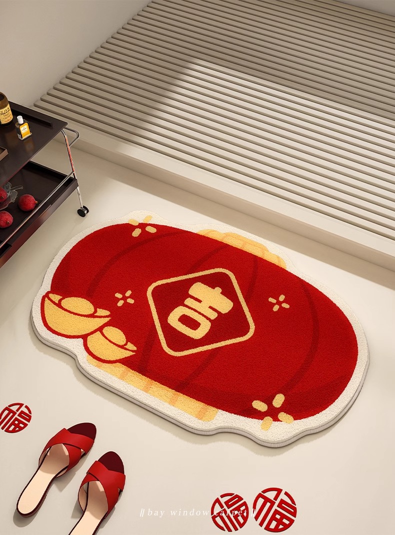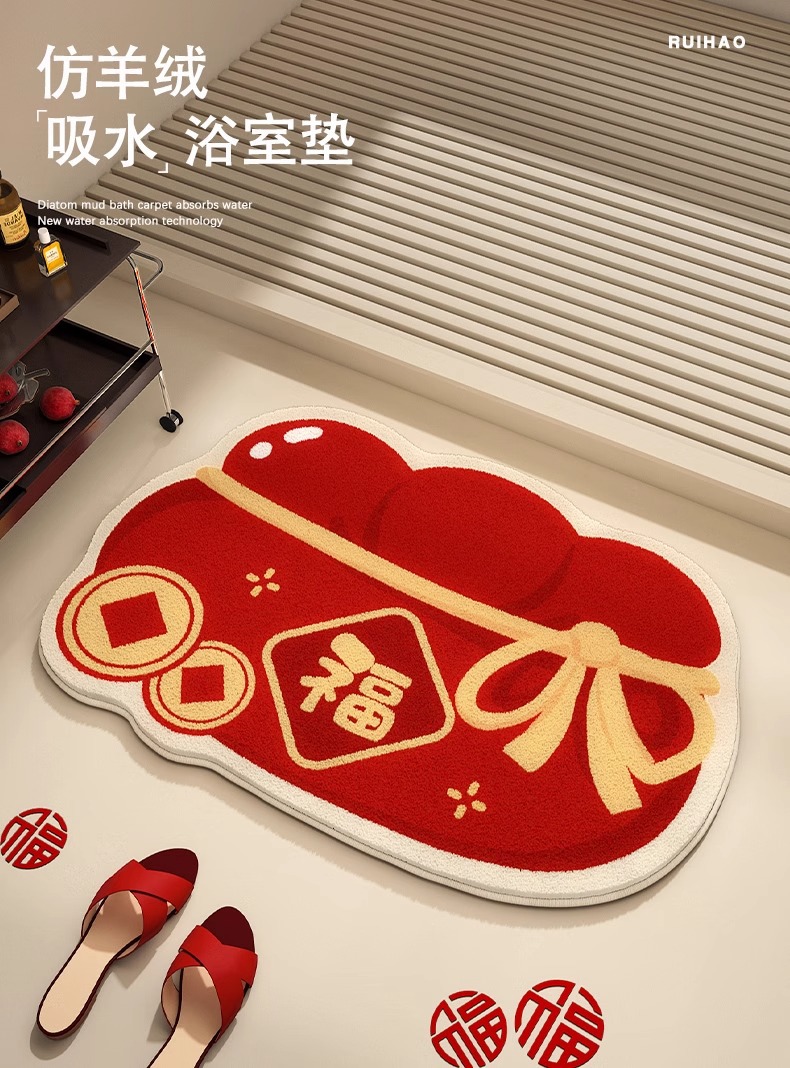 【新年好物!仿羊绒吸水浴室垫】新年喜庆仿羊绒地毯 耐脏易打理 浴室地垫吸水防滑 淋浴地垫 表面轻弹柔软 美观度与功能性相得益彰-QQ