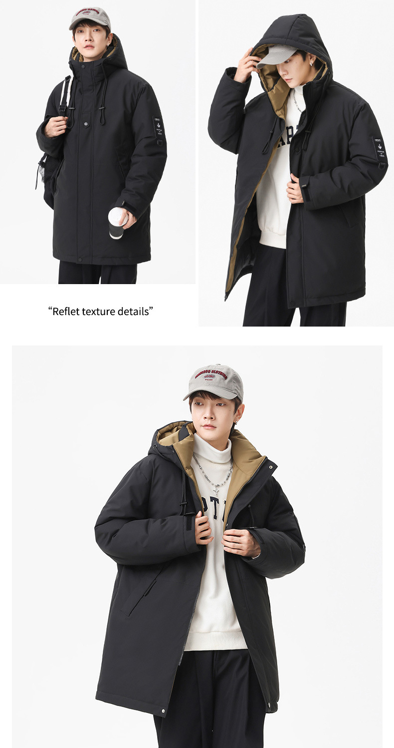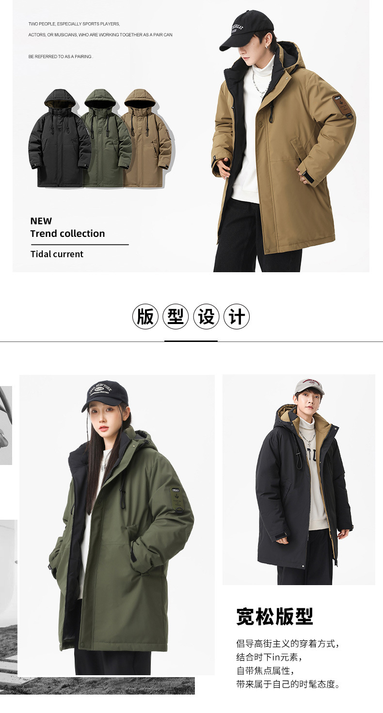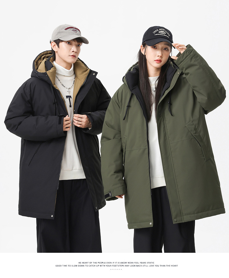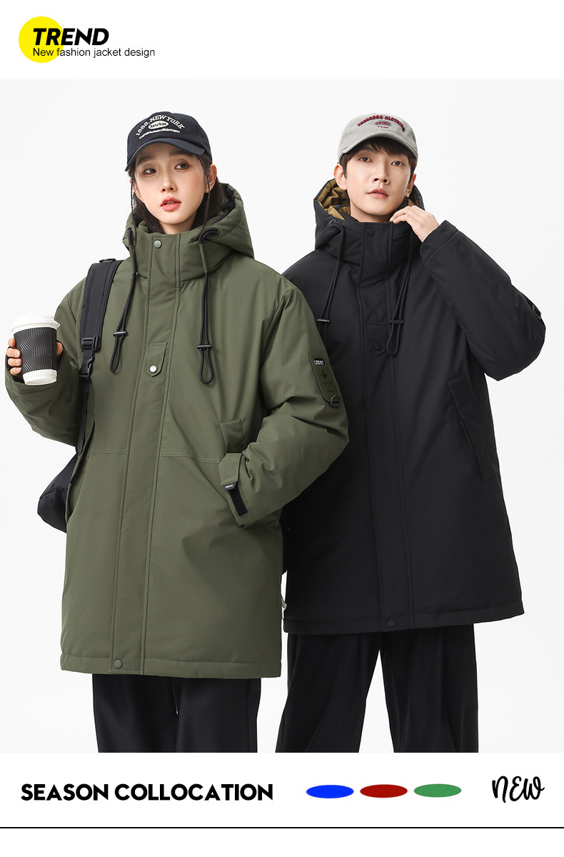 冬季新款【加厚拼连帽外套】棉服男中性风 潮牌中长款工装棉衣