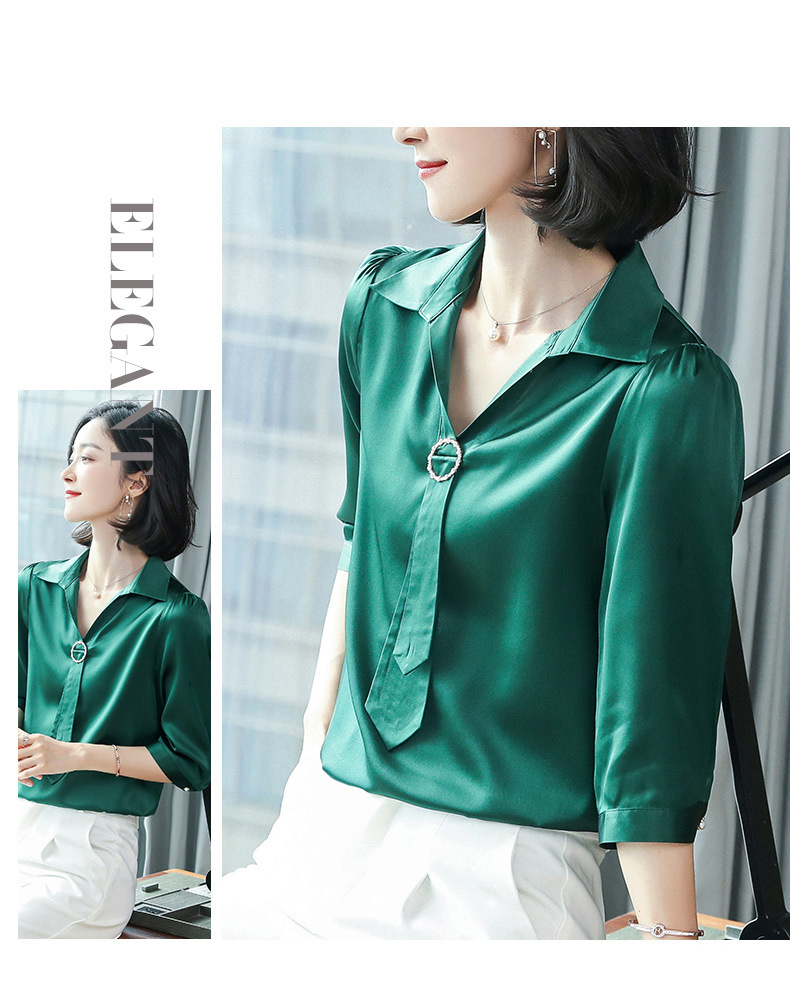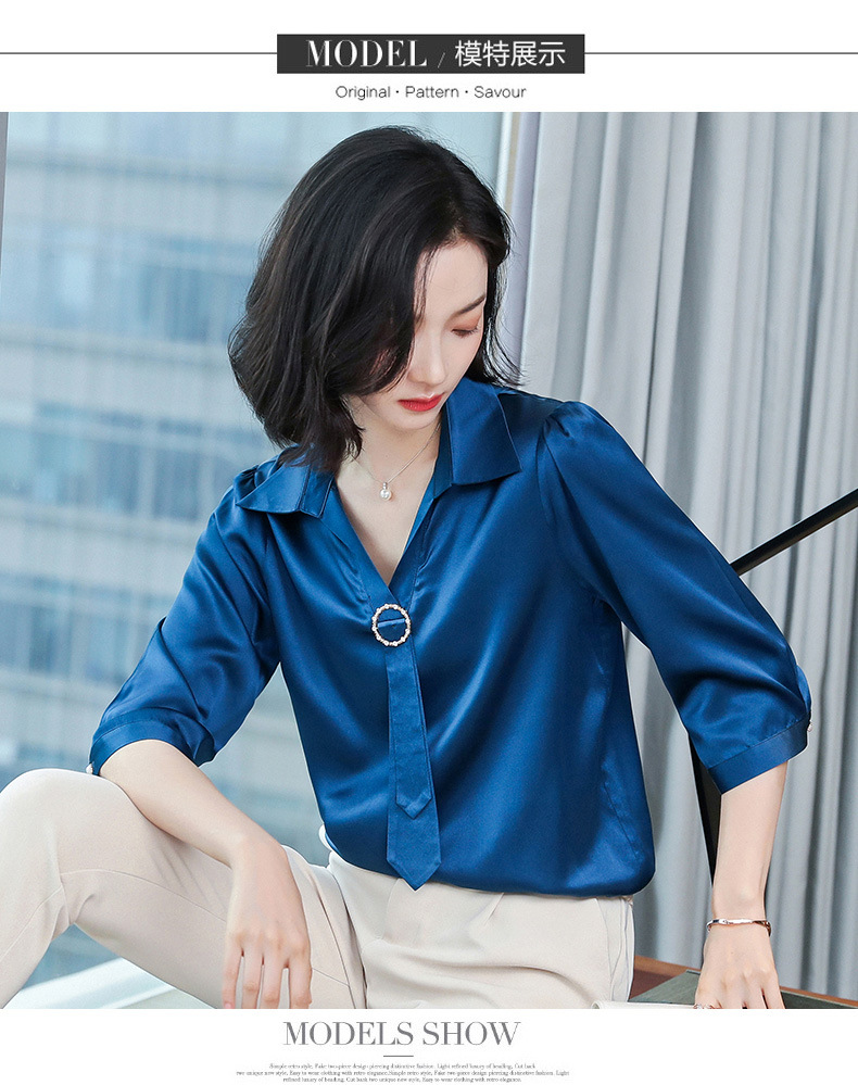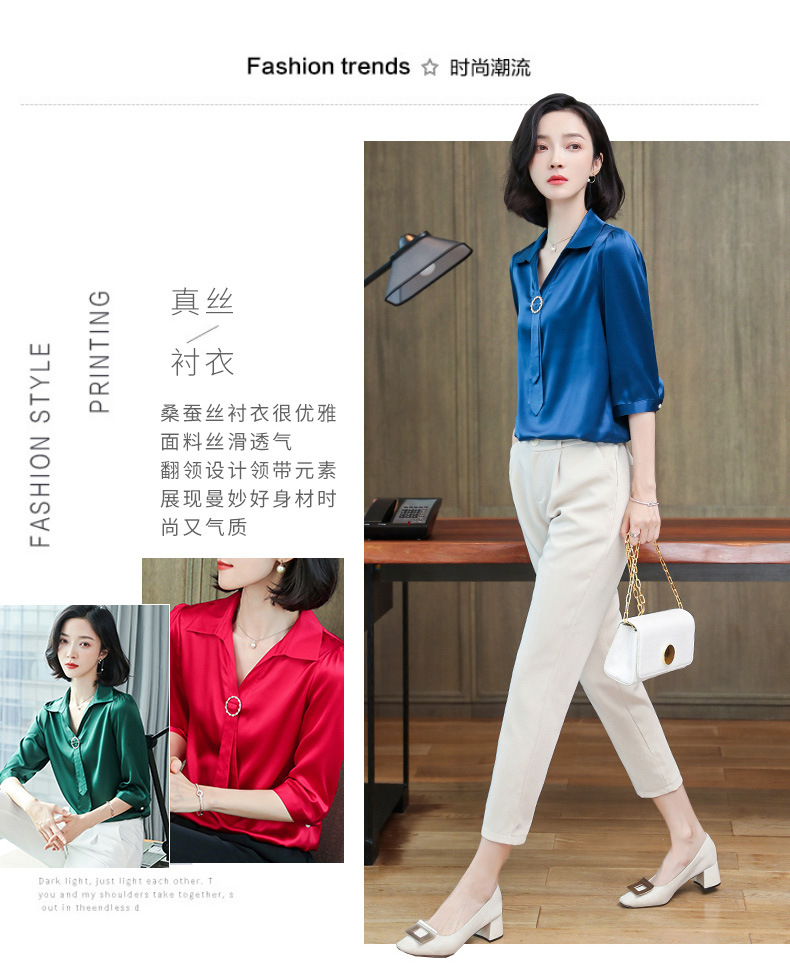 上海旗袍厂ASE-9021 圆领时尚气质真丝衬衫