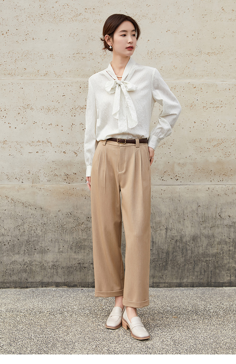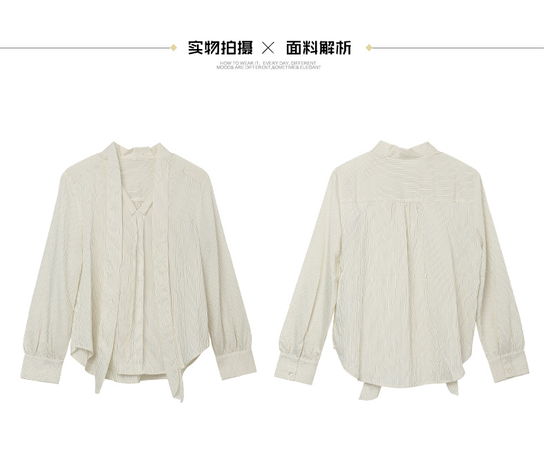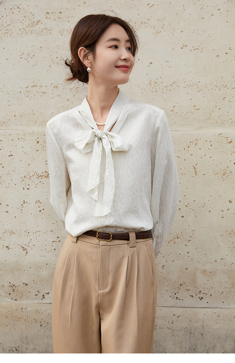 优雅气质款白色条纹蝴蝶结衬衫女 长袖通勤百搭上衣