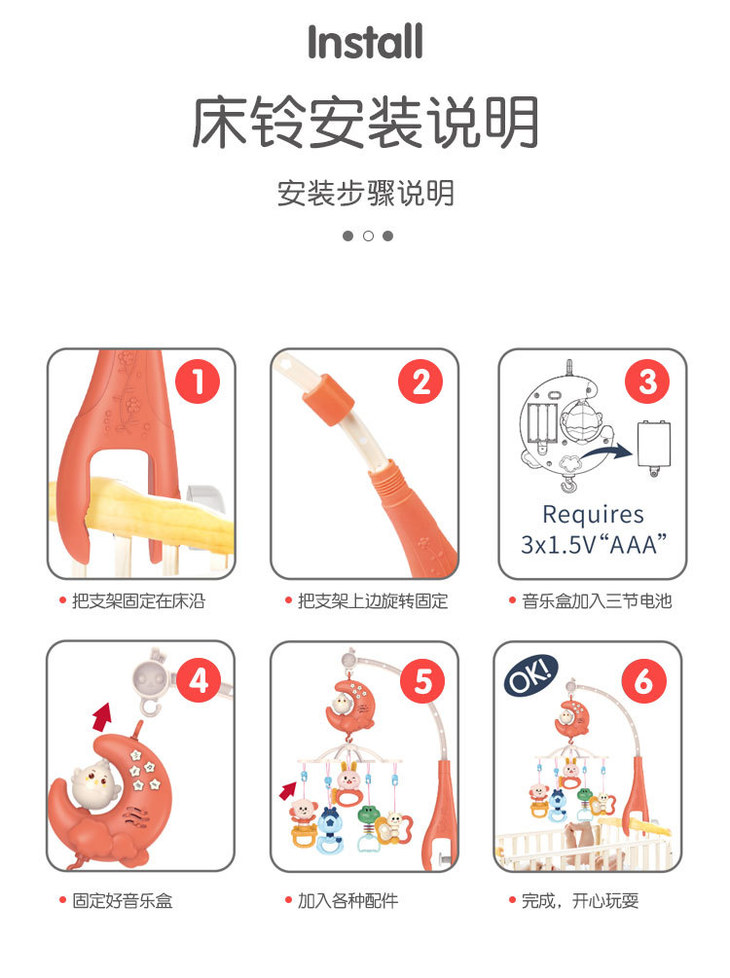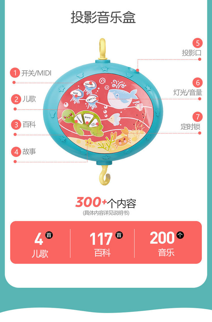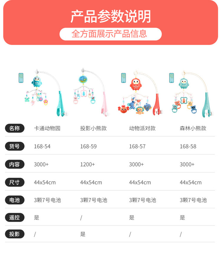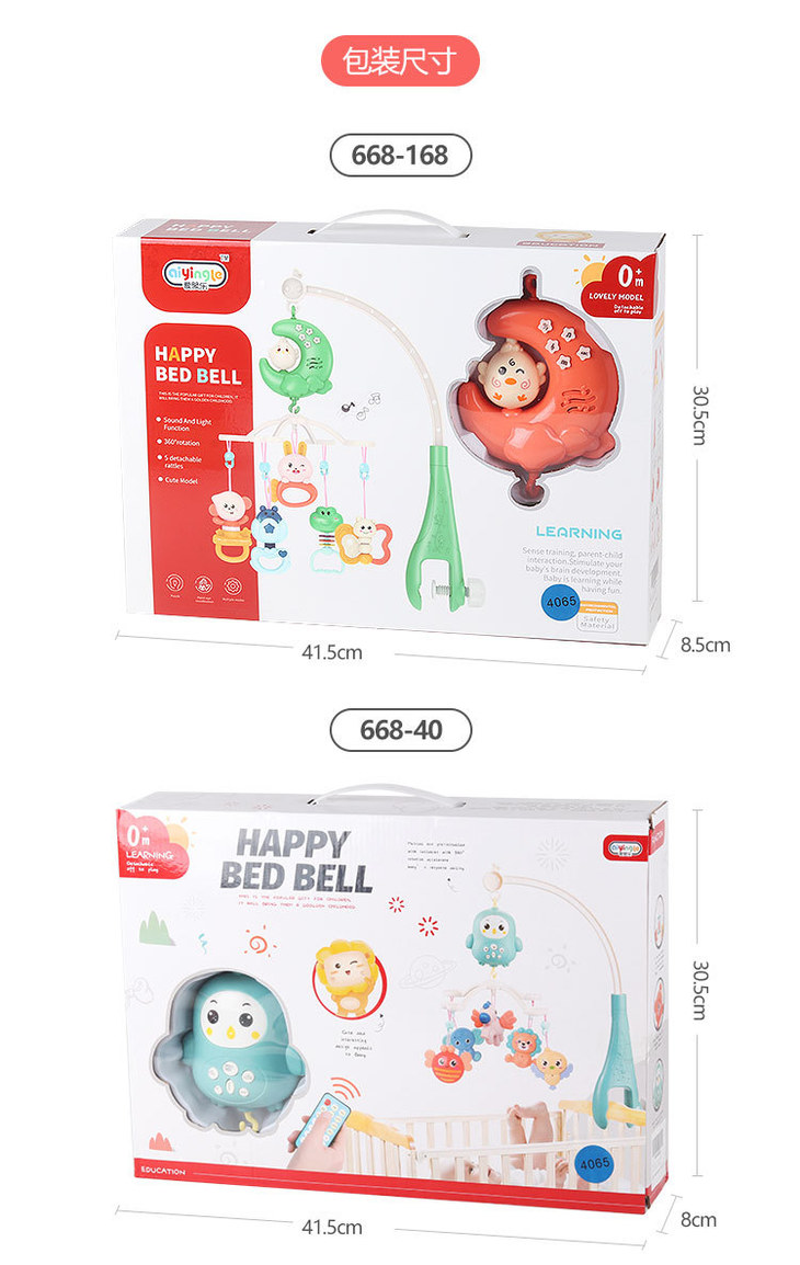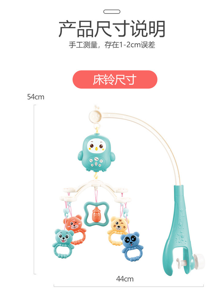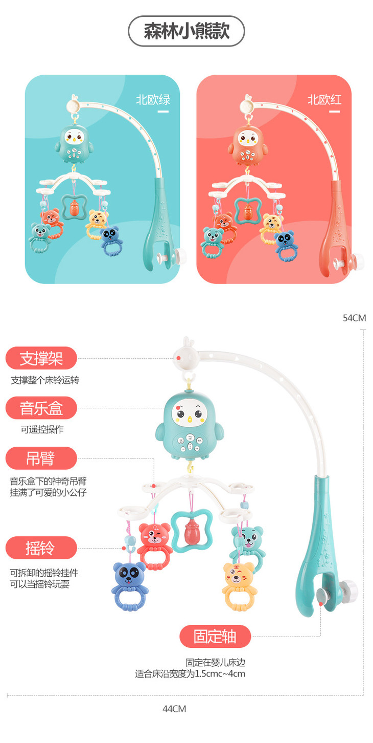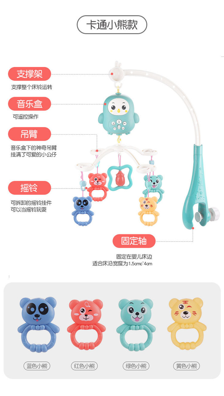 婴儿床铃玩具音乐旋转遥控床头铃新生儿宝宝摇铃套装安抚玩具-W仓
