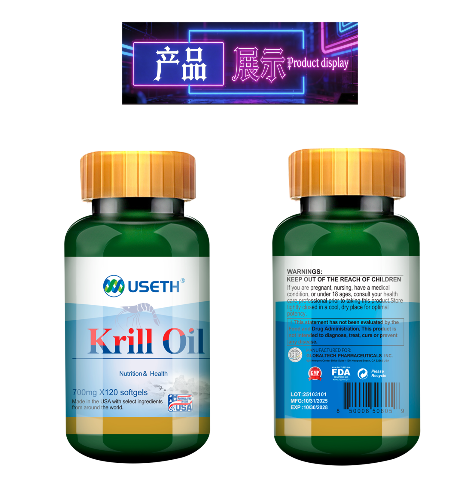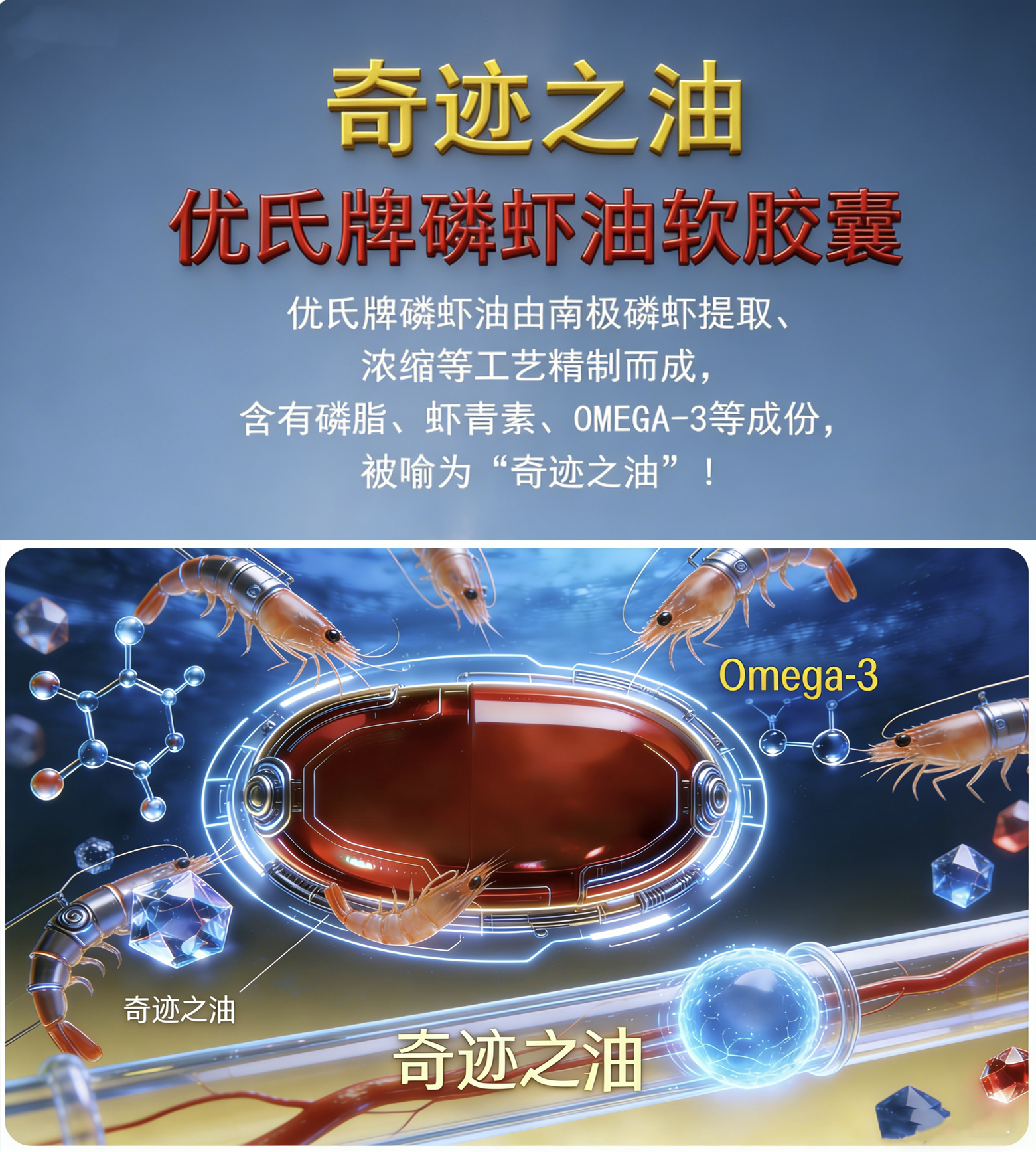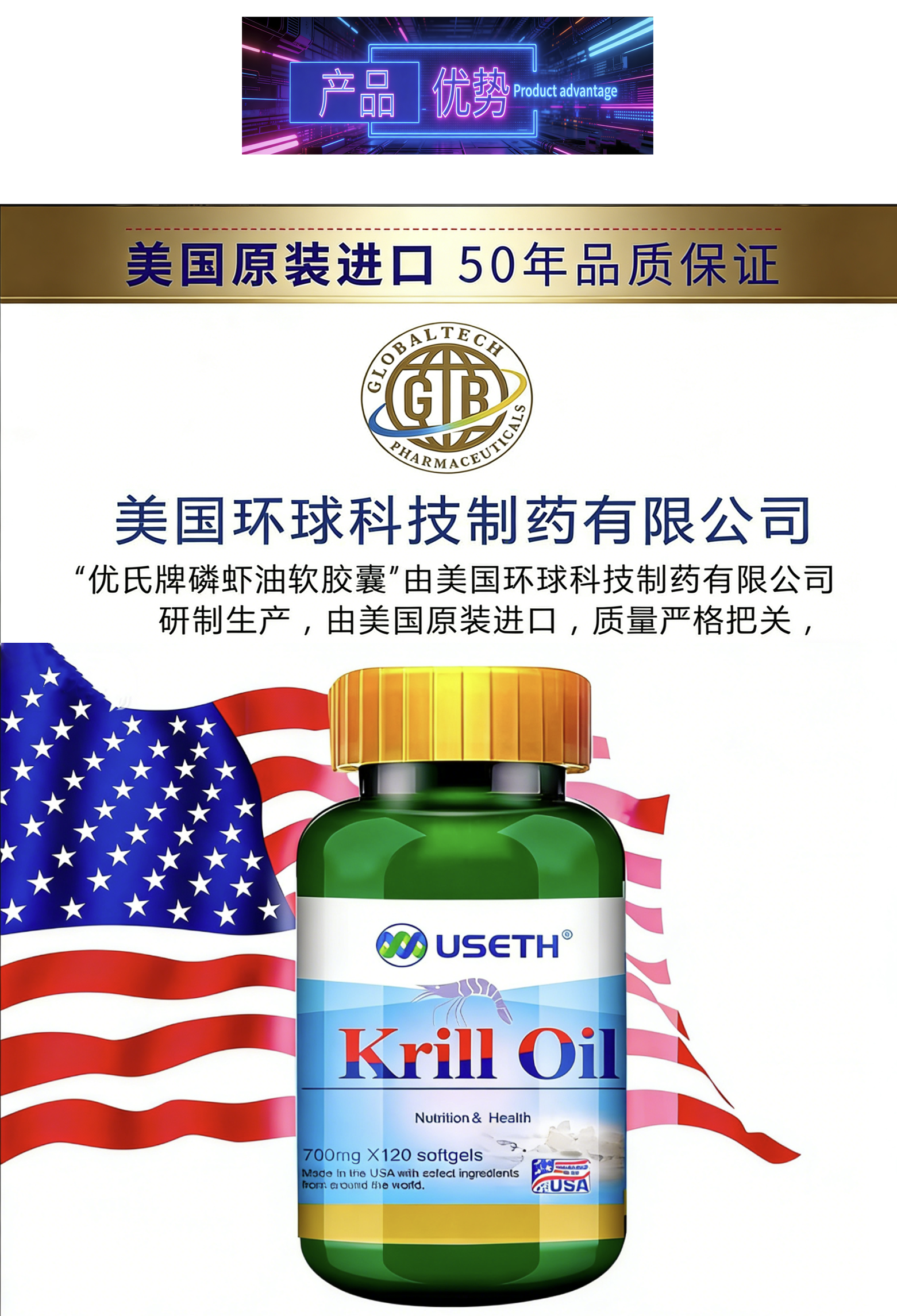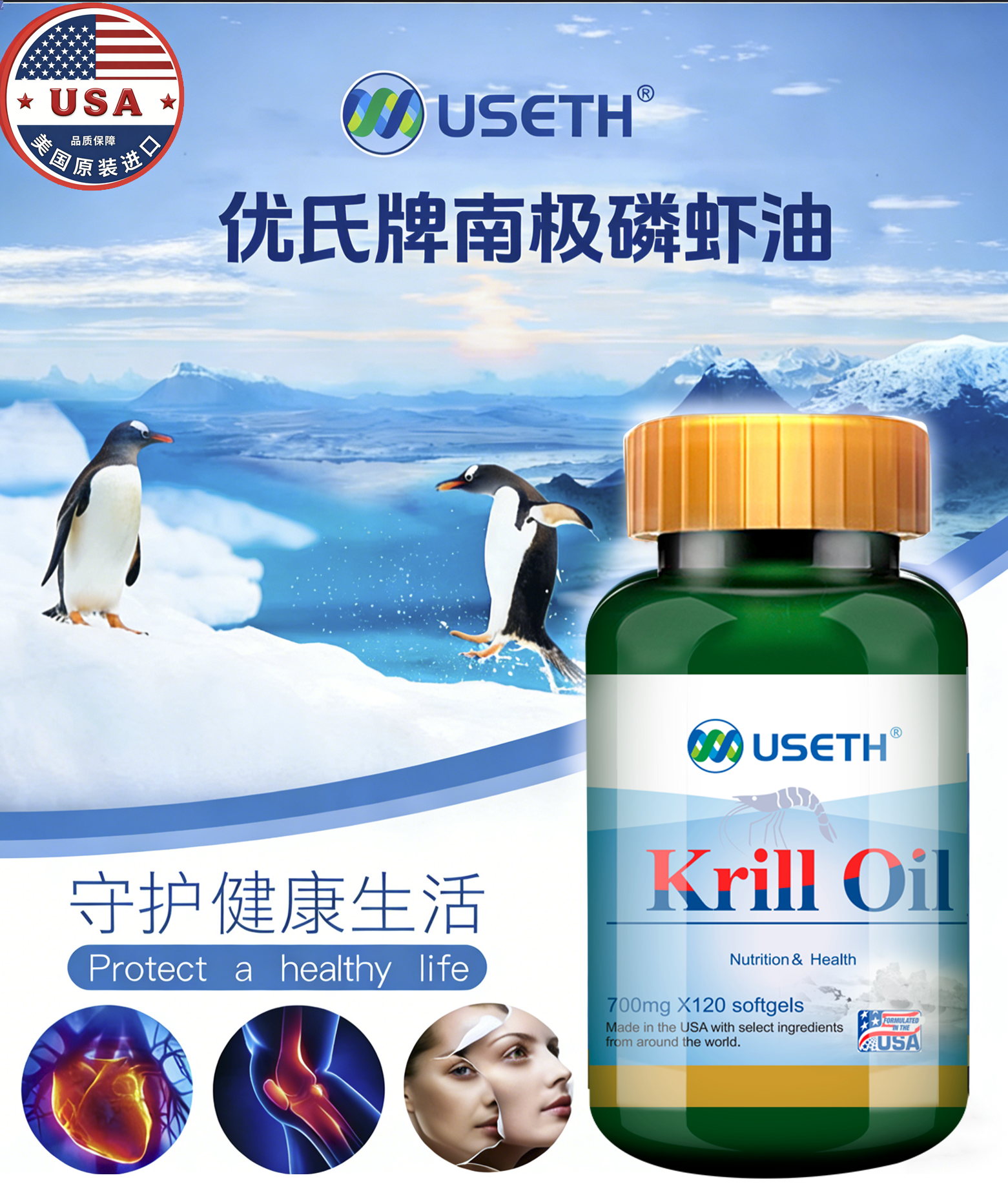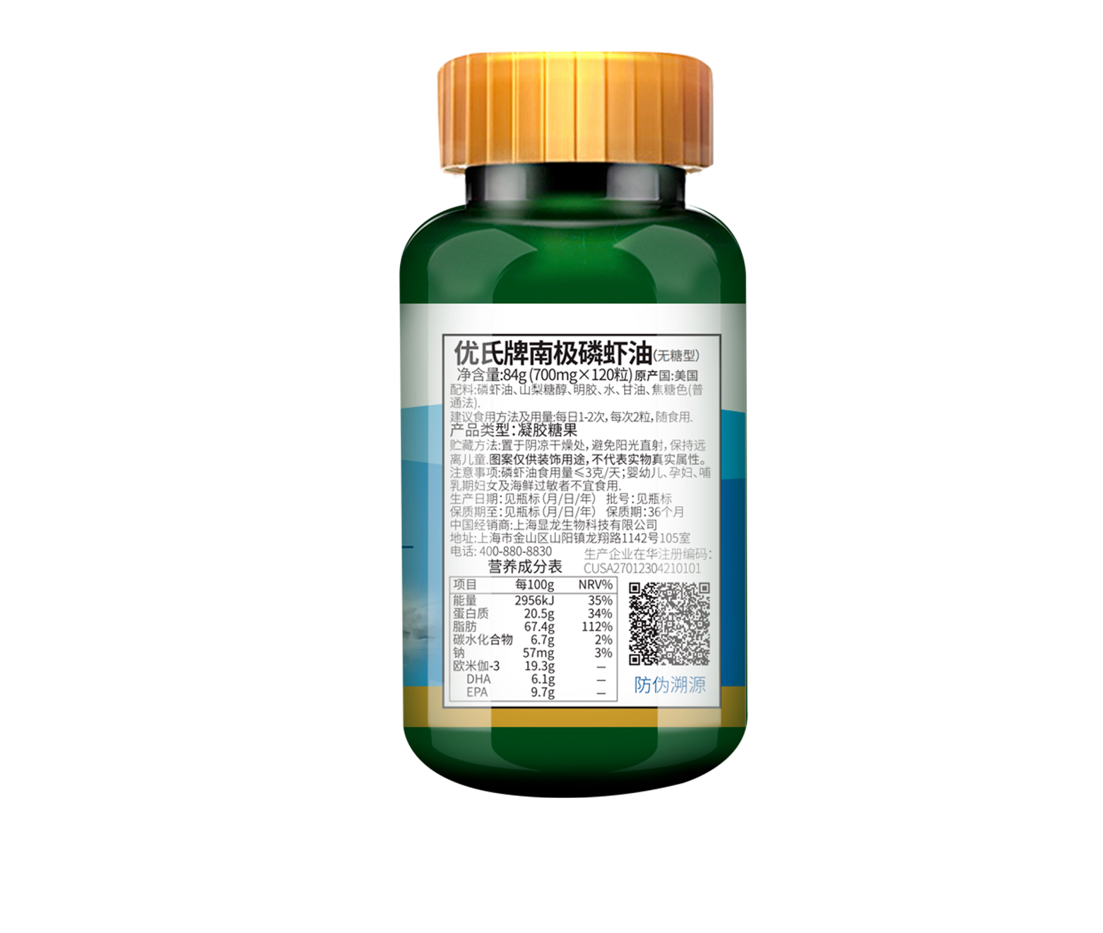 优氏 美国原装进口 南极磷虾油Omega3中老年高端磷虾油120粒/瓶