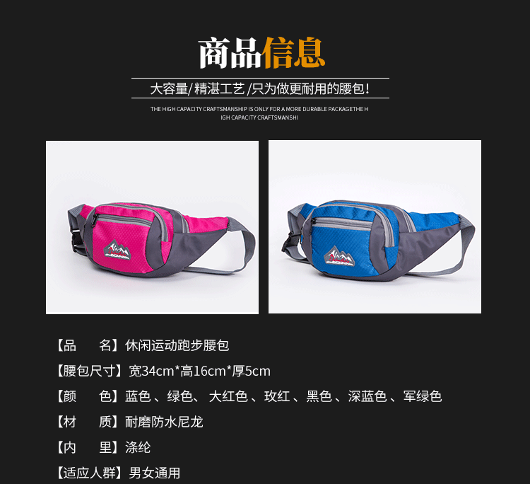HD-8602新款手机防水尼龙户外多功能运动腰包 TZW