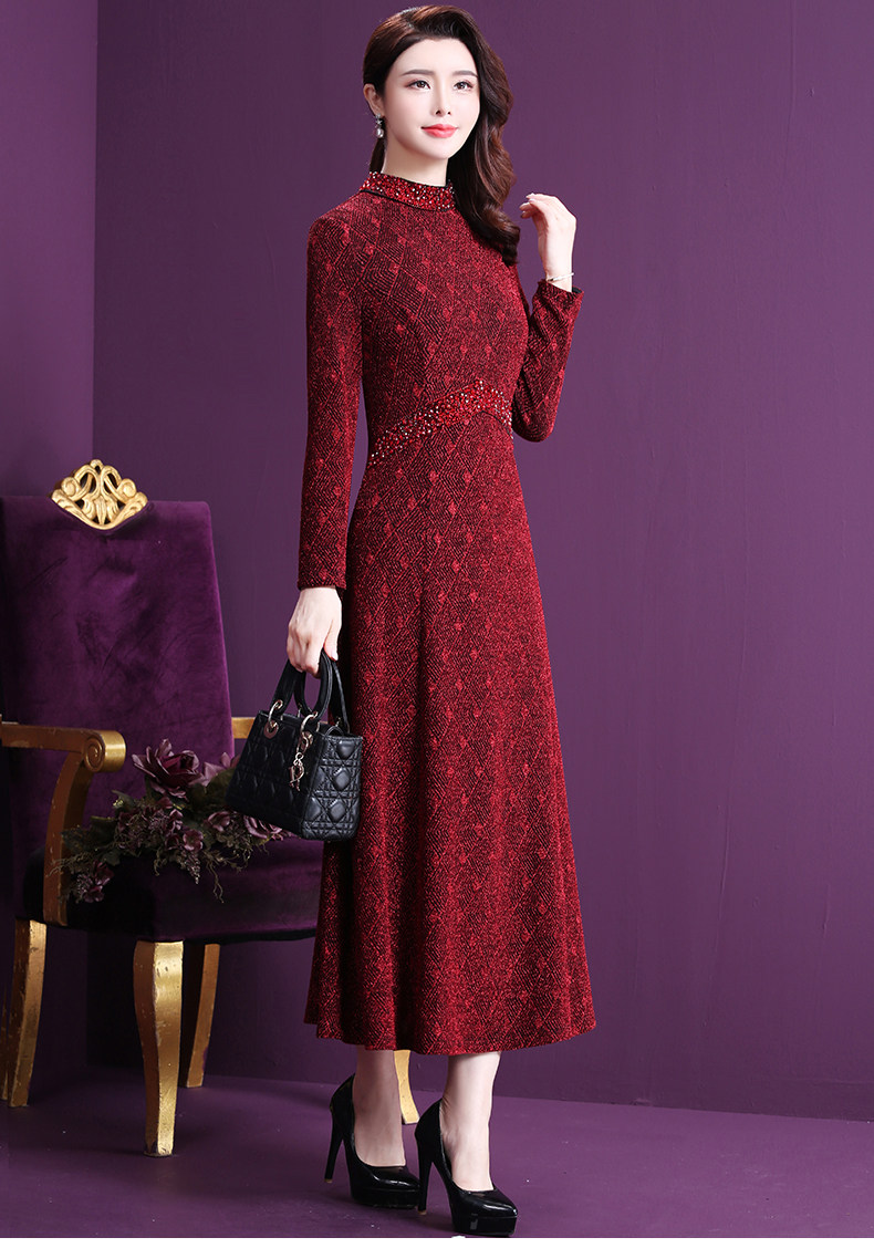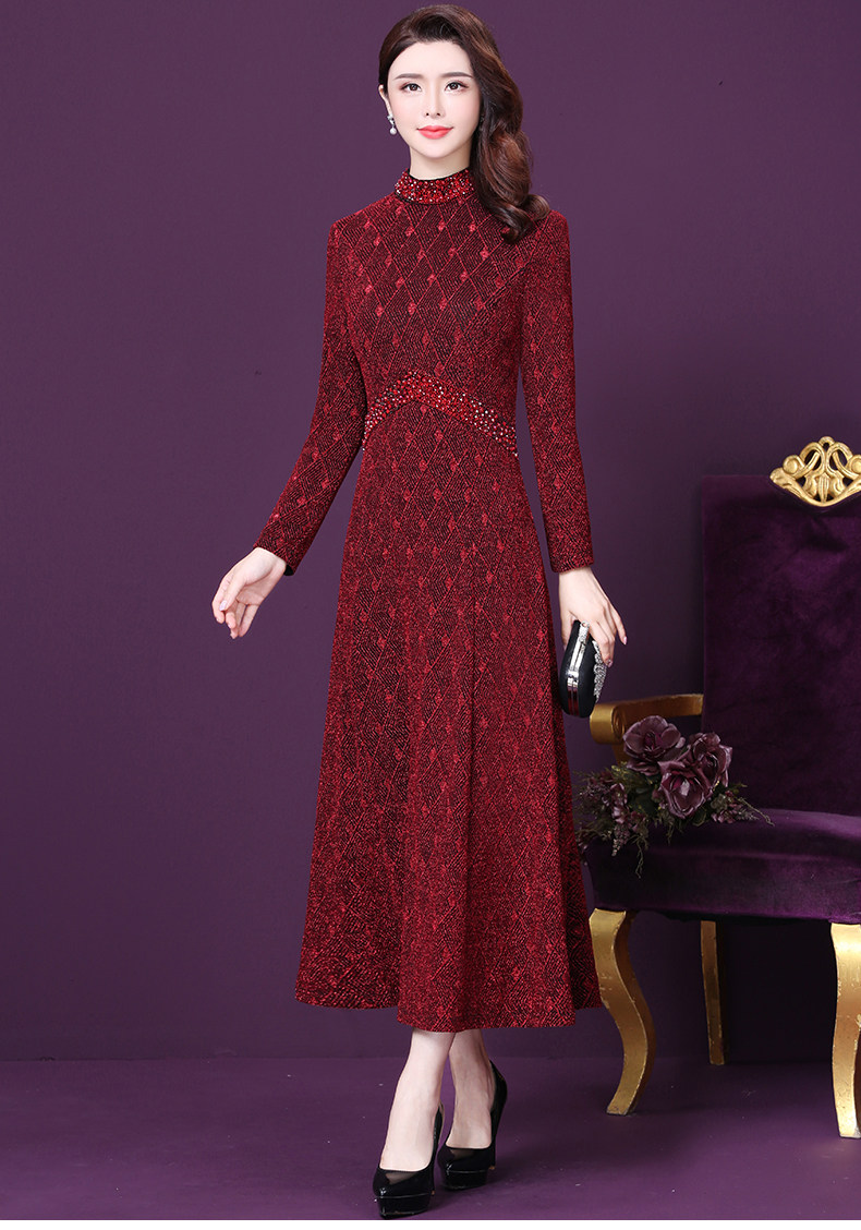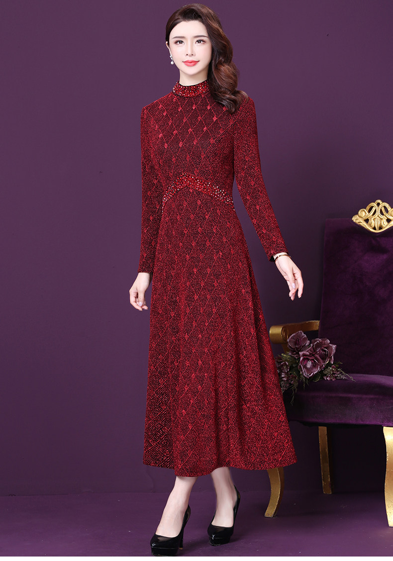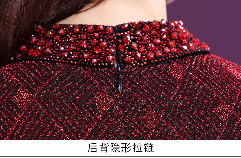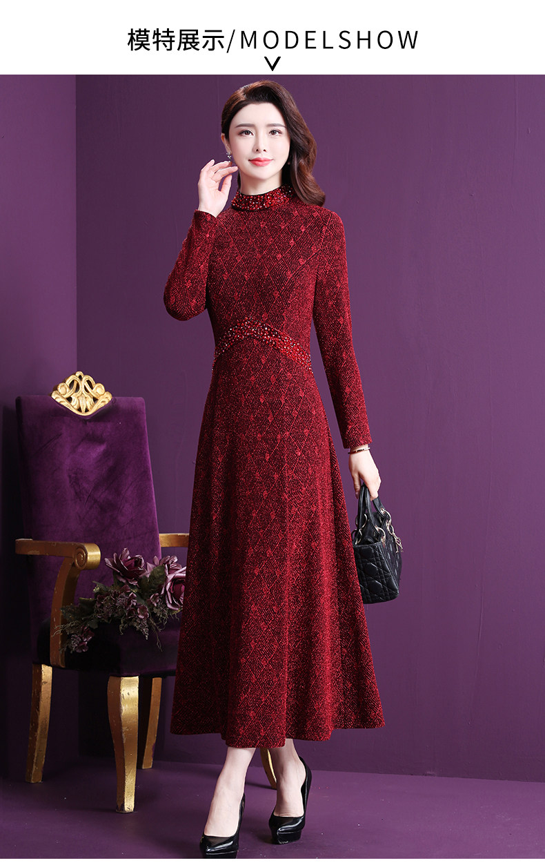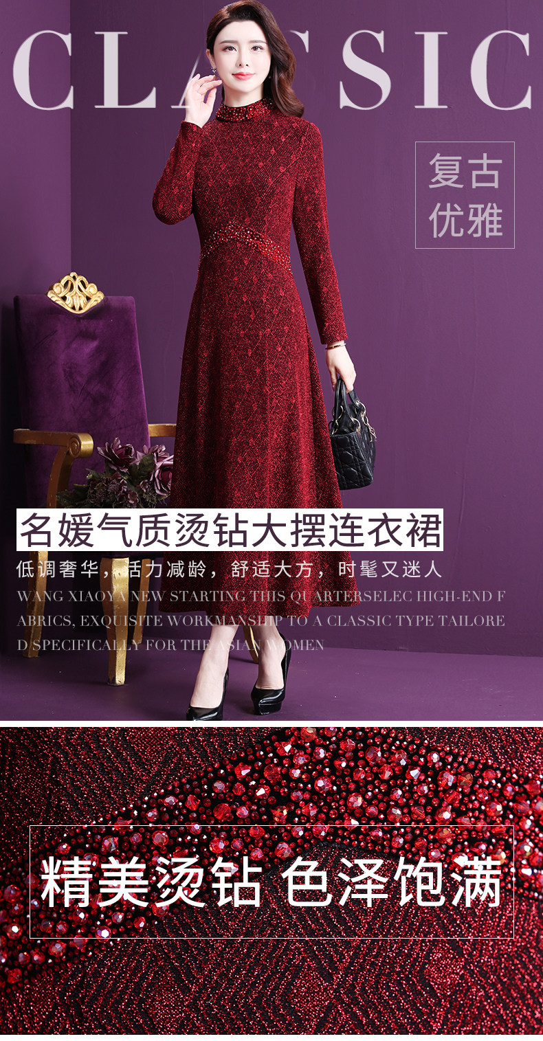 WXY-3999秋季新款时尚气质修身显瘦烫钻宴会贵夫人长袖连衣裙