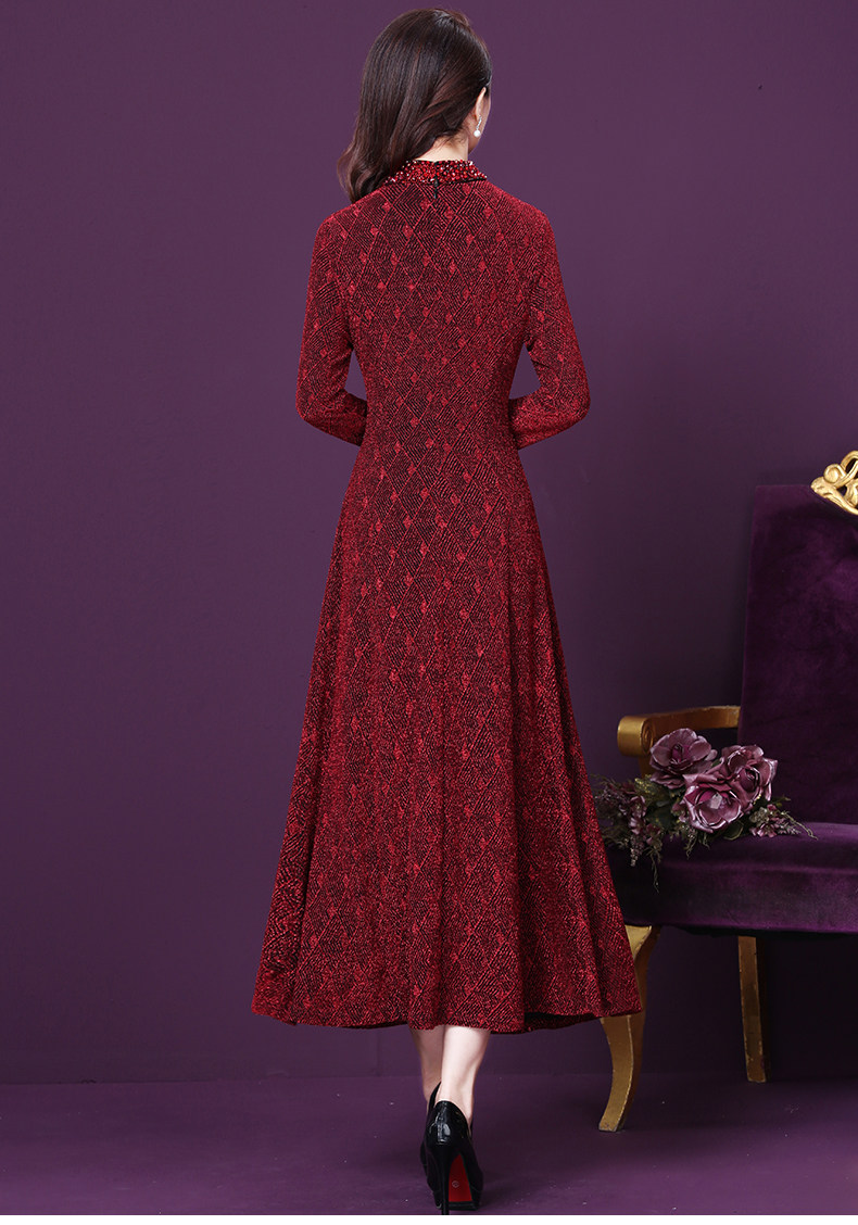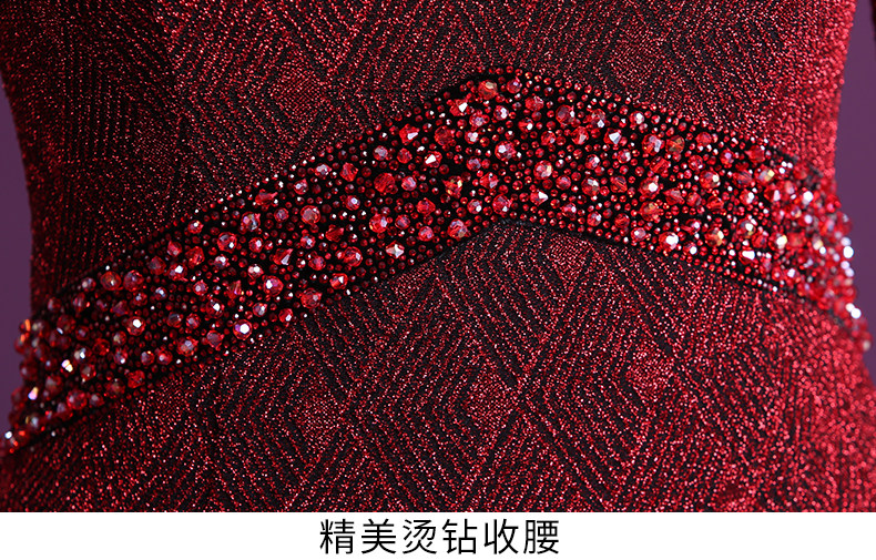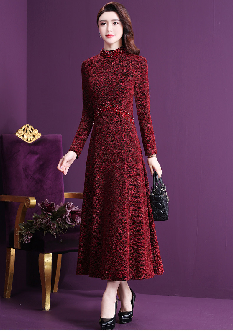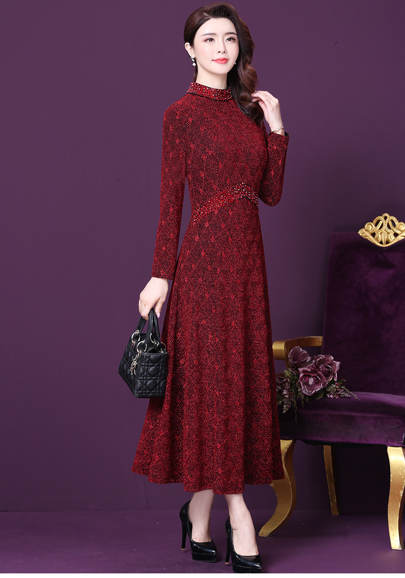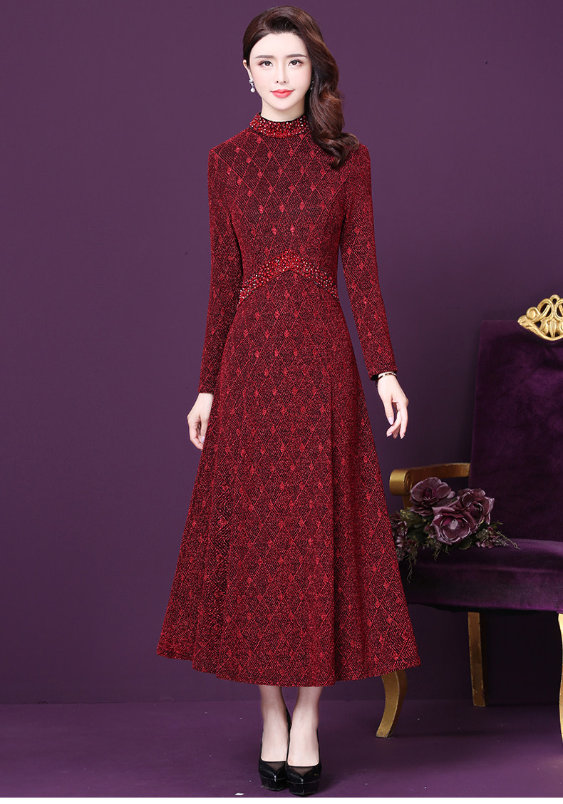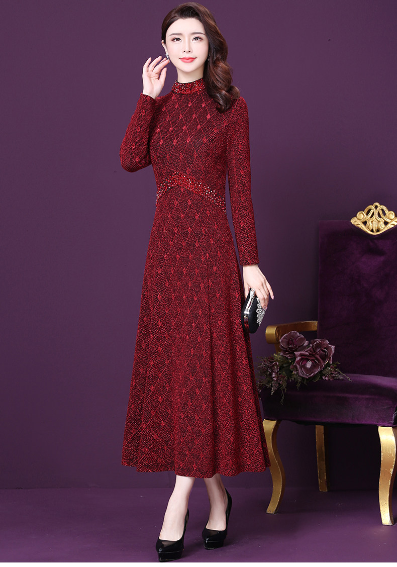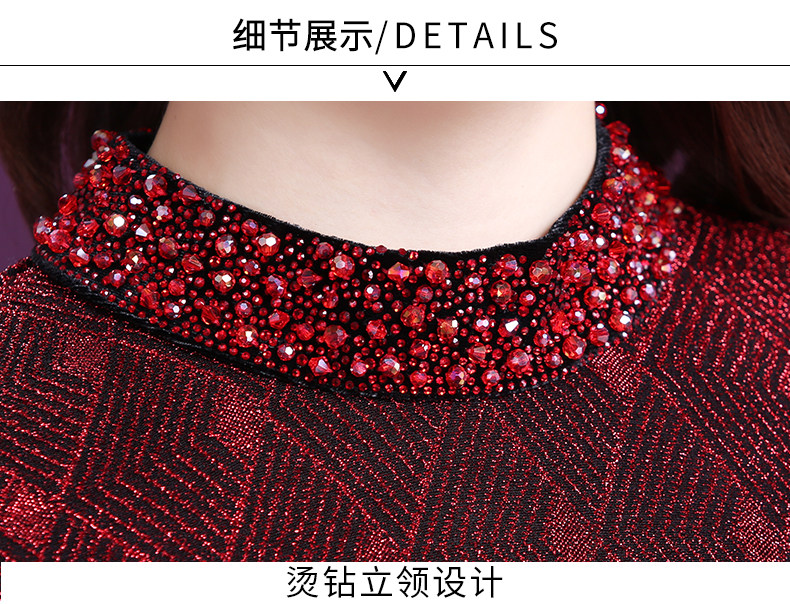WXY-3999秋季新款时尚气质修身显瘦烫钻宴会贵夫人长袖连衣裙