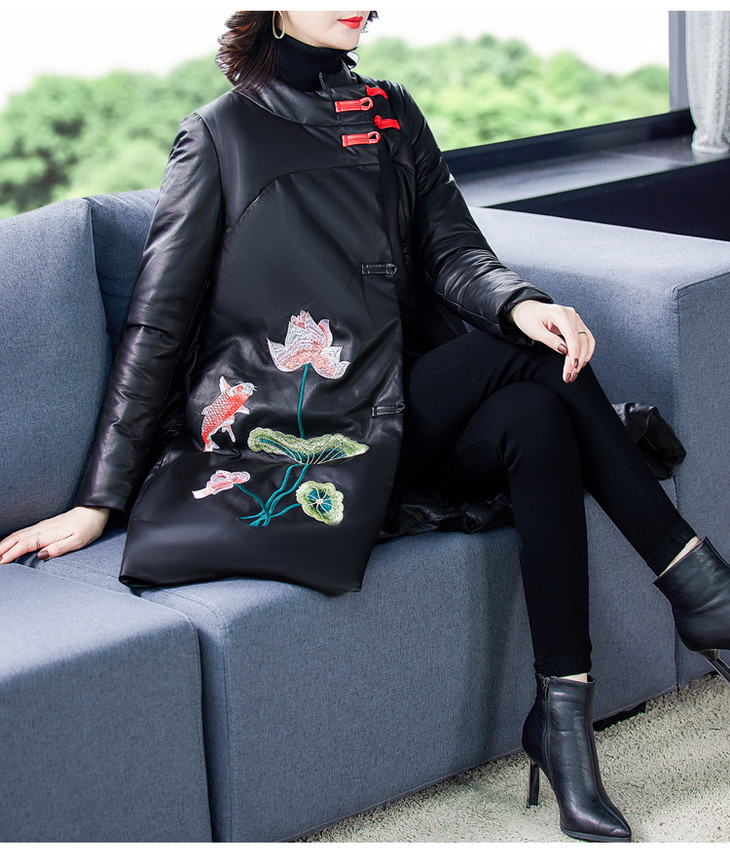 DDS-仿绵羊皮绣花宽松仿皮衣棉服外套