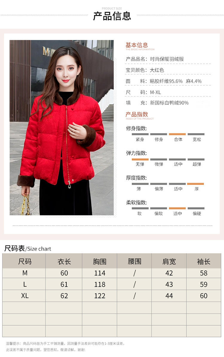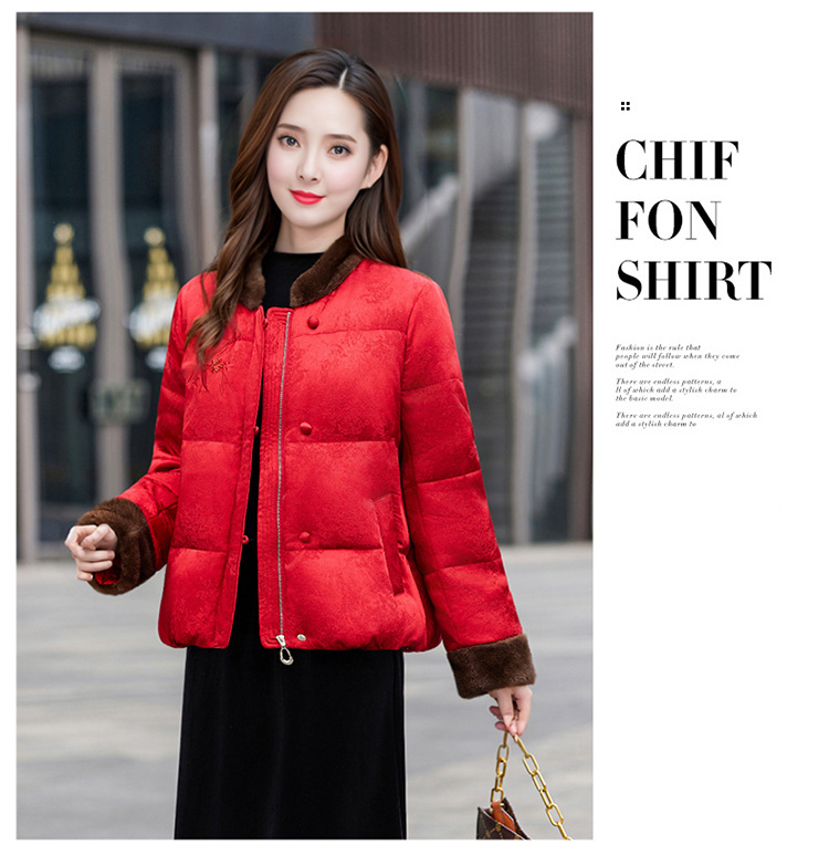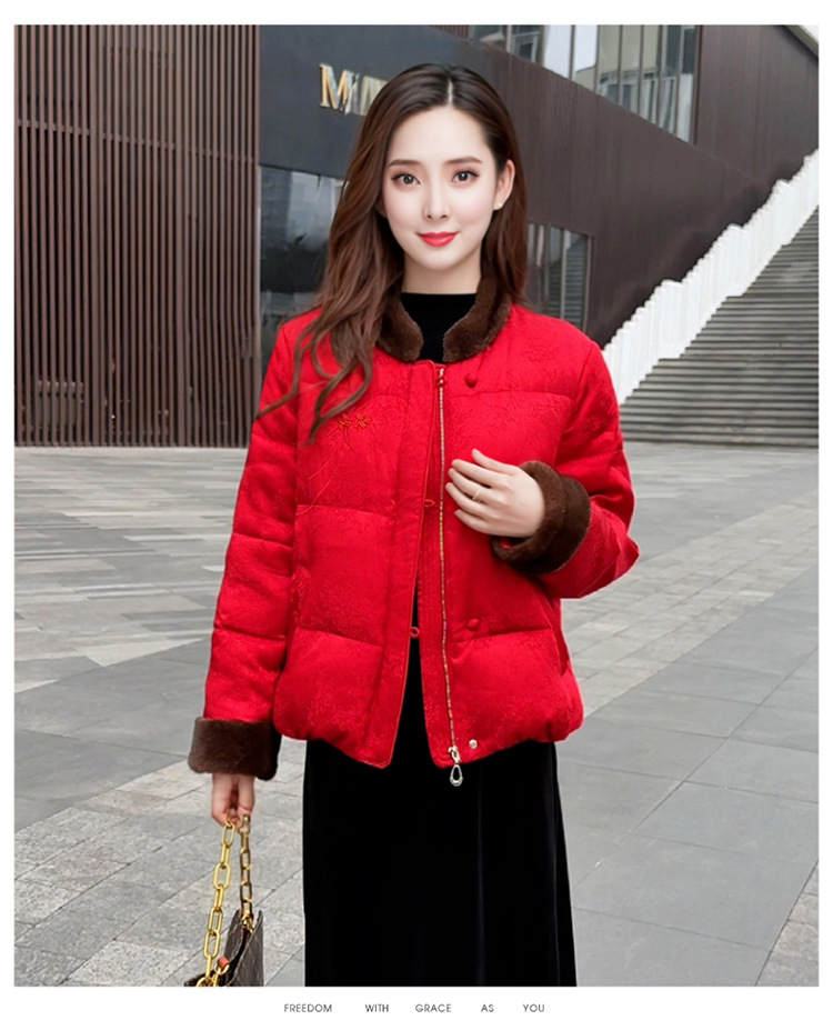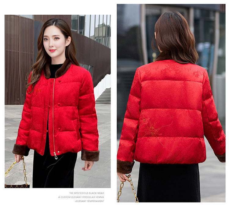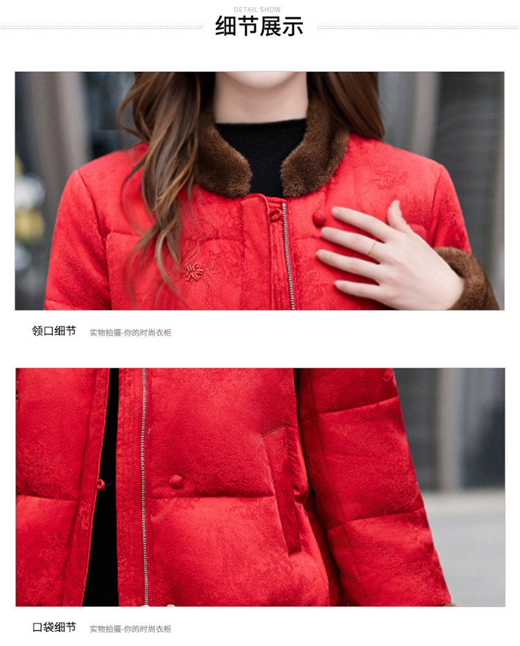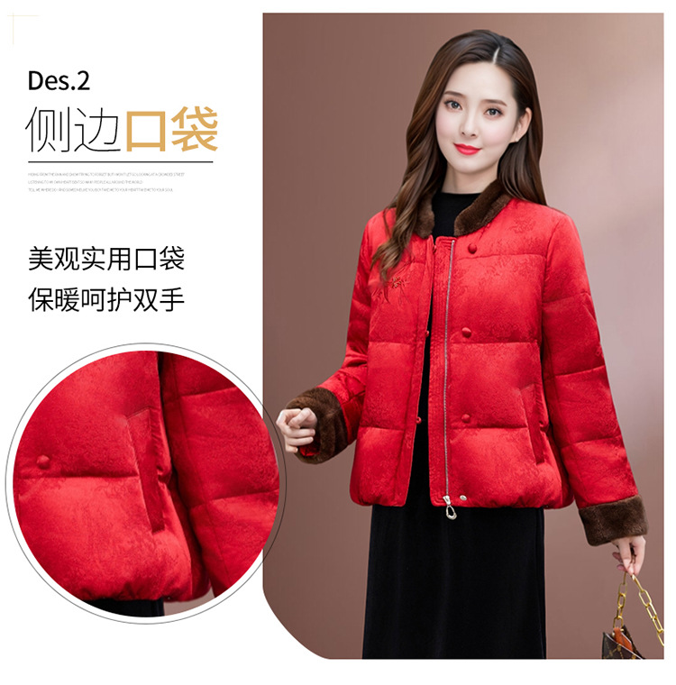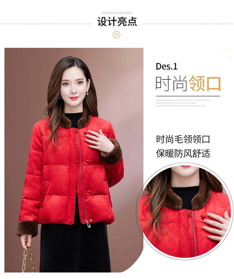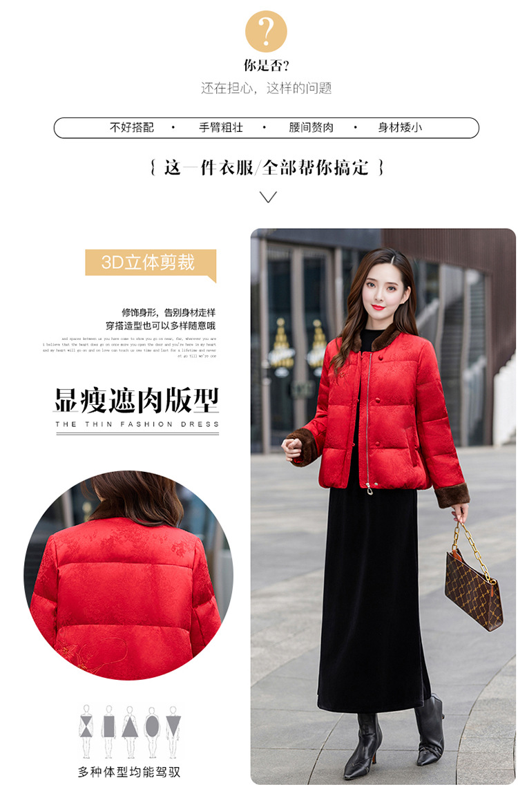QYM 59151新中式国风喜庆短款羽绒服毛领白鸭绒保暖外套 商品图4