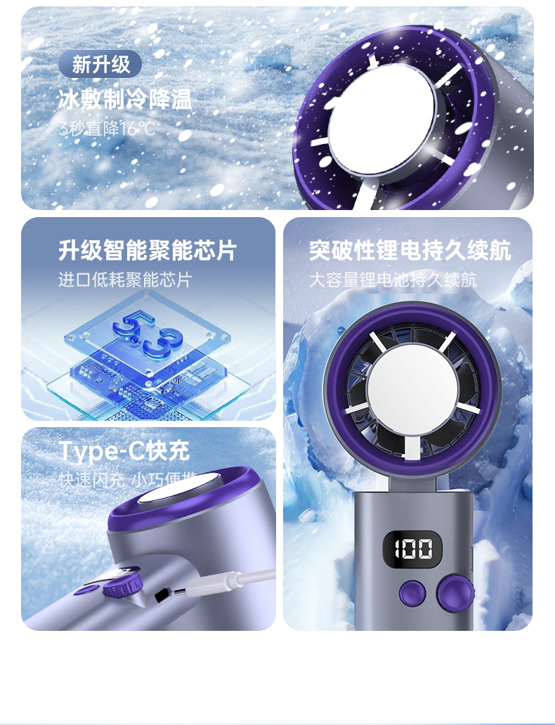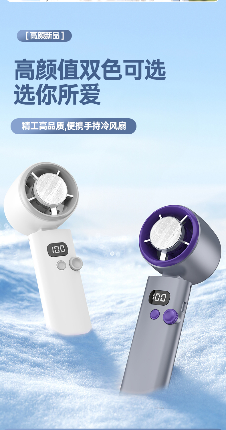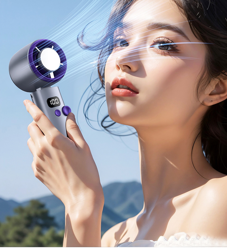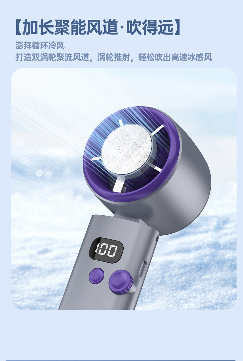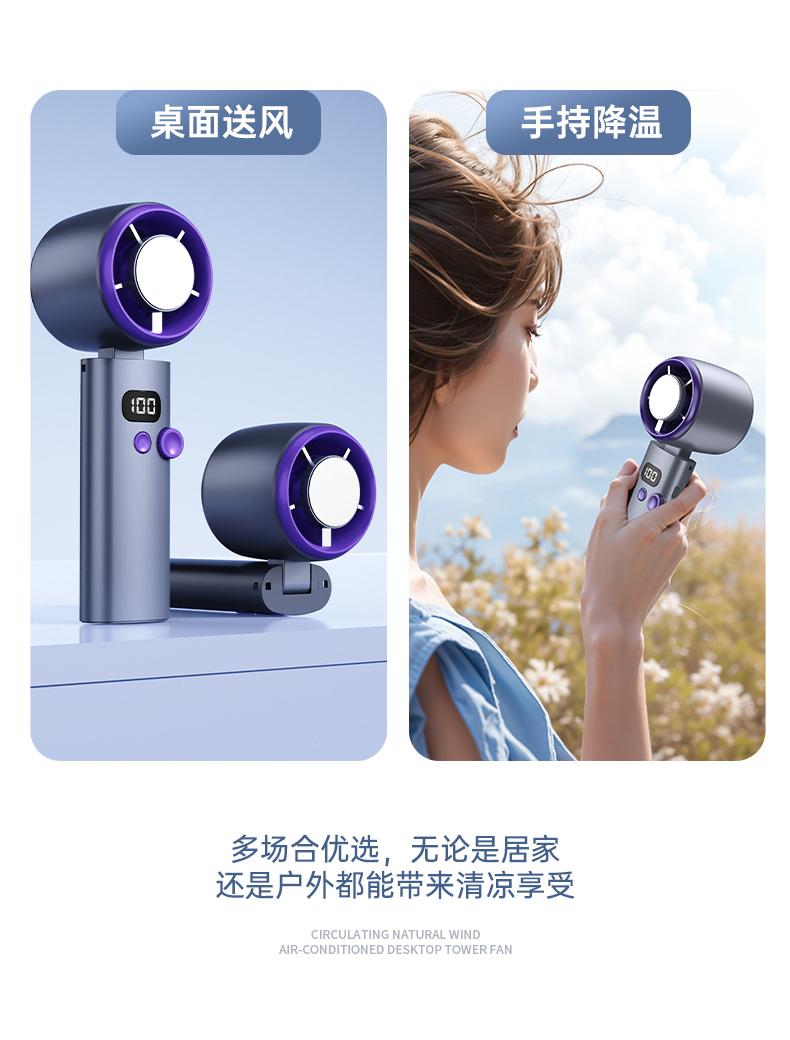 【涡扇发动机造型 3秒降温“冰敷效果” 100档调速】花姿彤半导体高速制冷风扇可折叠液晶显电量