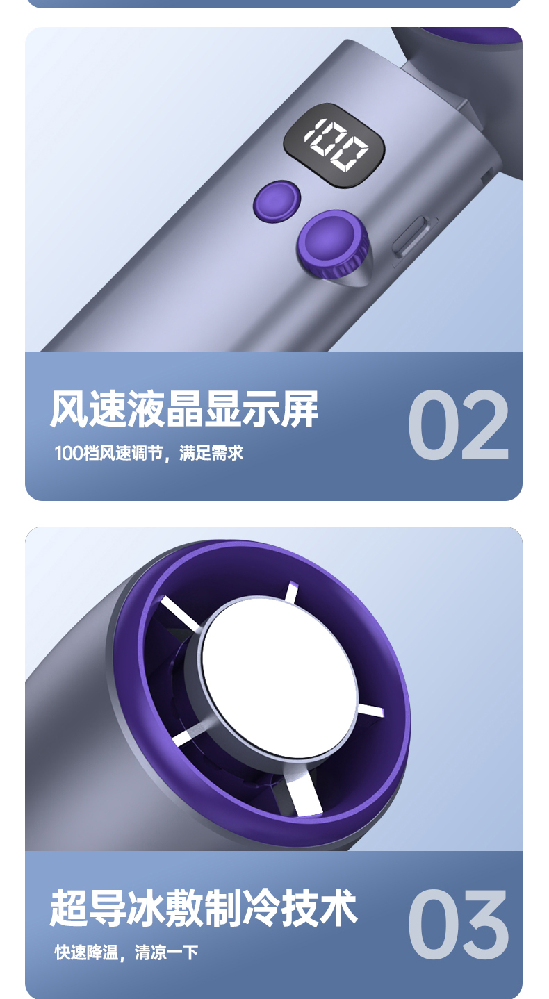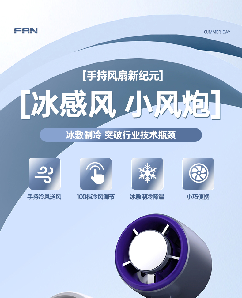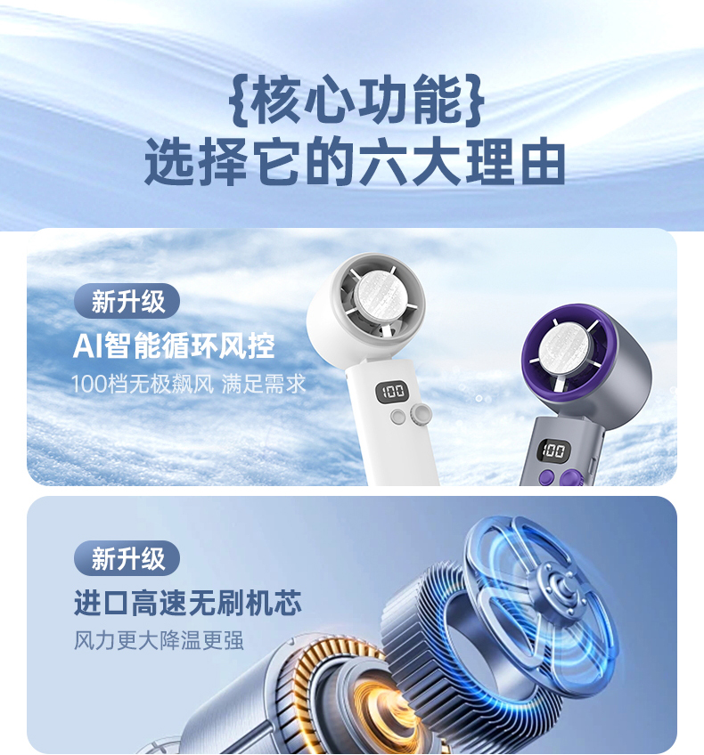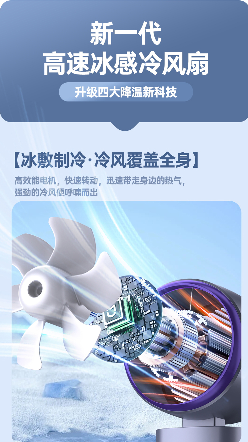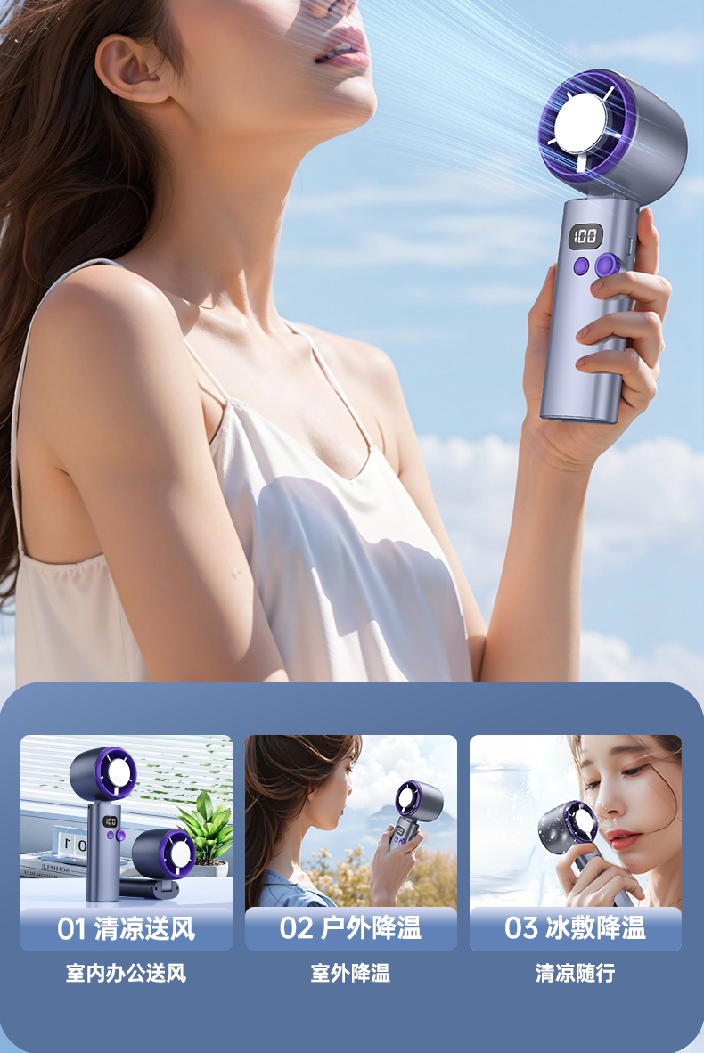 【涡扇发动机造型 3秒降温“冰敷效果” 100档调速】花姿彤半导体高速制冷风扇可折叠液晶显电量