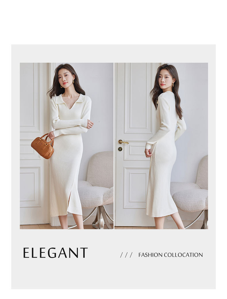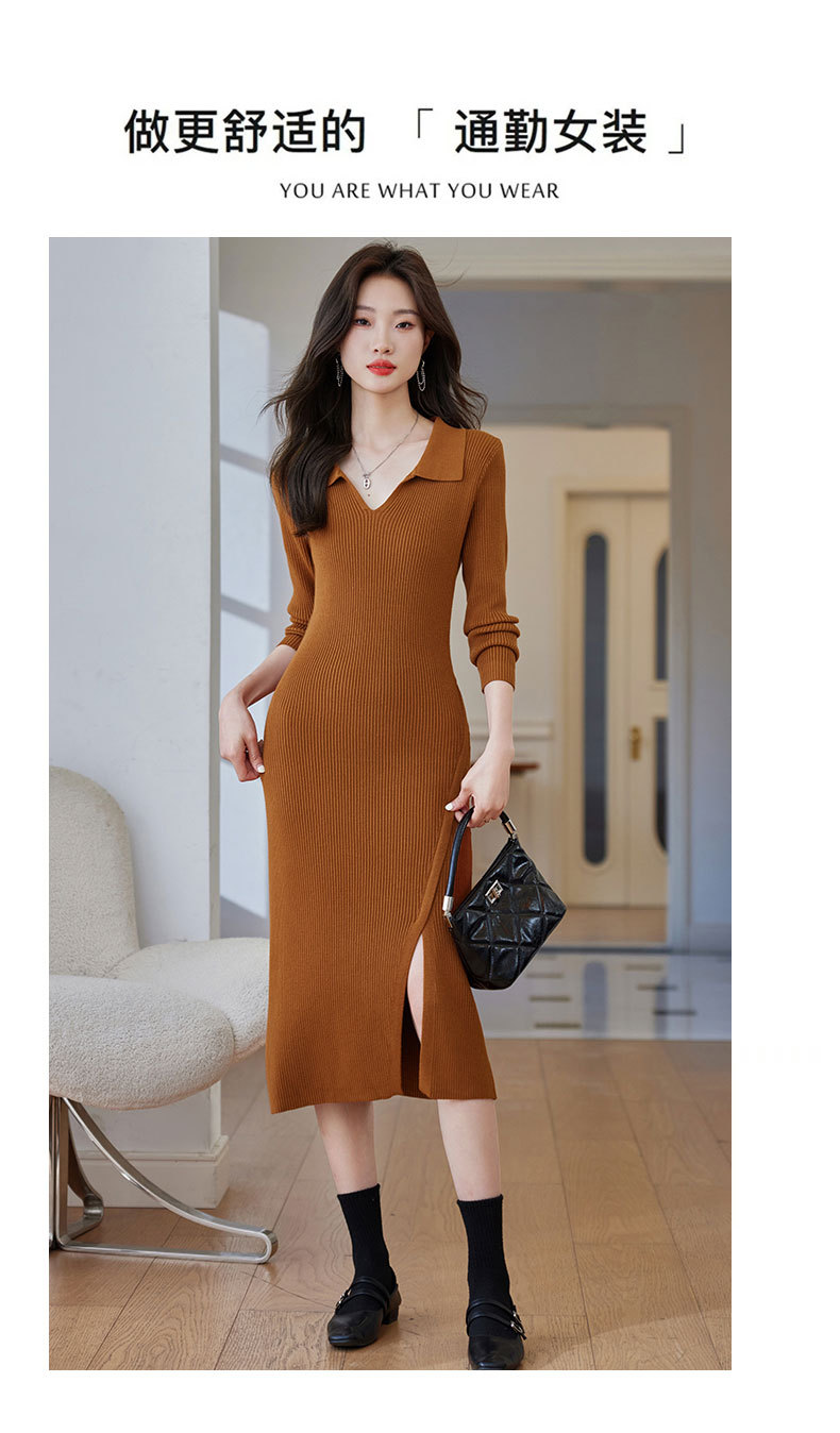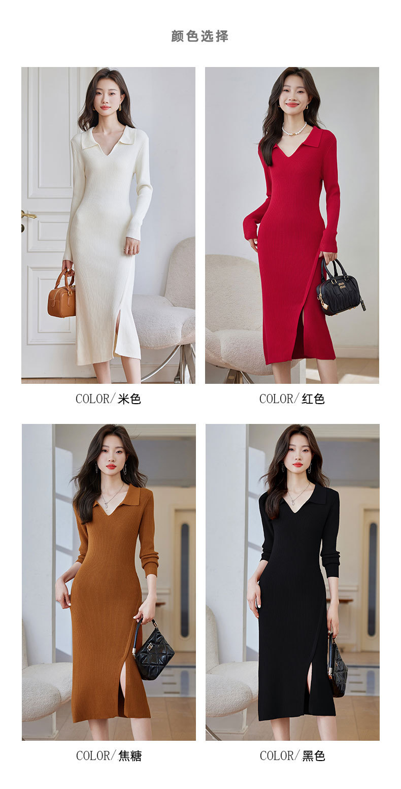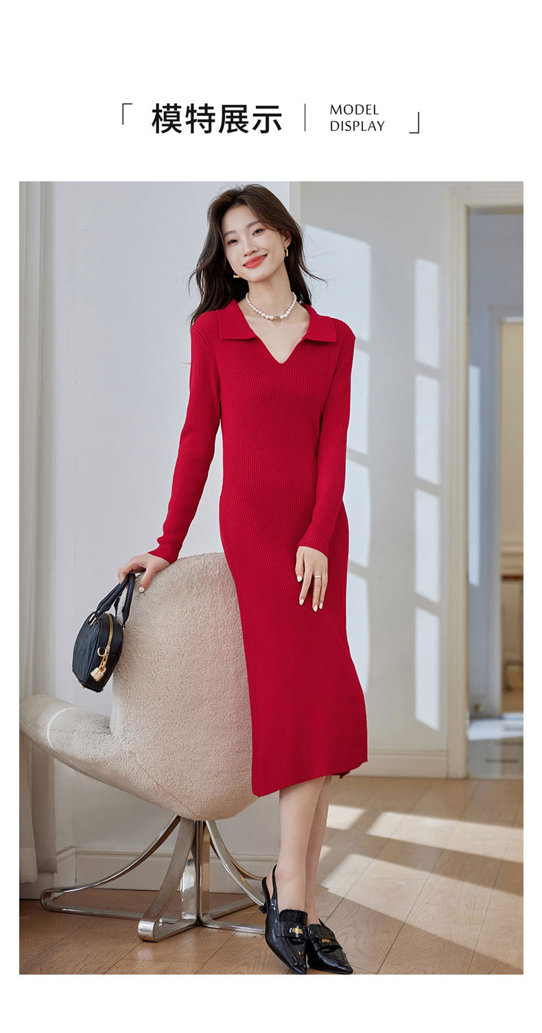 CC-22-8249小香风polo领针织连衣裙女装秋季2023新款法式修身内搭显瘦长裙子