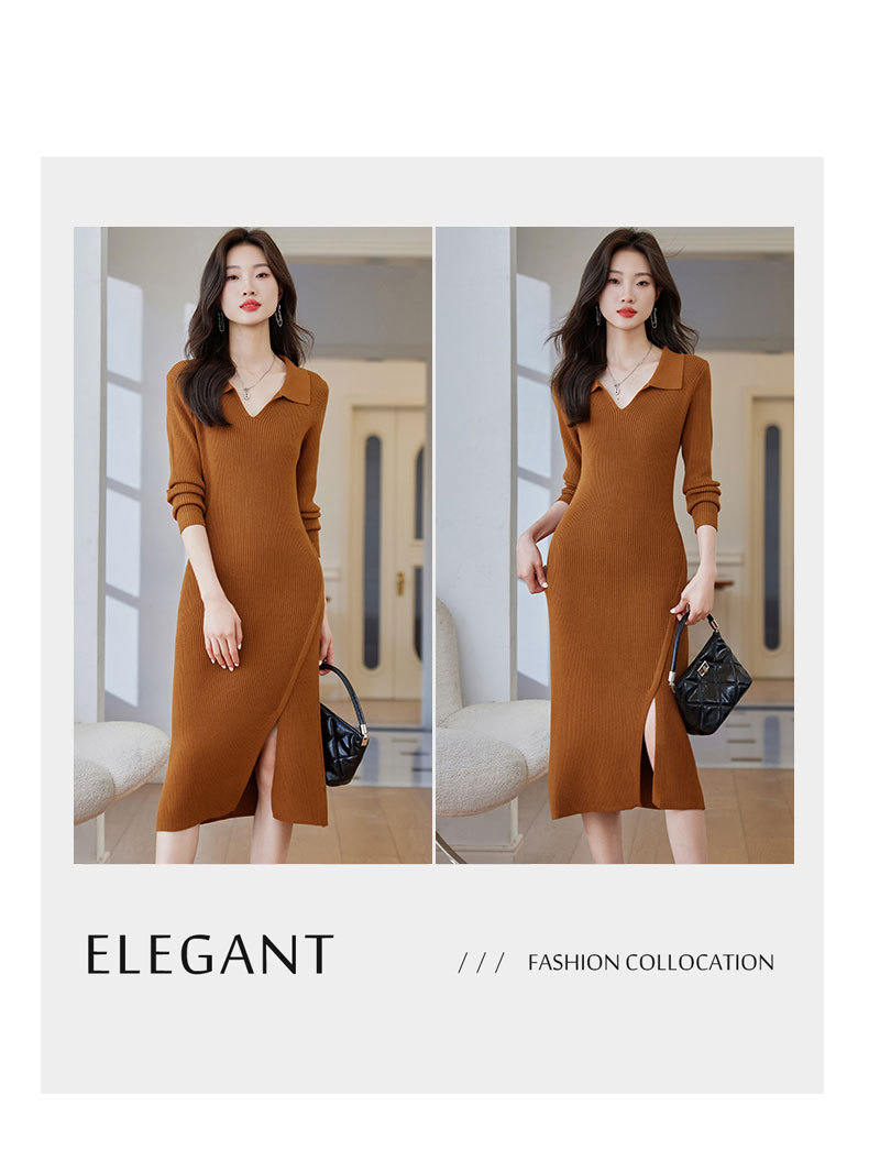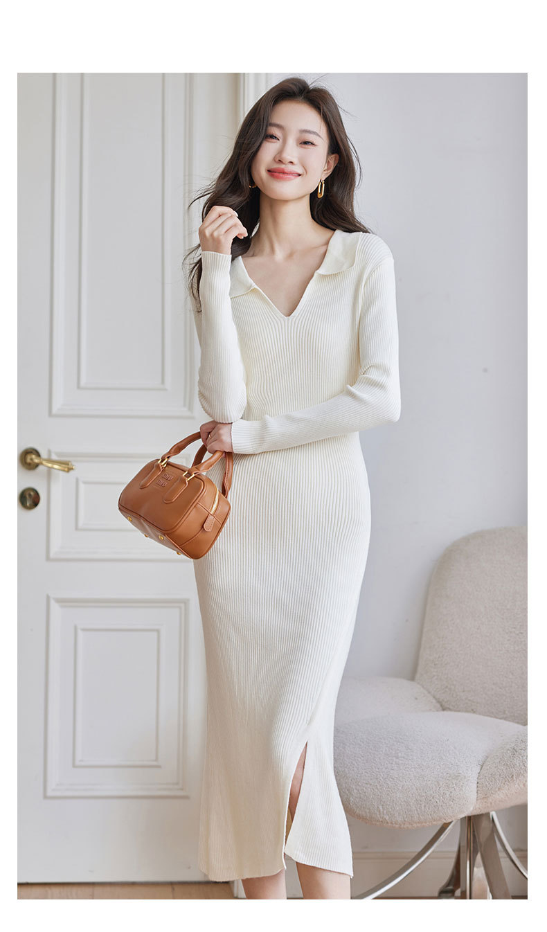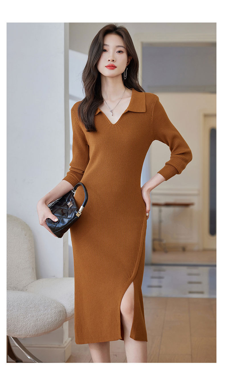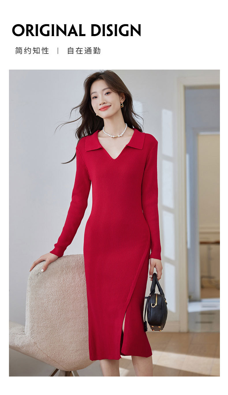 CC-22-8249小香风polo领针织连衣裙女装秋季2023新款法式修身内搭显瘦长裙子