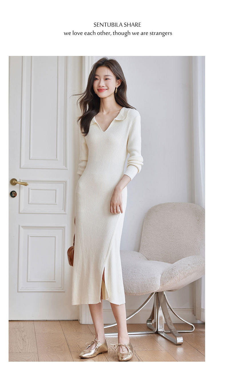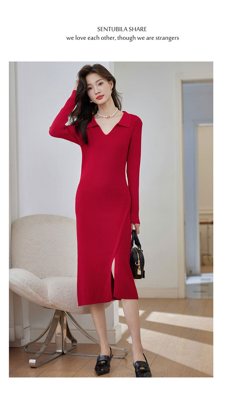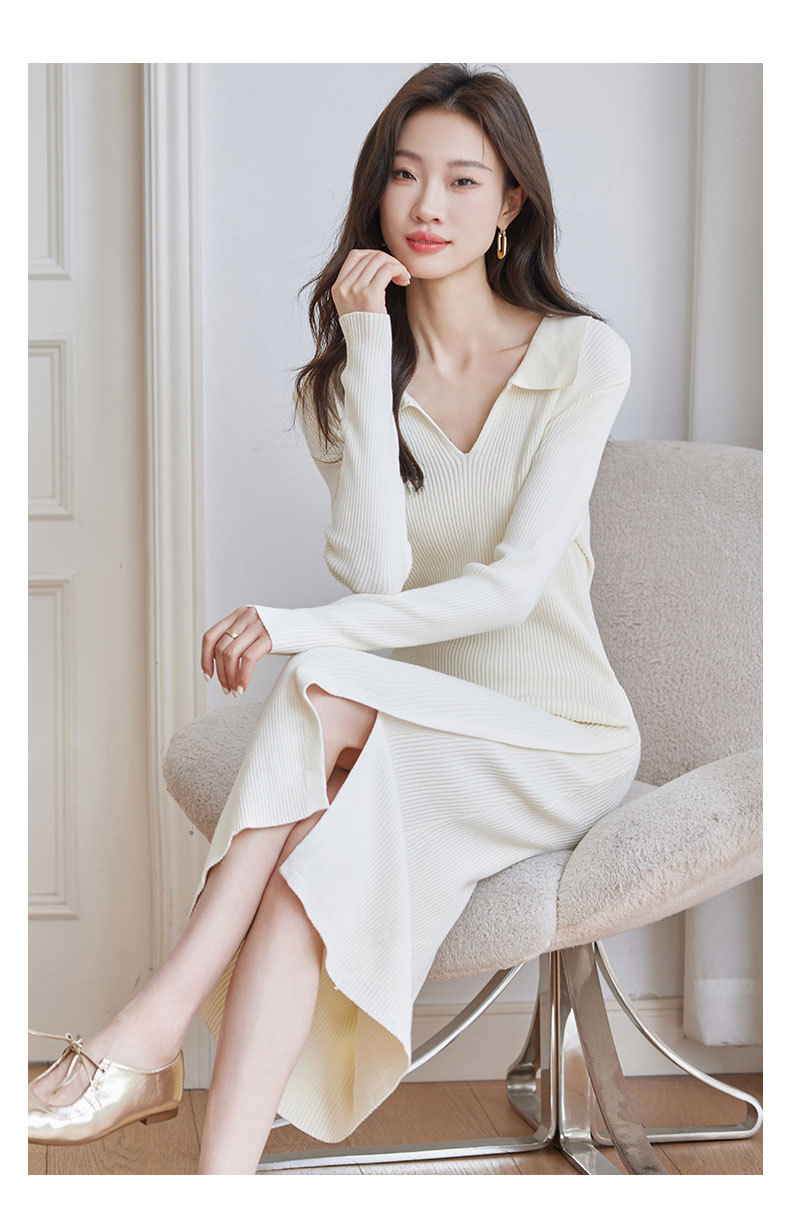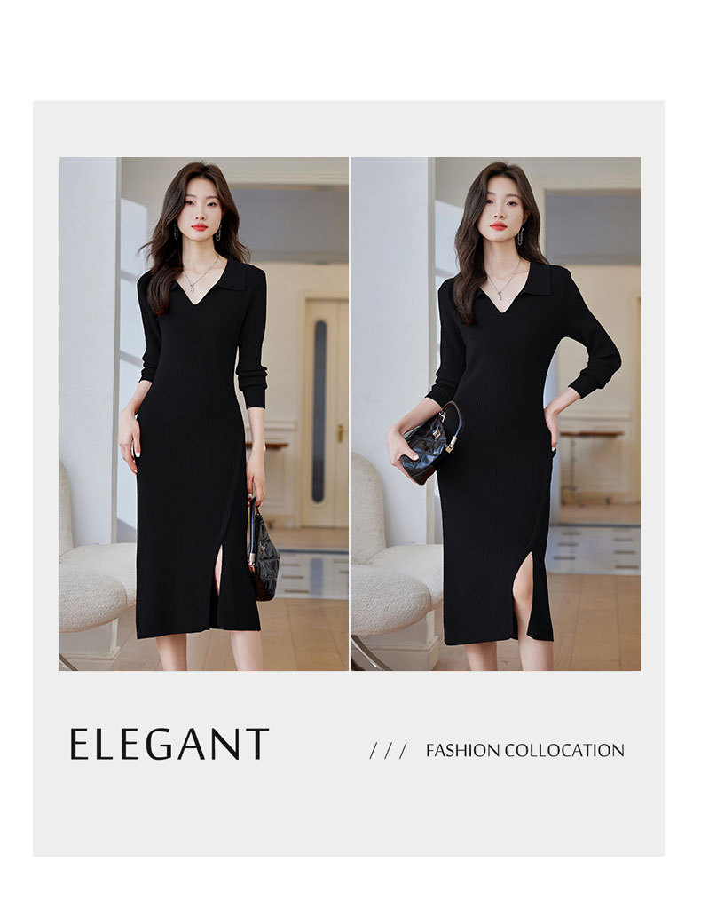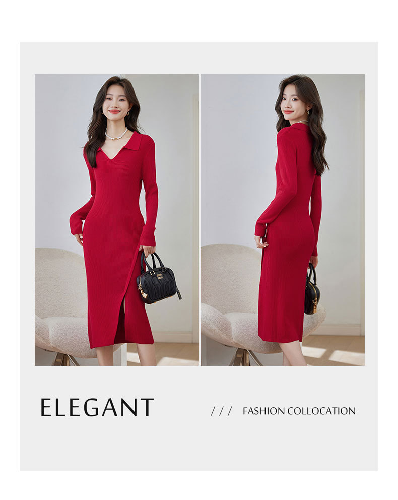 CC-22-8249小香风polo领针织连衣裙女装秋季2023新款法式修身内搭显瘦长裙子
