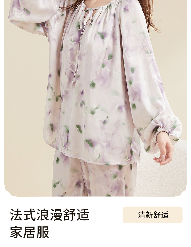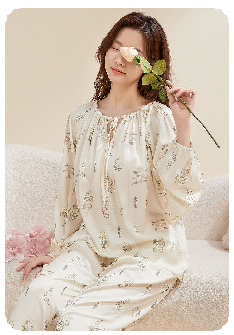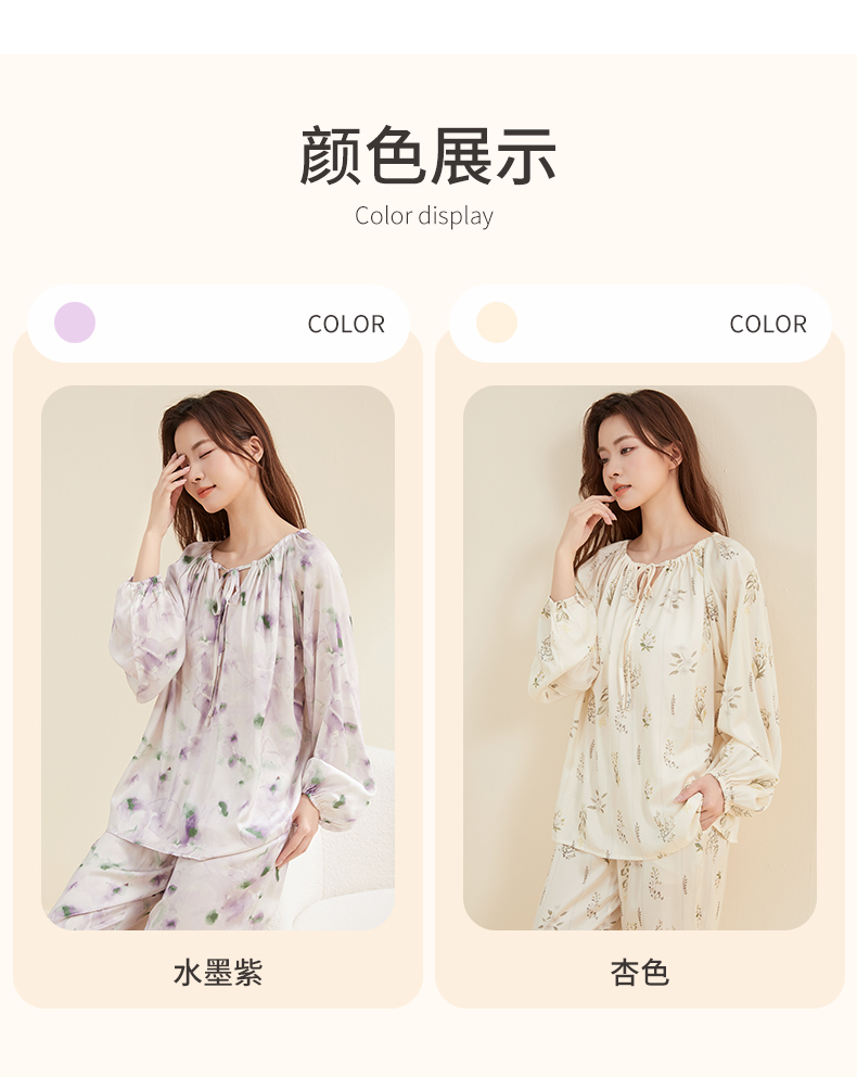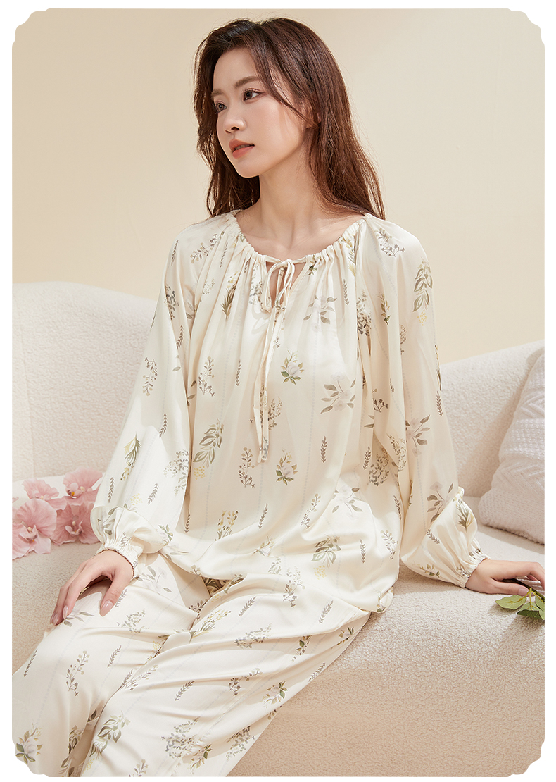 贝佳人新款秋季国风睡衣家居服舒适长裤长袖袖套装女BW532505
