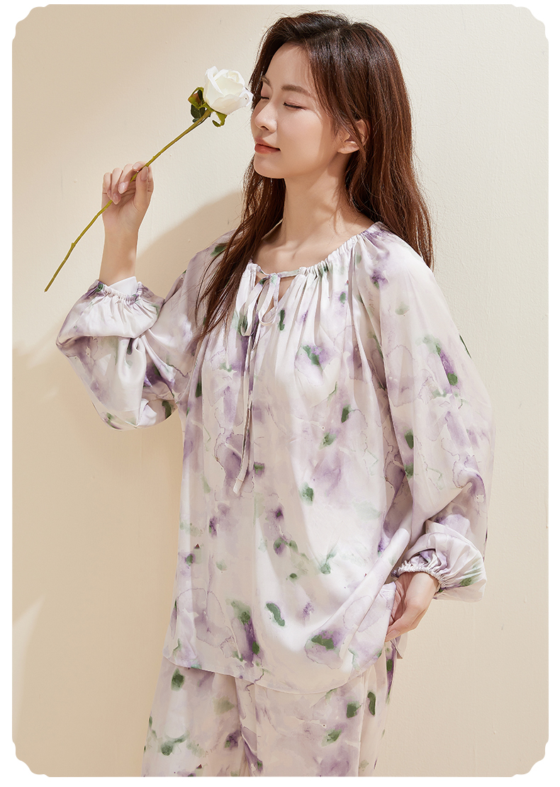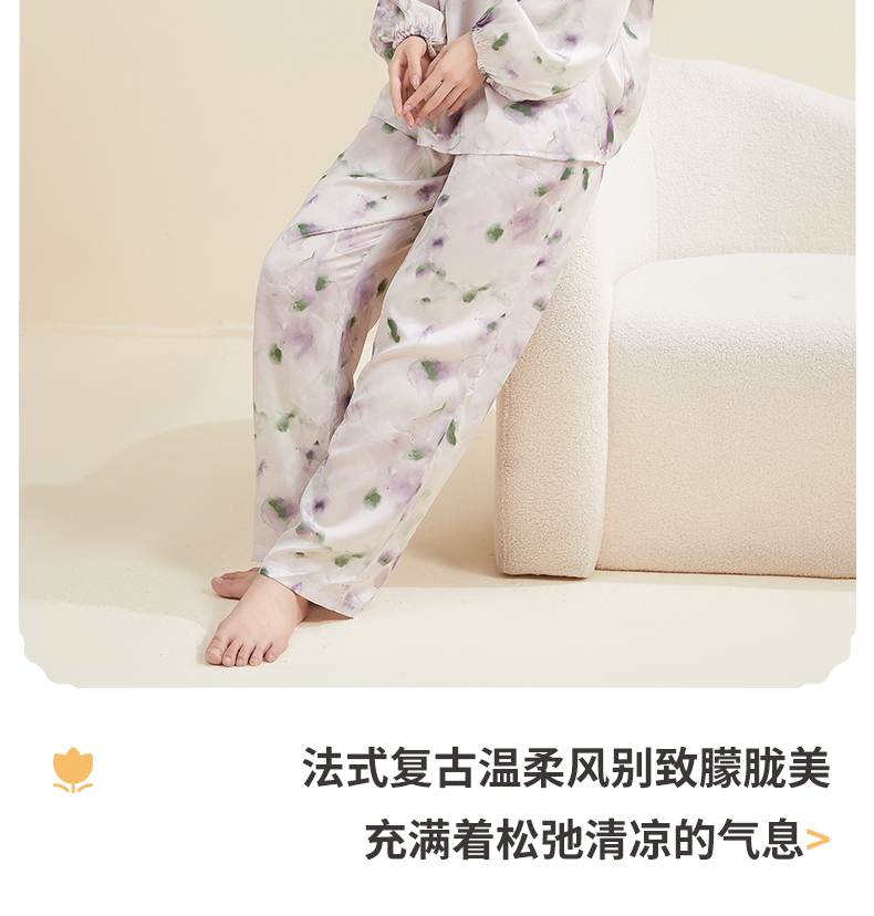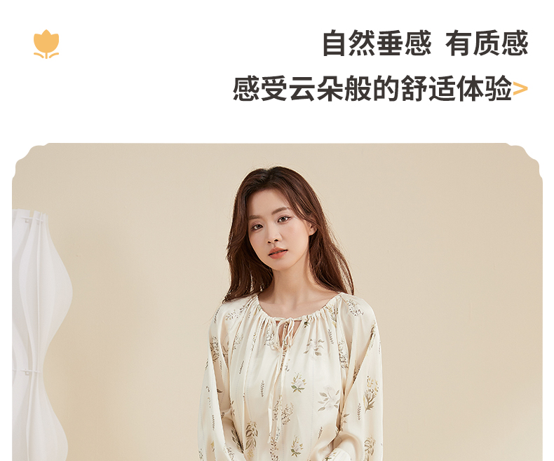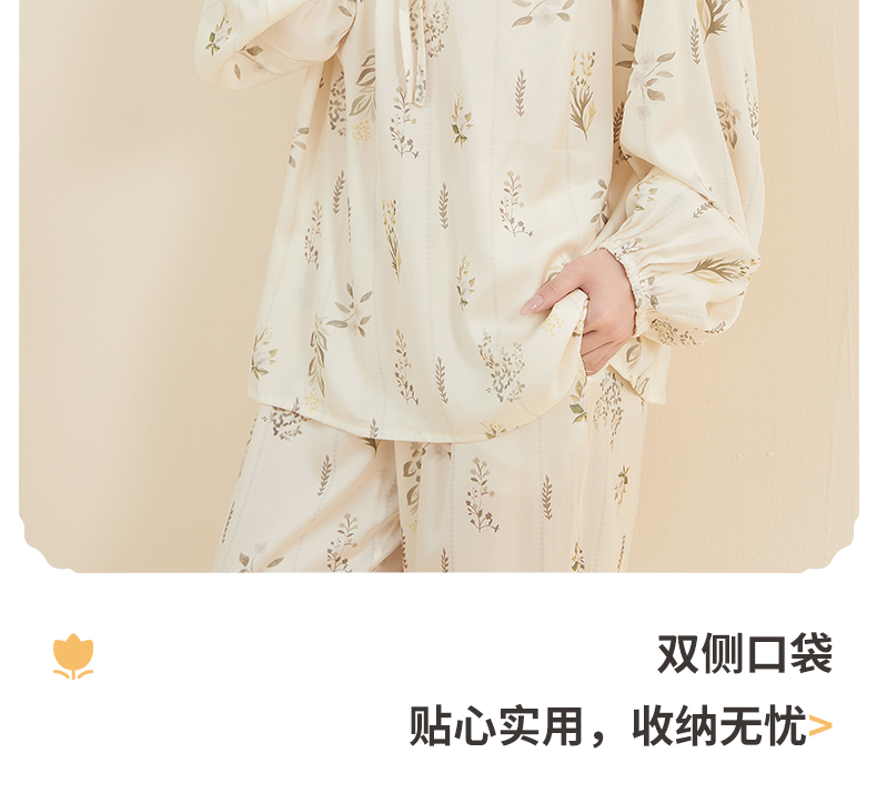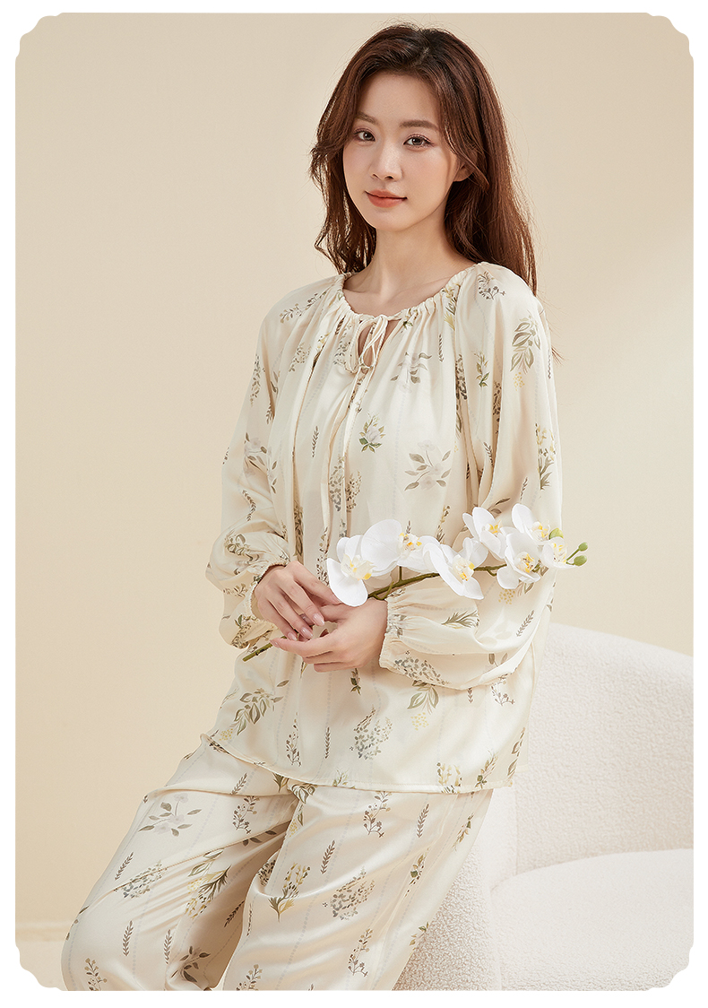 贝佳人新款秋季国风睡衣家居服舒适长裤长袖袖套装女BW532505