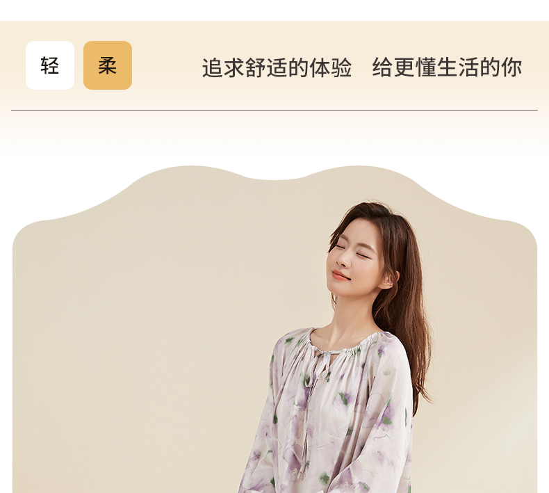 贝佳人新款宽松休闲睡衣睡裙舒适中式连衣裙家居服女BW522502