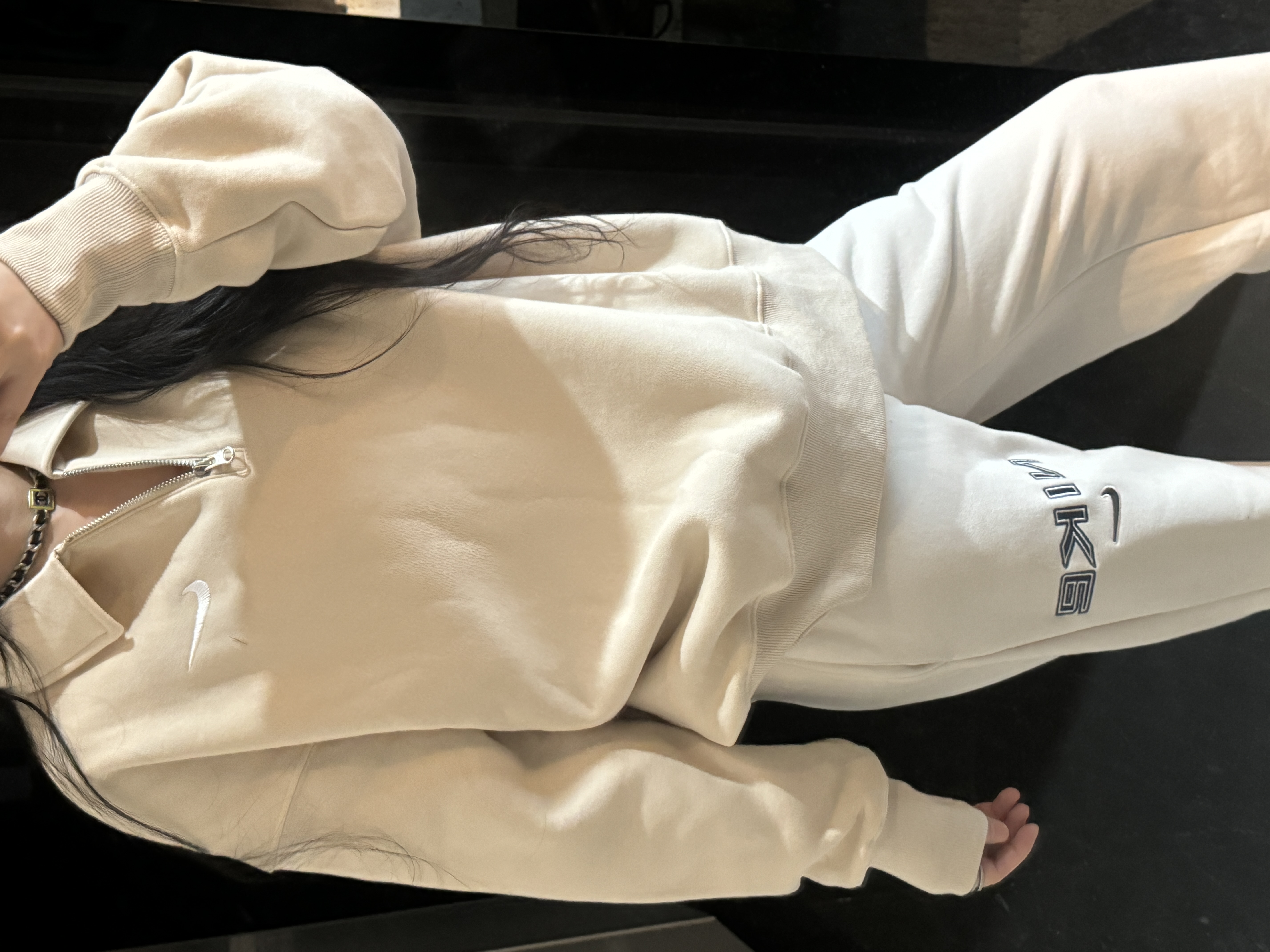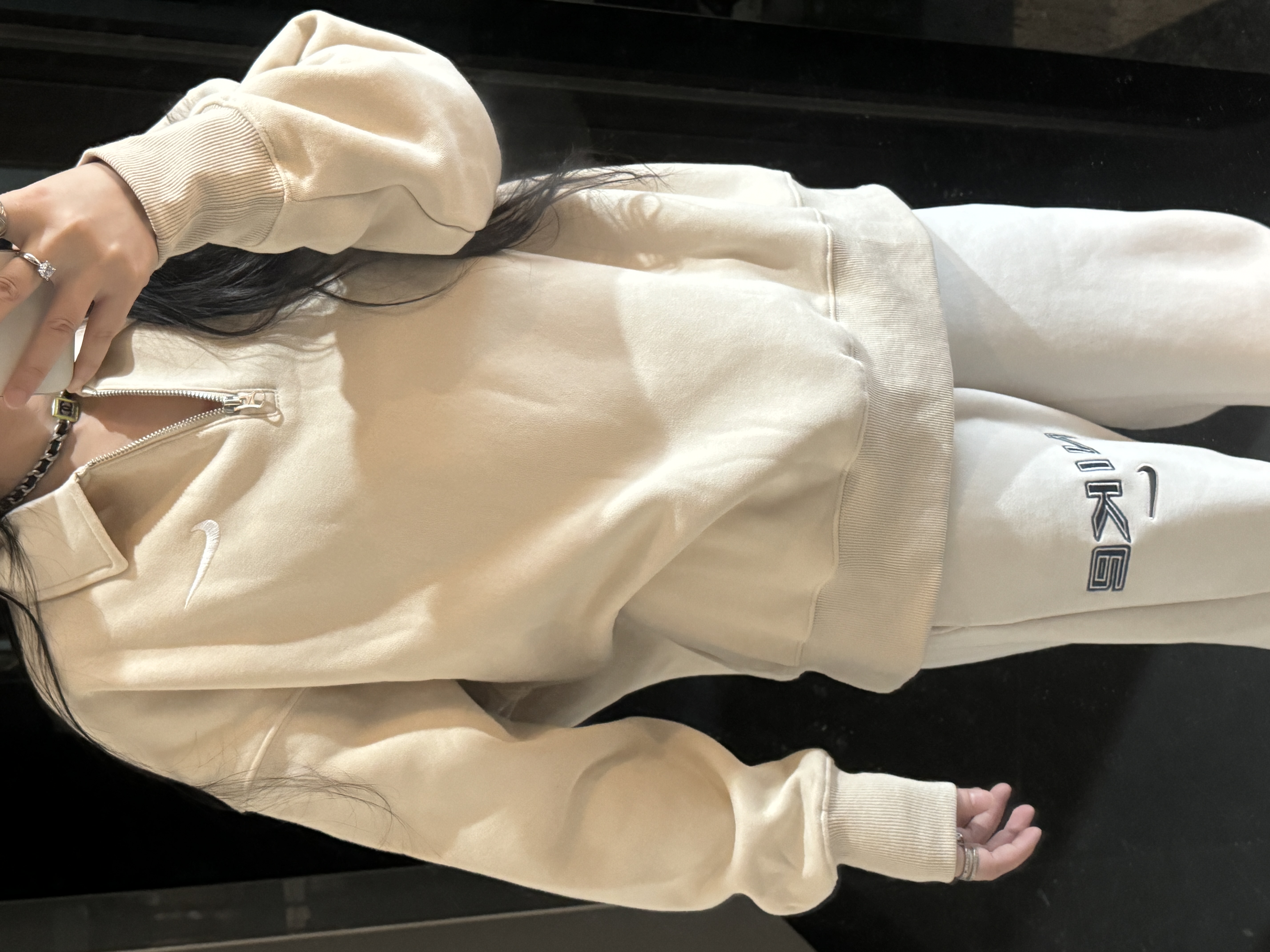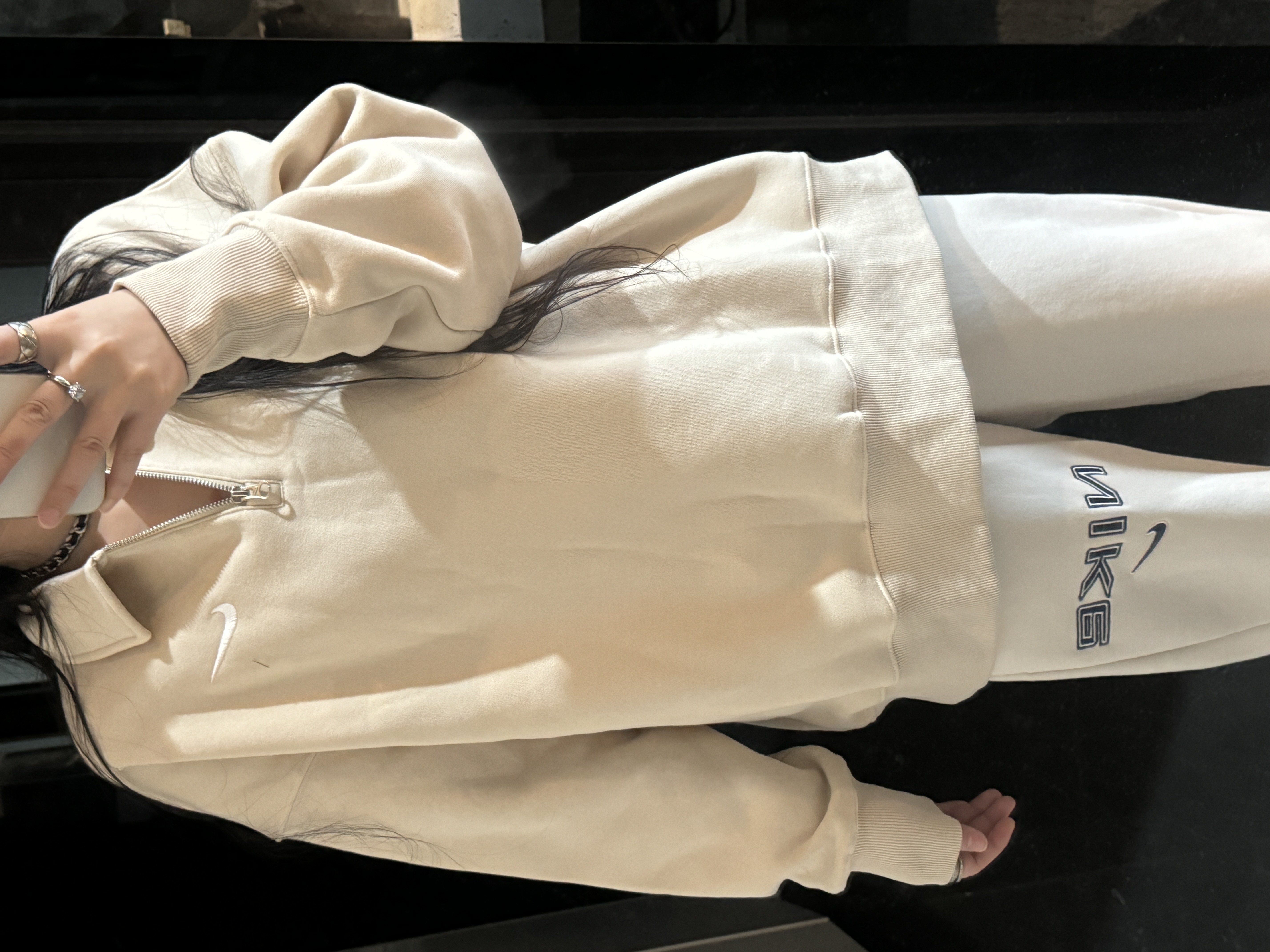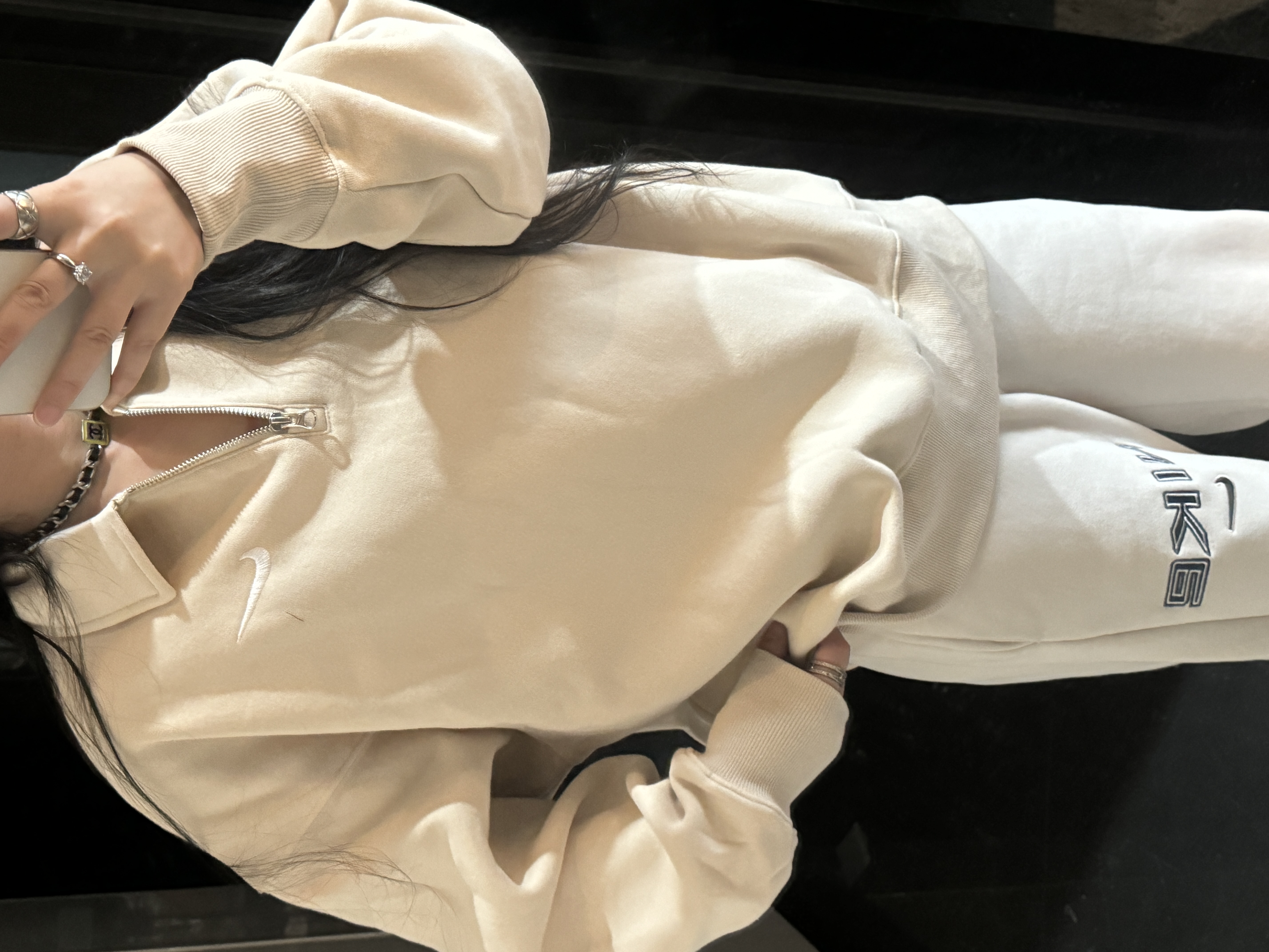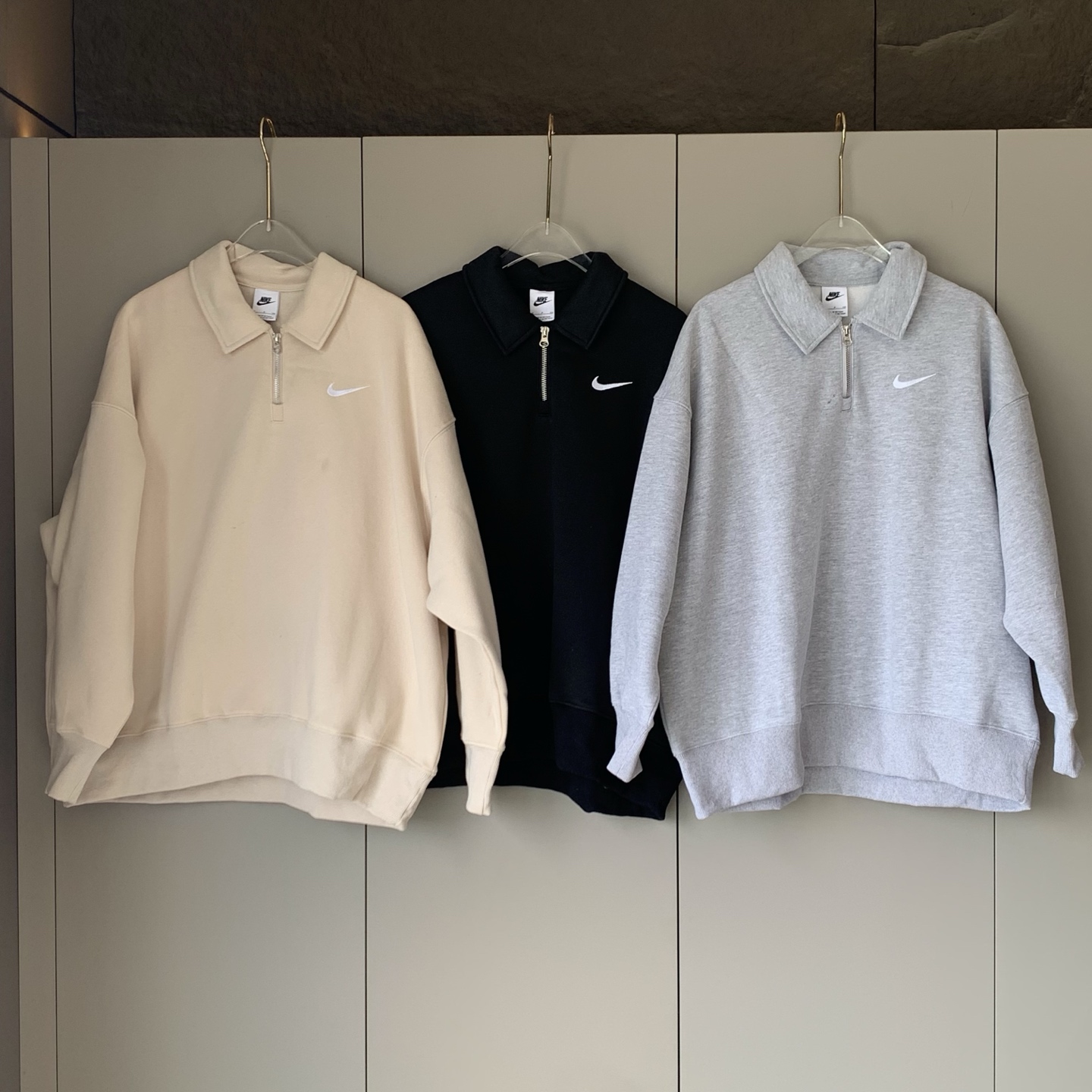 耐家标识翻领加绒长袖卫衣 男女同款 杏 黑 灰色🔥纯棉面料! 采用宽松的Oversized版型,结合翻领与半拉链设计,兼具复古感与现代休闲风格。袖口和下摆有罗纹收口,提升整体轮廓感,同时方便叠穿。左胸有经典的耐家 Swoosh刺绣Logo,低调且辨识度高。整体风格偏向Athflow风(运动与优雅结合),适合通勤、运动场景。谁懂啊!这件卫衣一上身,直接把高级感焊在身上!得物售价💰600➕ 宽松廓形版型⚠️蕾姐都是S效果!S码80-140斤以内⚠️M码90-160斤以内⚠️L码100-180斤以内 XL码110-200斤以内⚠️ 这款就是非常宽松的版型⚠️官方数据是女款实际男女可以穿!女生就是穿大大的慵懒效果!蕾姐想当裙子的话需要L码⚠️