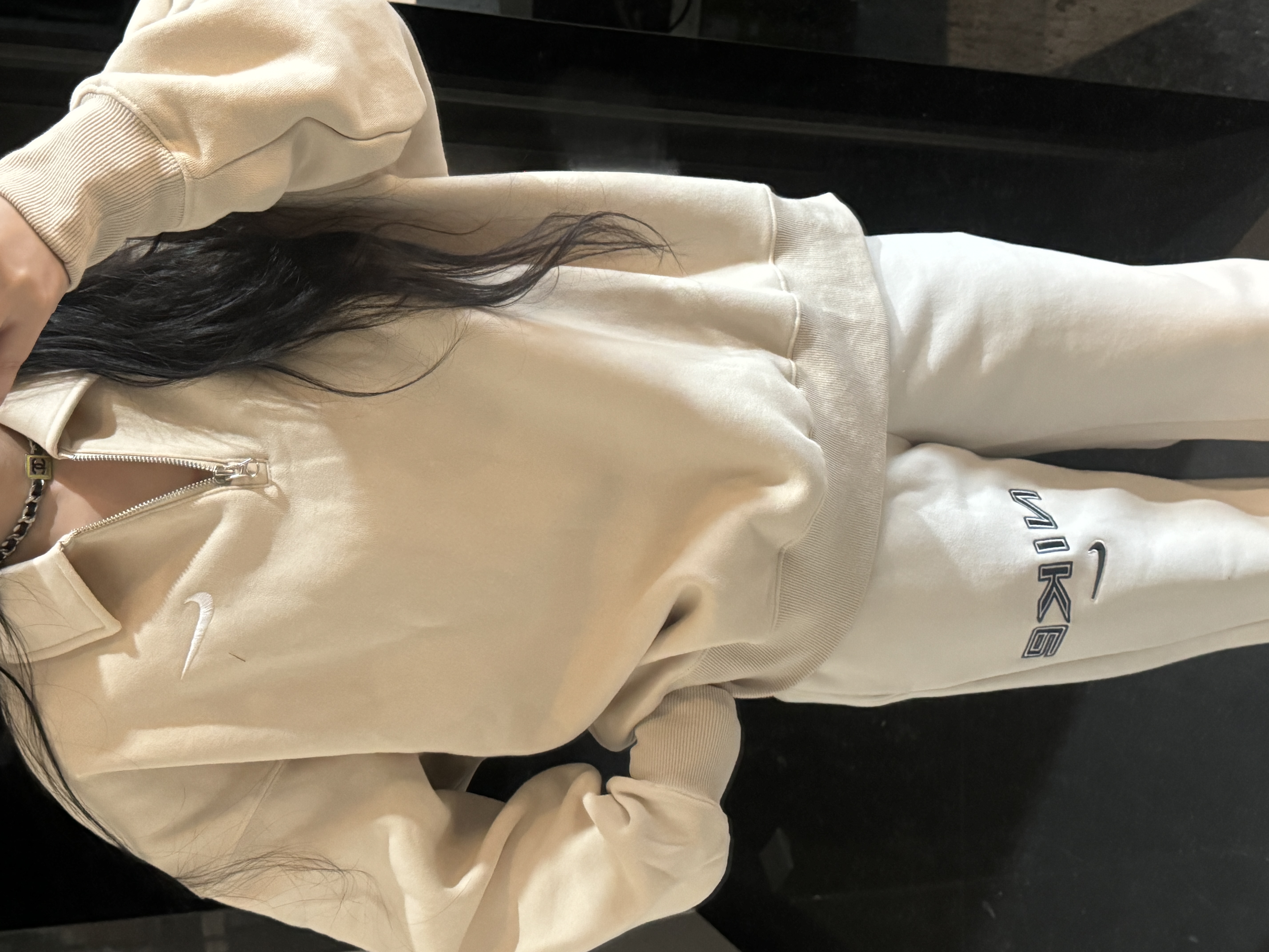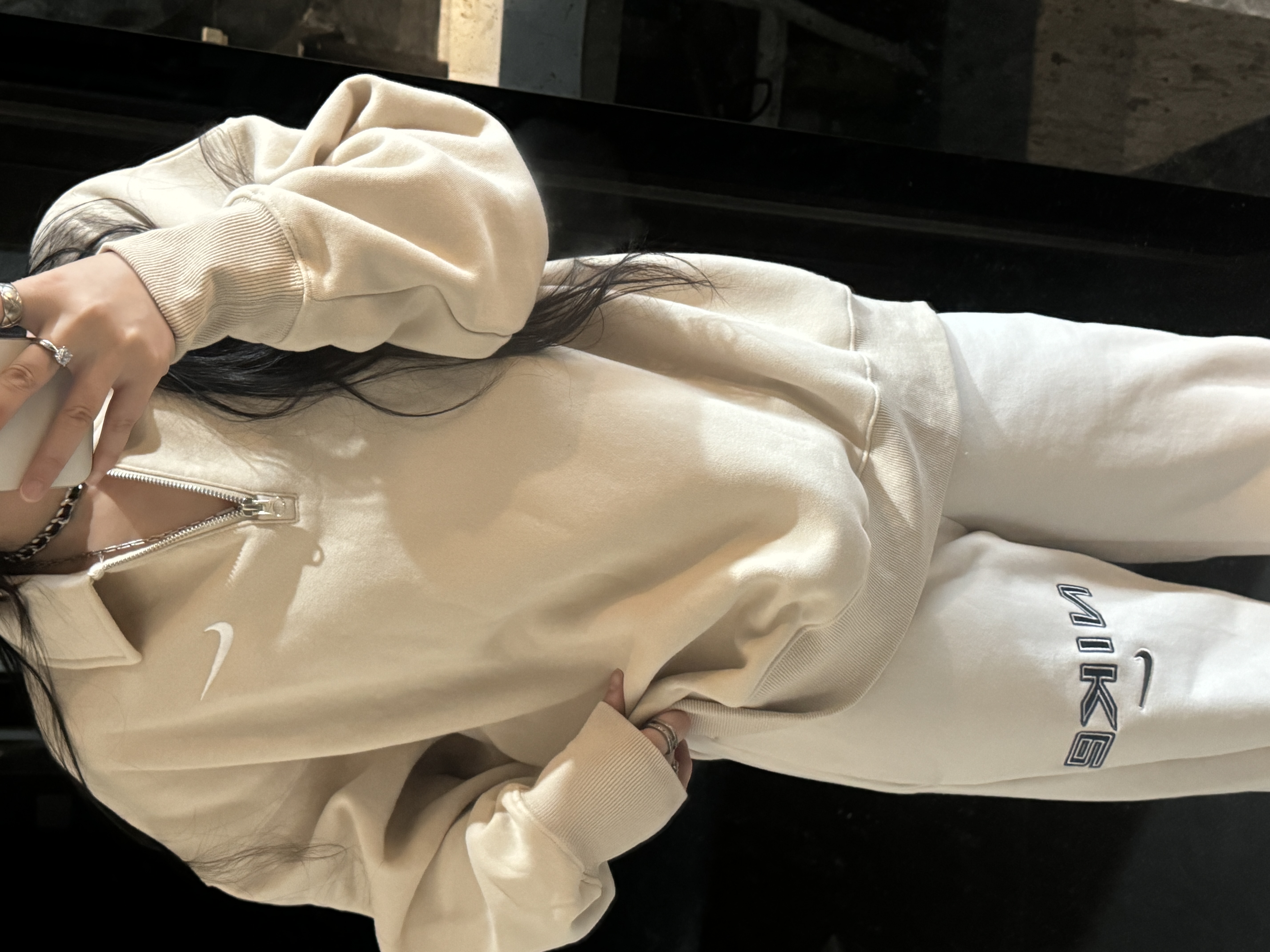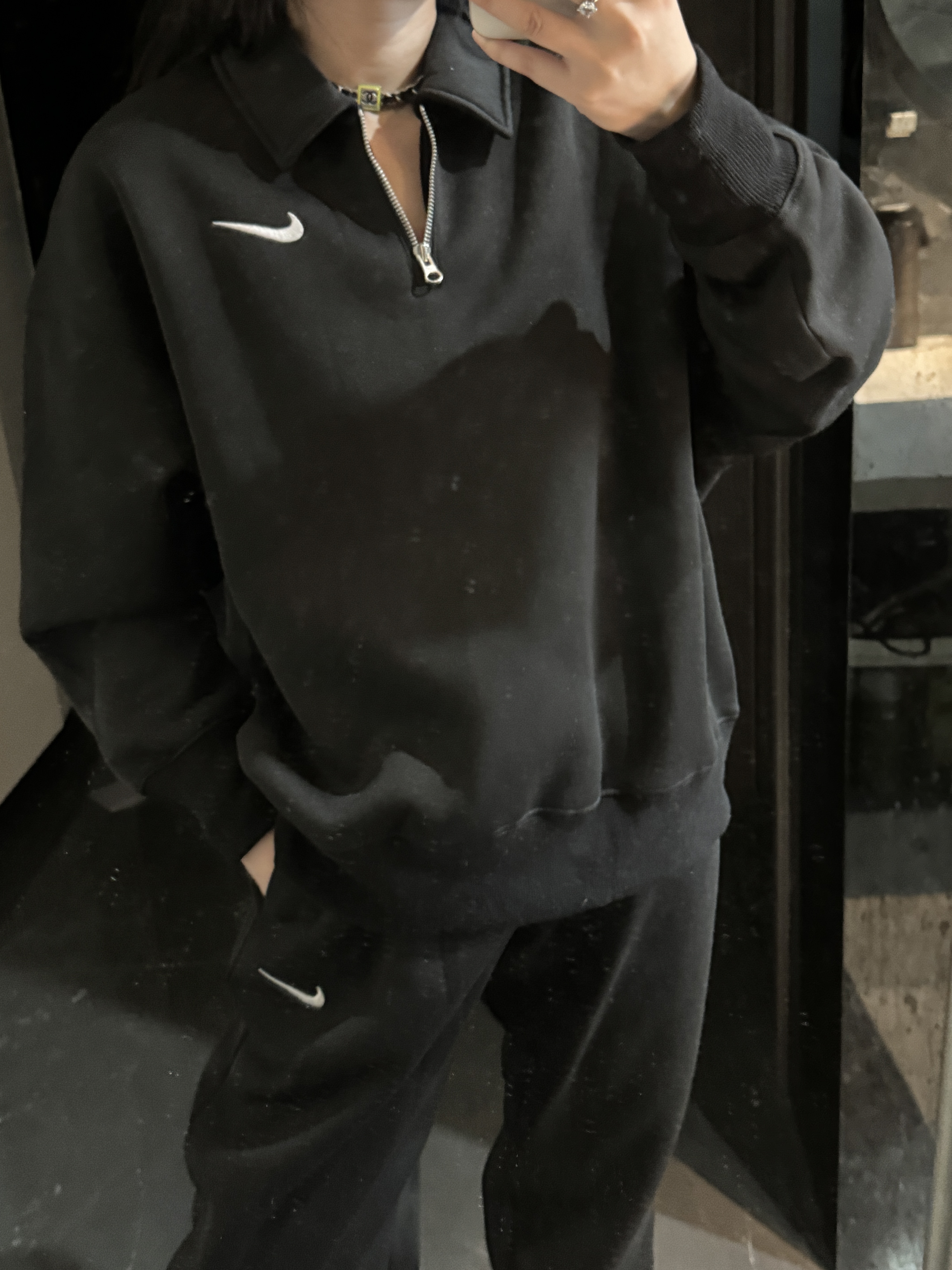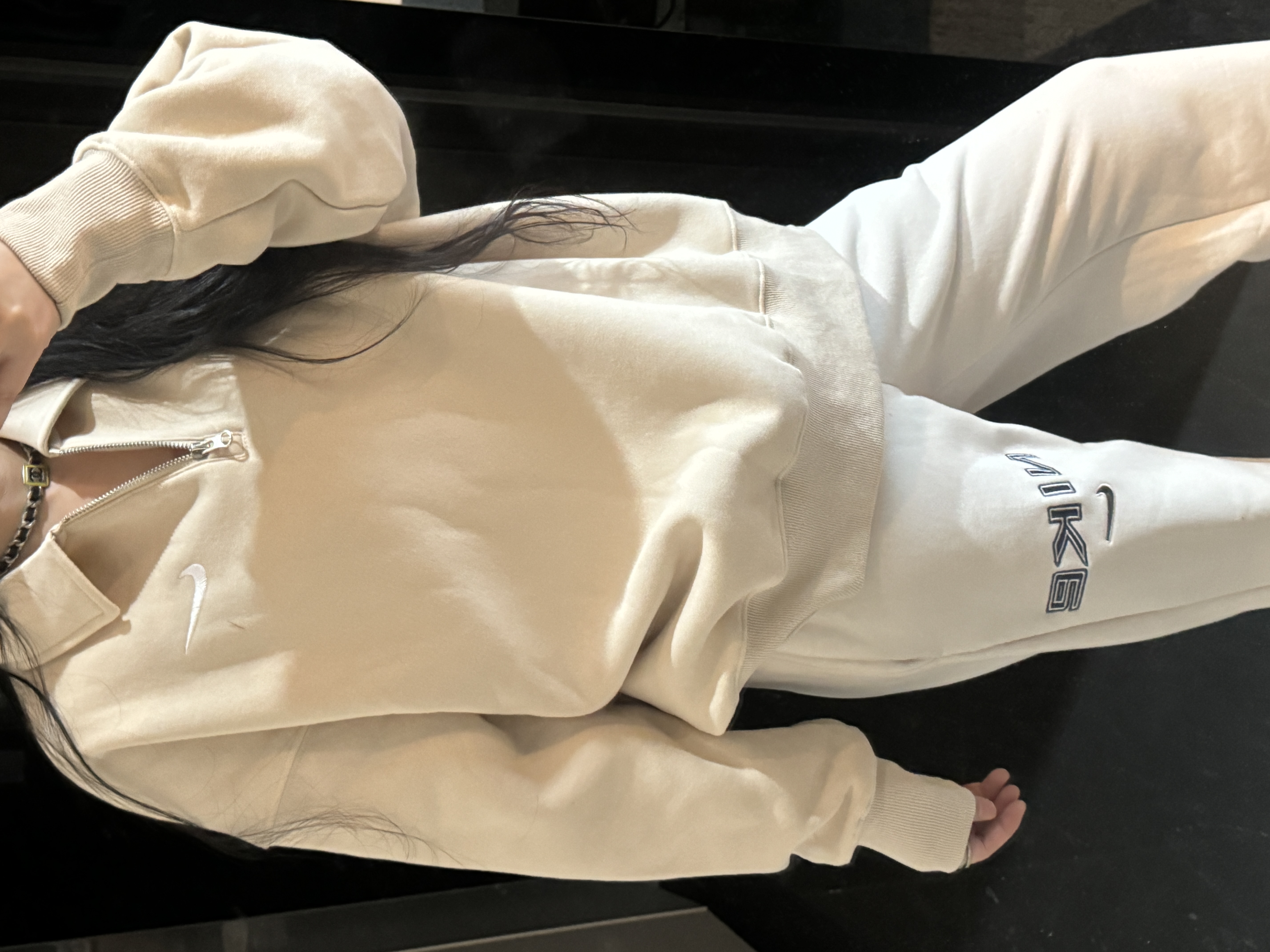 耐家标识翻领加绒长袖卫衣 男女同款 杏 黑 灰色🔥纯棉面料! 采用宽松的Oversized版型,结合翻领与半拉链设计,兼具复古感与现代休闲风格。袖口和下摆有罗纹收口,提升整体轮廓感,同时方便叠穿。左胸有经典的耐家 Swoosh刺绣Logo,低调且辨识度高。整体风格偏向Athflow风(运动与优雅结合),适合通勤、运动场景。谁懂啊!这件卫衣一上身,直接把高级感焊在身上!得物售价💰600➕ 宽松廓形版型⚠️蕾姐都是S效果!S码80-140斤以内⚠️M码90-160斤以内⚠️L码100-180斤以内 XL码110-200斤以内⚠️ 这款就是非常宽松的版型⚠️官方数据是女款实际男女可以穿!女生就是穿大大的慵懒效果!蕾姐想当裙子的话需要L码⚠️
