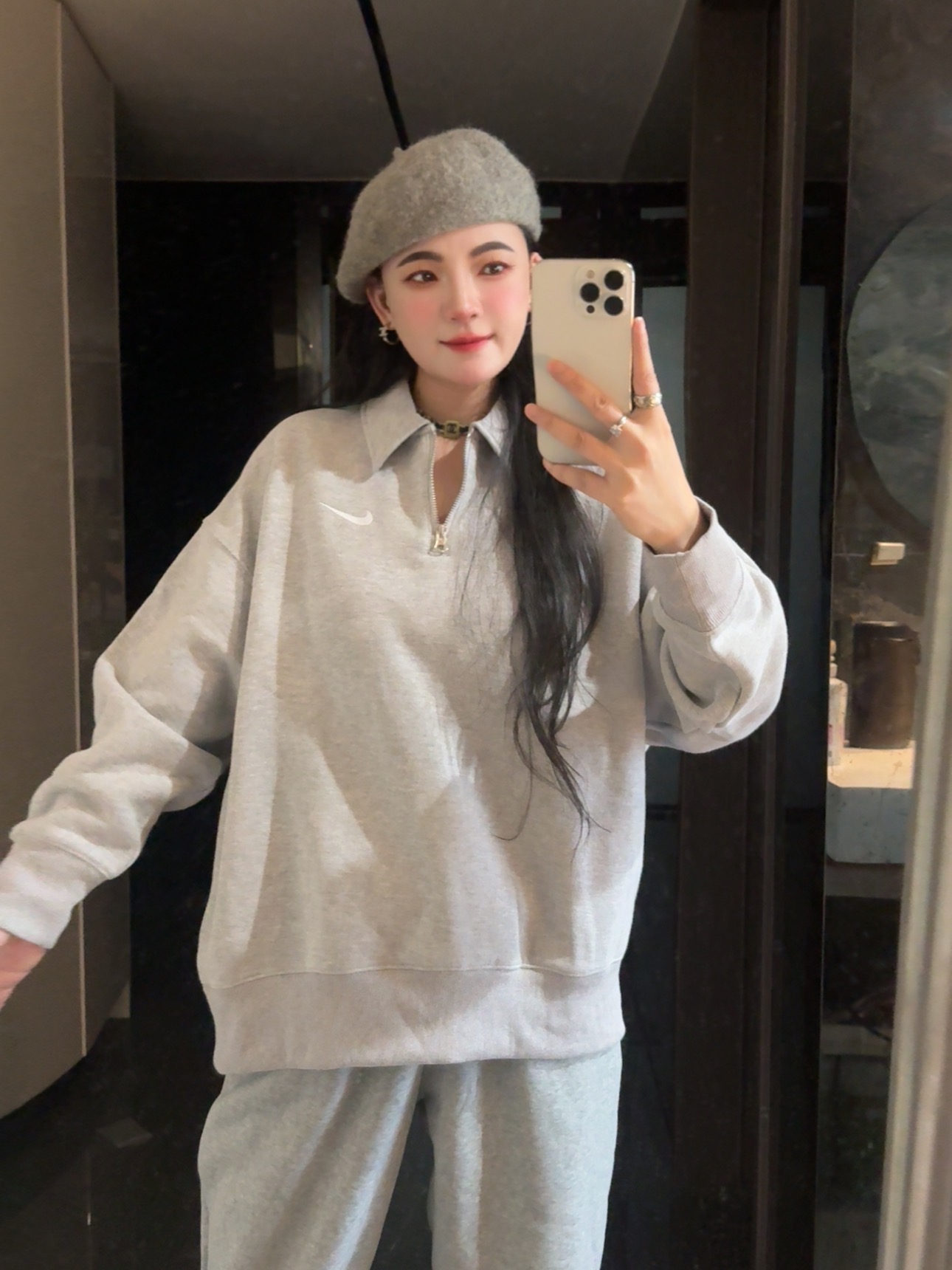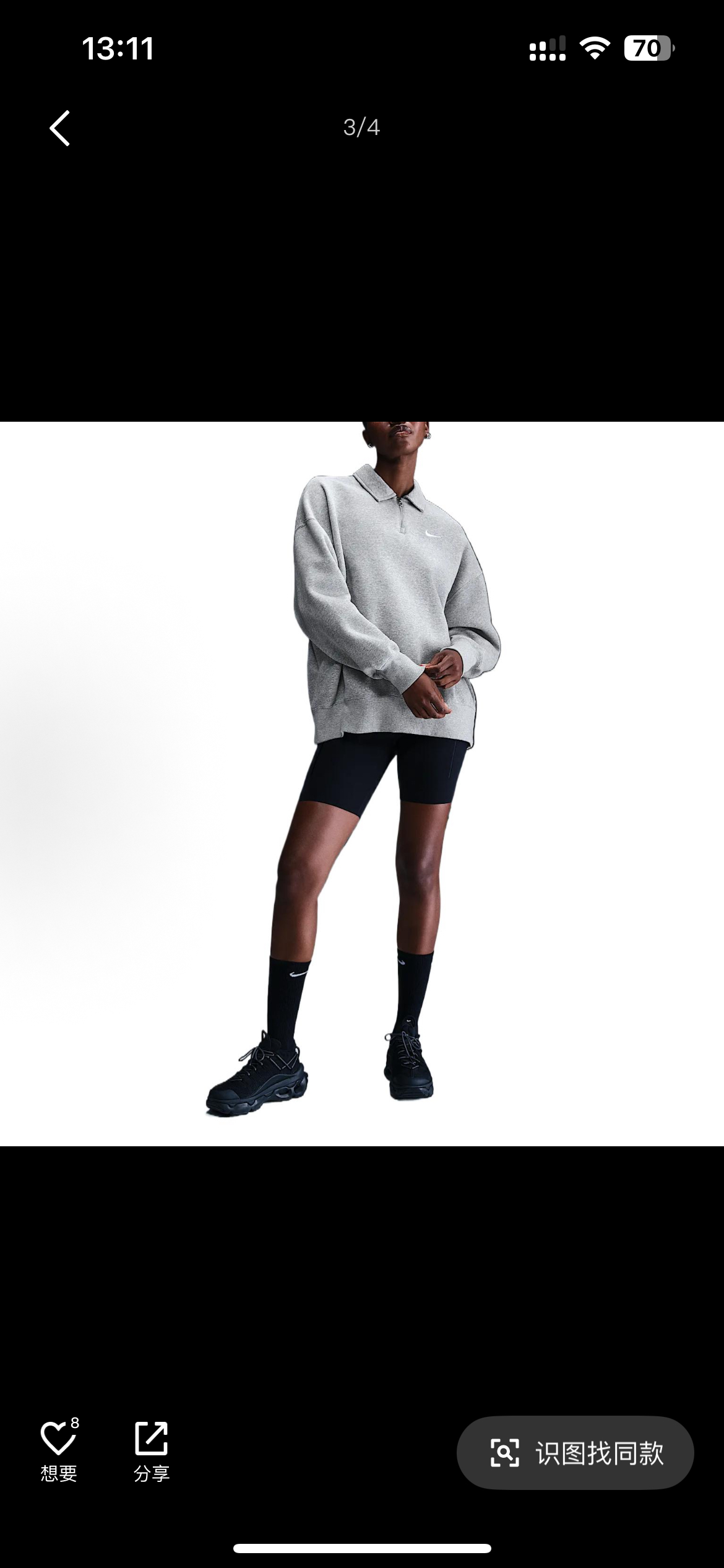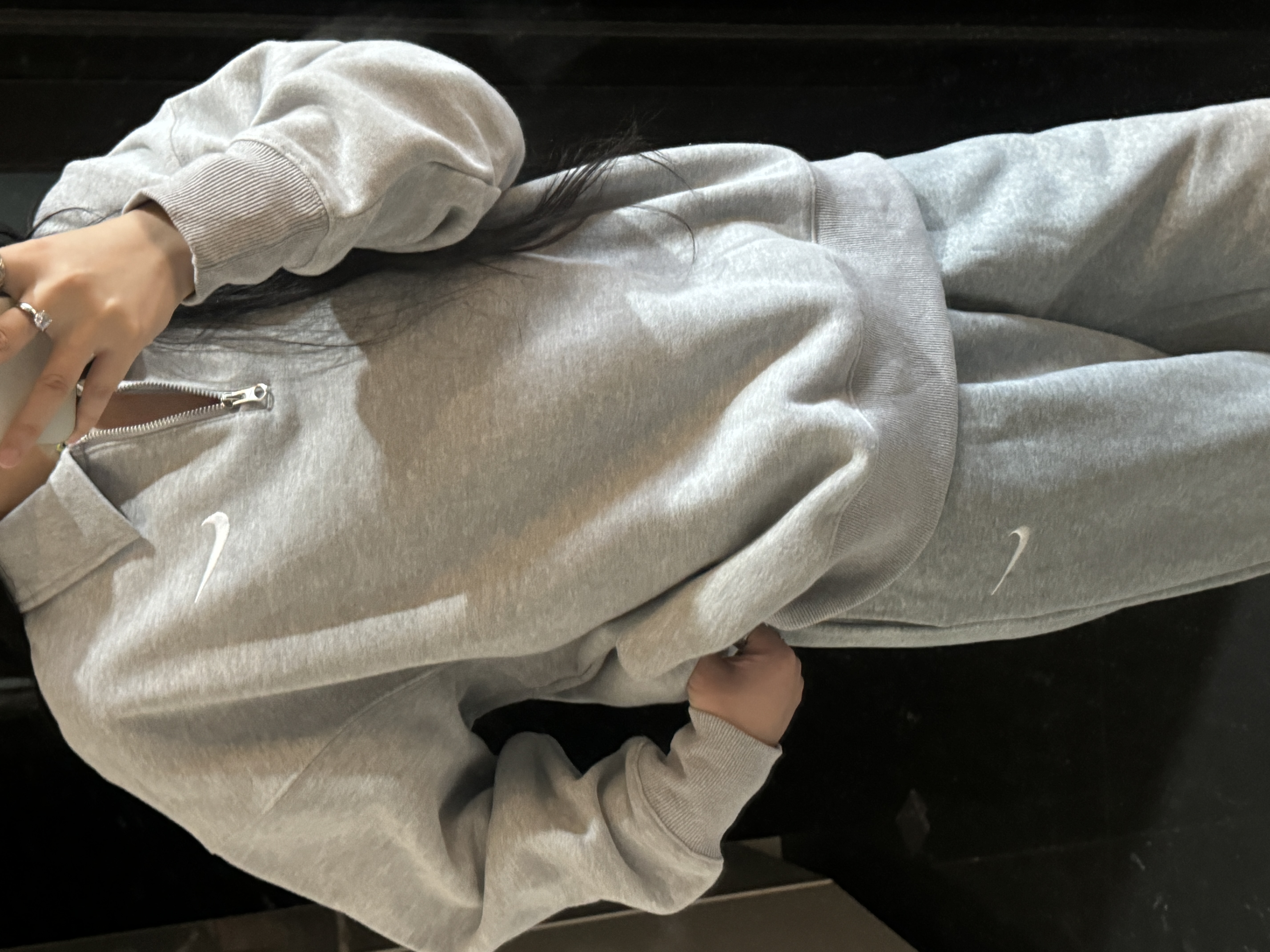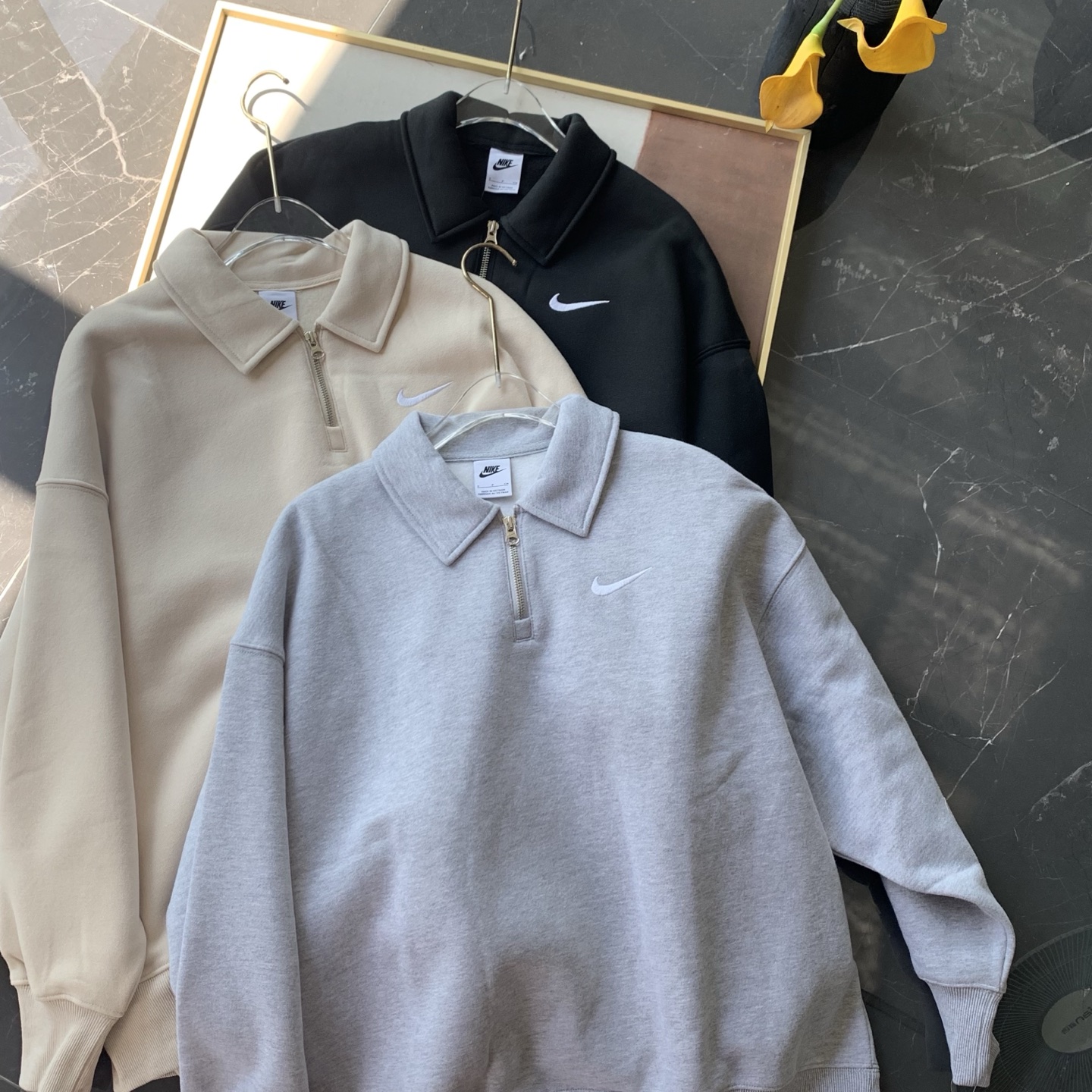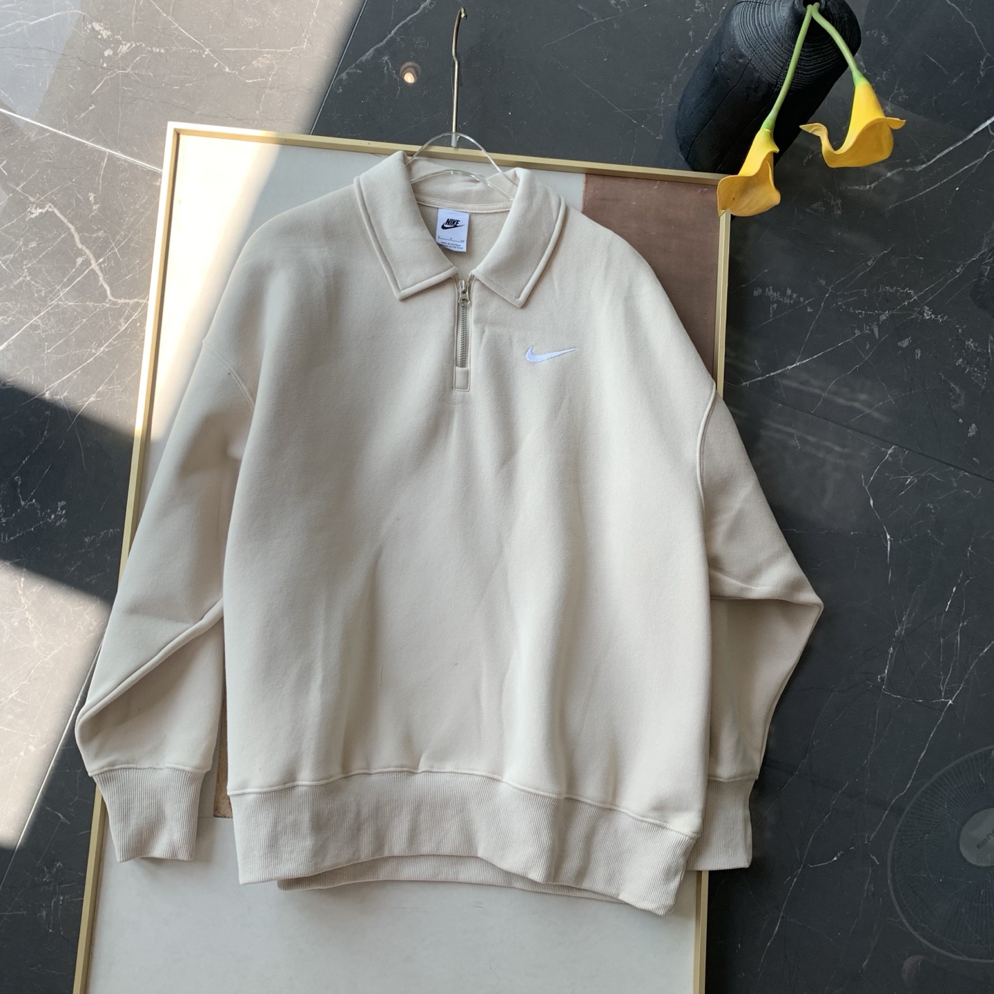 耐家标识翻领加绒长袖卫衣 男女同款 杏 黑 灰色🔥纯棉面料! 采用宽松的Oversized版型,结合翻领与半拉链设计,兼具复古感与现代休闲风格。袖口和下摆有罗纹收口,提升整体轮廓感,同时方便叠穿。左胸有经典的耐家 Swoosh刺绣Logo,低调且辨识度高。整体风格偏向Athflow风(运动与优雅结合),适合通勤、运动场景。谁懂啊!这件卫衣一上身,直接把高级感焊在身上!得物售价💰600➕ 宽松廓形版型⚠️蕾姐都是S效果!S码80-140斤以内⚠️M码90-160斤以内⚠️L码100-180斤以内 XL码110-200斤以内⚠️ 这款就是非常宽松的版型⚠️官方数据是女款实际男女可以穿!女生就是穿大大的慵懒效果!蕾姐想当裙子的话需要L码⚠️