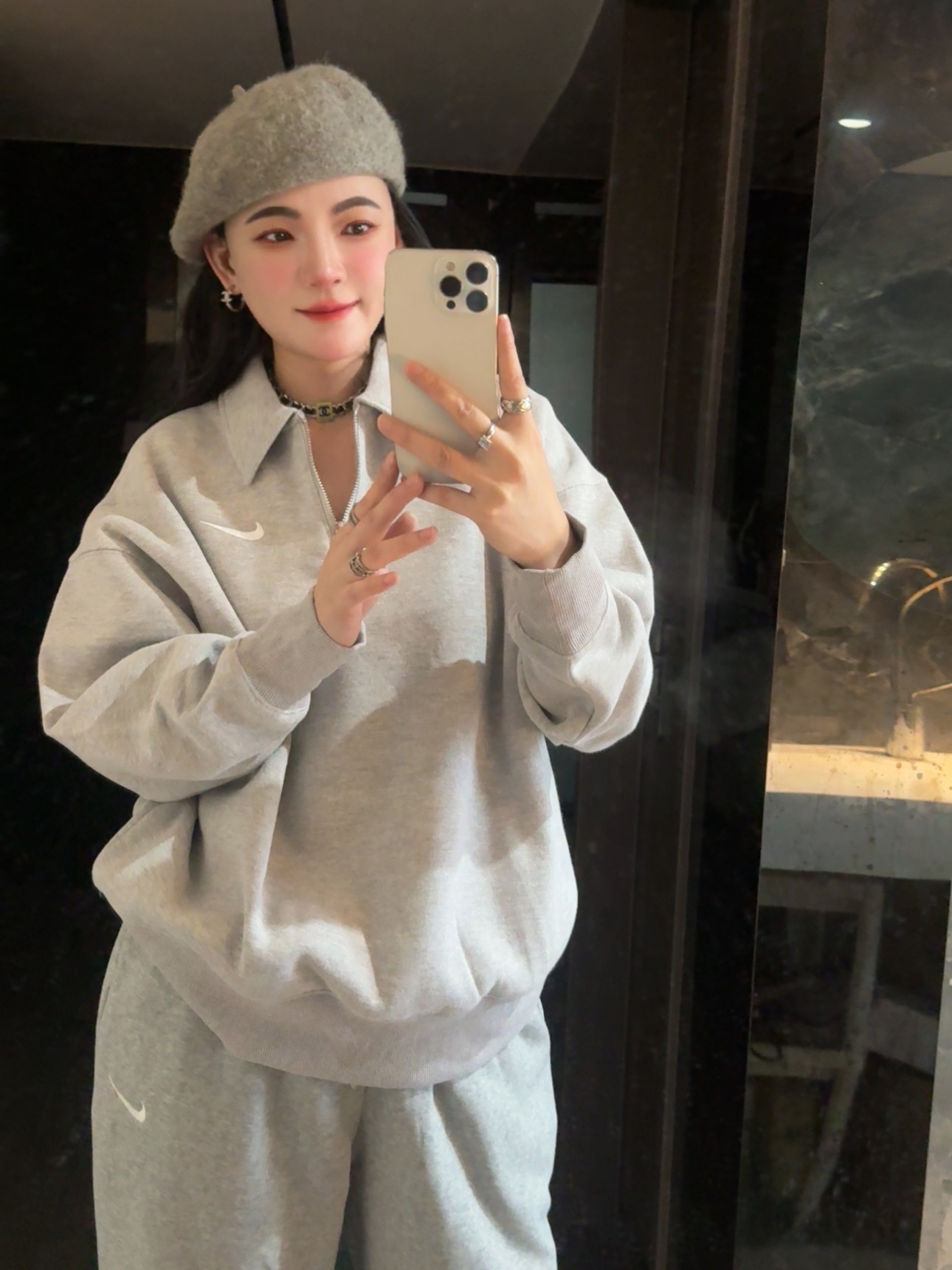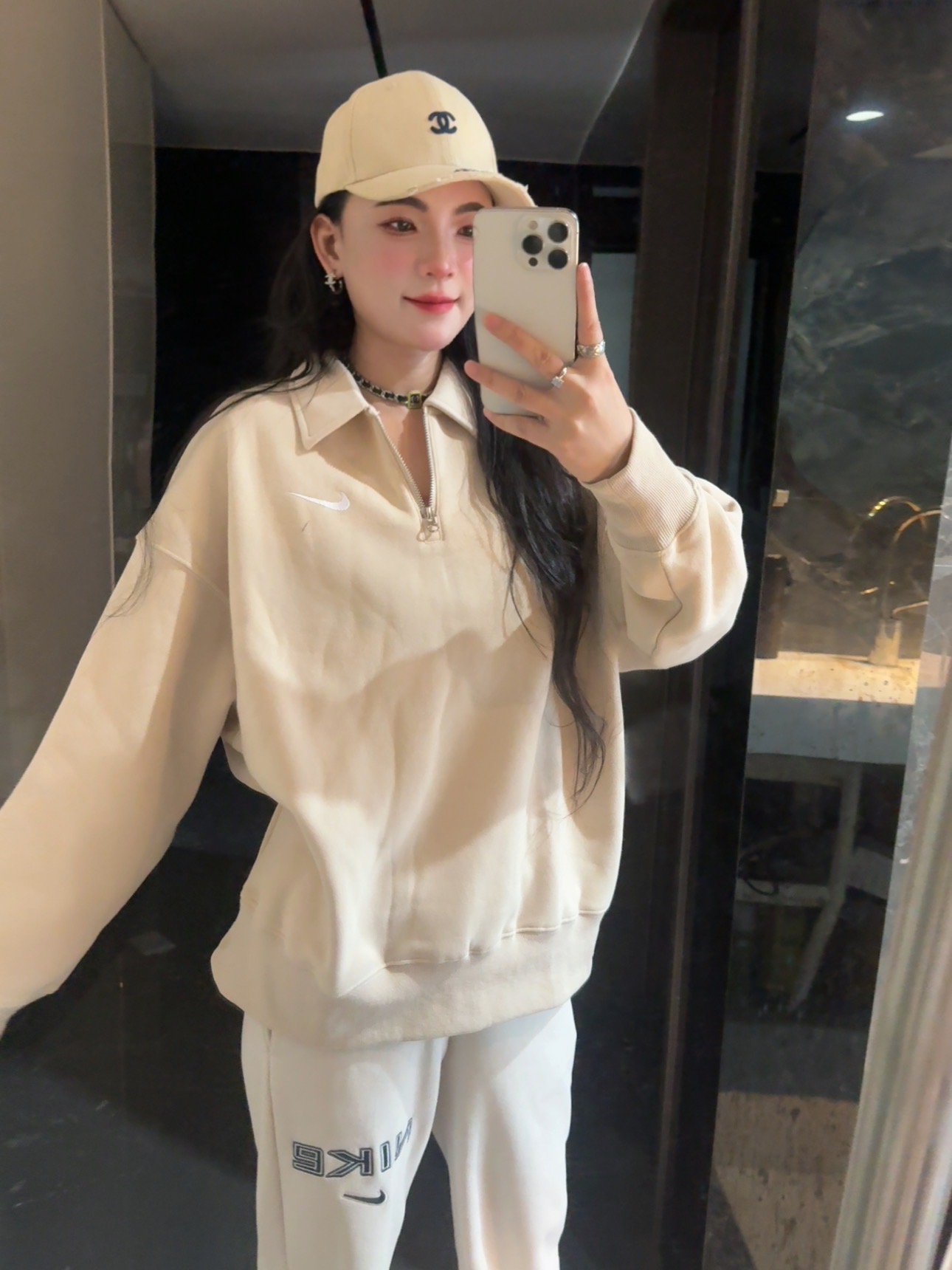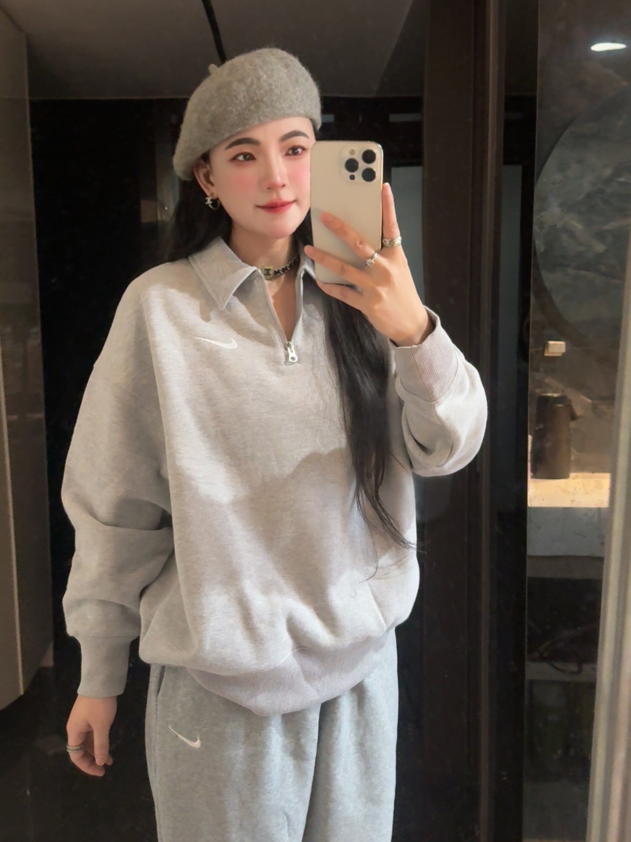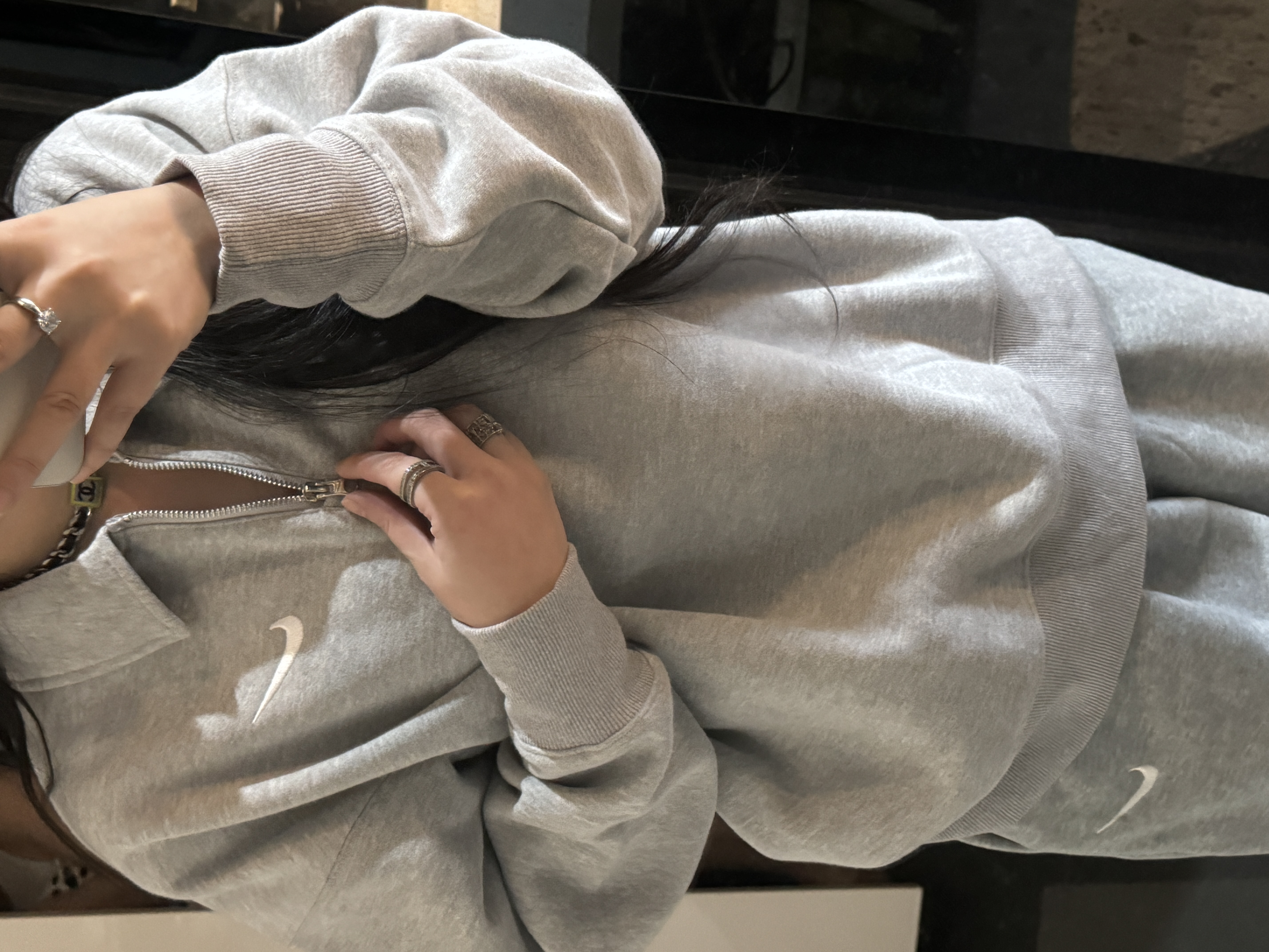 耐家标识翻领加绒长袖卫衣 男女同款 杏 黑 灰色🔥纯棉面料! 采用宽松的Oversized版型,结合翻领与半拉链设计,兼具复古感与现代休闲风格。袖口和下摆有罗纹收口,提升整体轮廓感,同时方便叠穿。左胸有经典的耐家 Swoosh刺绣Logo,低调且辨识度高。整体风格偏向Athflow风(运动与优雅结合),适合通勤、运动场景。谁懂啊!这件卫衣一上身,直接把高级感焊在身上!得物售价💰600➕ 宽松廓形版型⚠️蕾姐都是S效果!S码80-140斤以内⚠️M码90-160斤以内⚠️L码100-180斤以内 XL码110-200斤以内⚠️ 这款就是非常宽松的版型⚠️官方数据是女款实际男女可以穿!女生就是穿大大的慵懒效果!蕾姐想当裙子的话需要L码⚠️