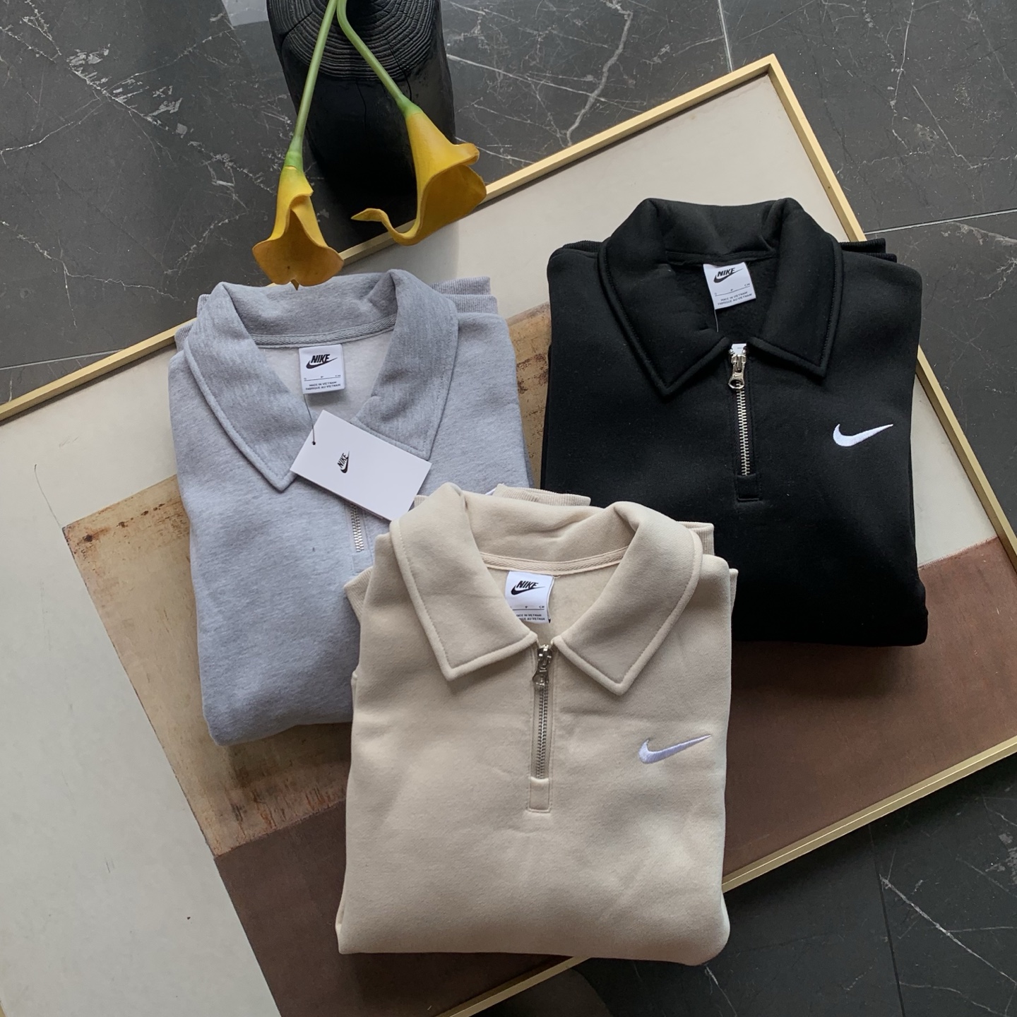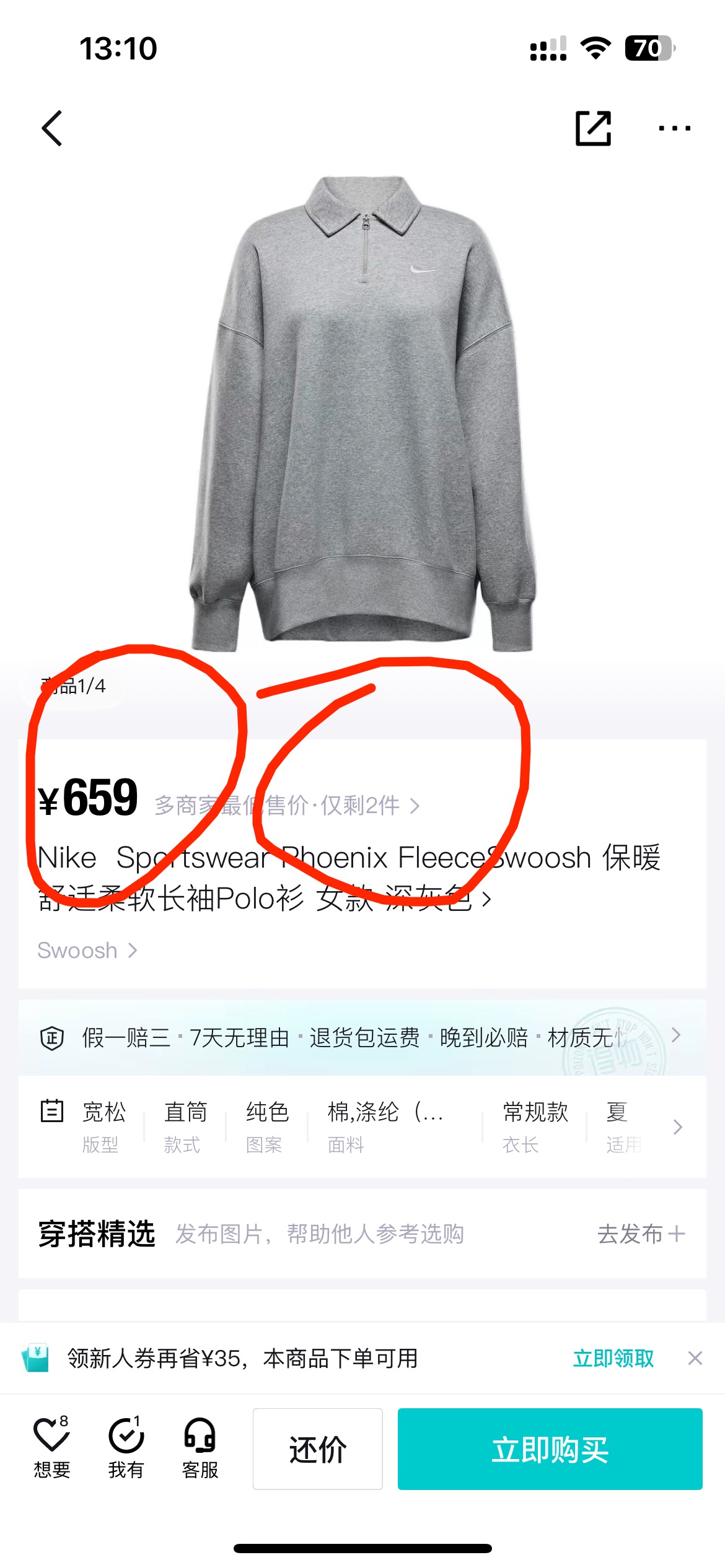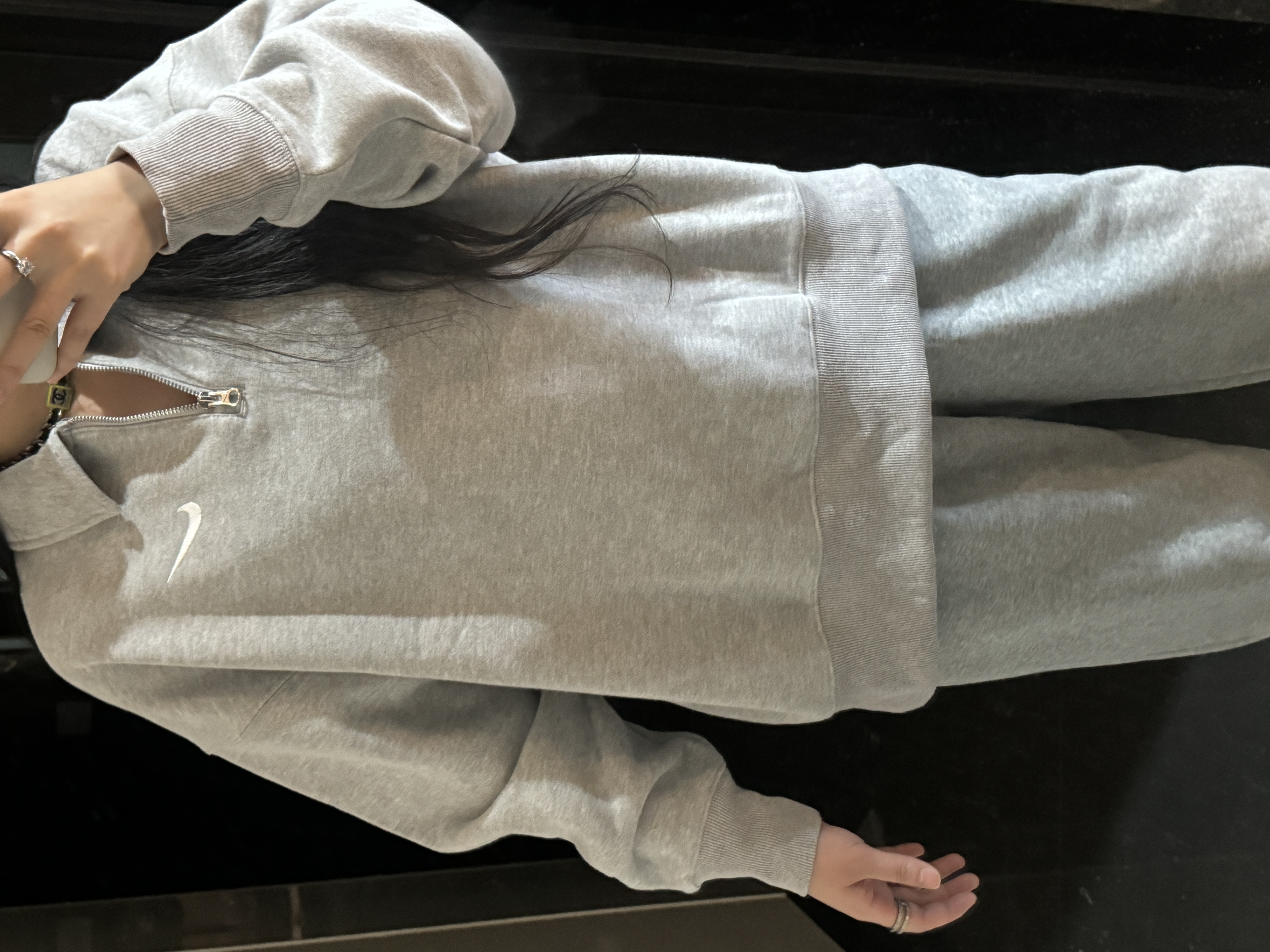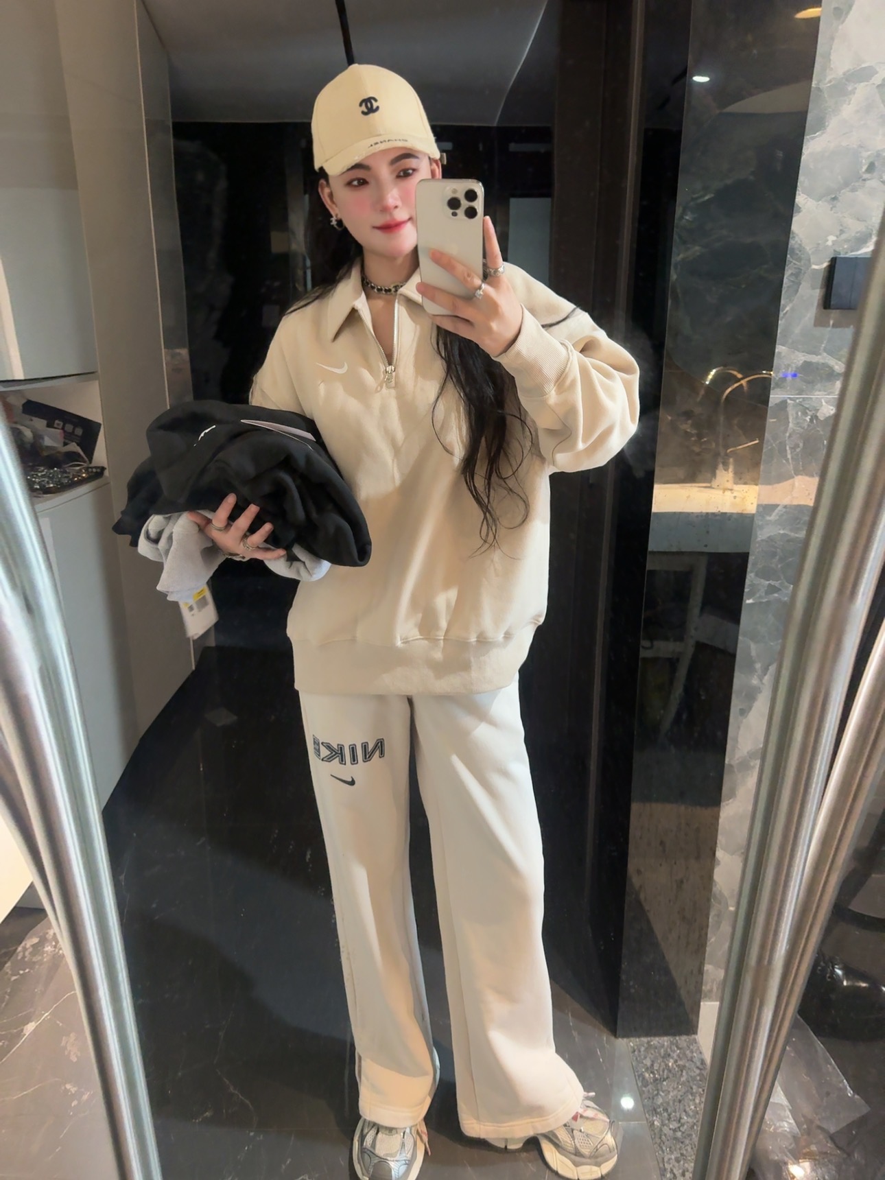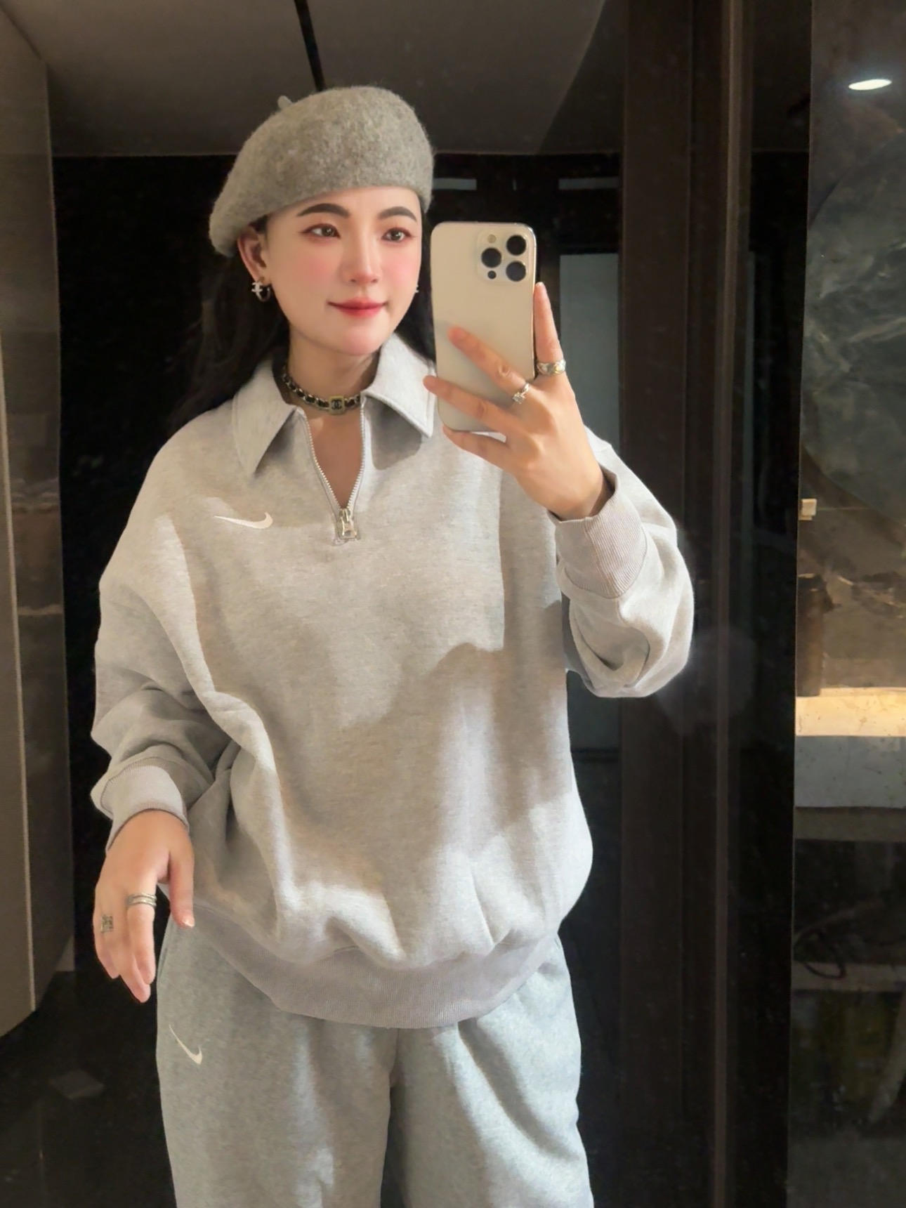 耐家标识翻领加绒长袖卫衣 男女同款 杏 黑 灰色🔥纯棉面料! 采用宽松的Oversized版型,结合翻领与半拉链设计,兼具复古感与现代休闲风格。袖口和下摆有罗纹收口,提升整体轮廓感,同时方便叠穿。左胸有经典的耐家 Swoosh刺绣Logo,低调且辨识度高。整体风格偏向Athflow风(运动与优雅结合),适合通勤、运动场景。谁懂啊!这件卫衣一上身,直接把高级感焊在身上!得物售价💰600➕ 宽松廓形版型⚠️蕾姐都是S效果!S码80-140斤以内⚠️M码90-160斤以内⚠️L码100-180斤以内 XL码110-200斤以内⚠️ 这款就是非常宽松的版型⚠️官方数据是女款实际男女可以穿!女生就是穿大大的慵懒效果!蕾姐想当裙子的话需要L码⚠️