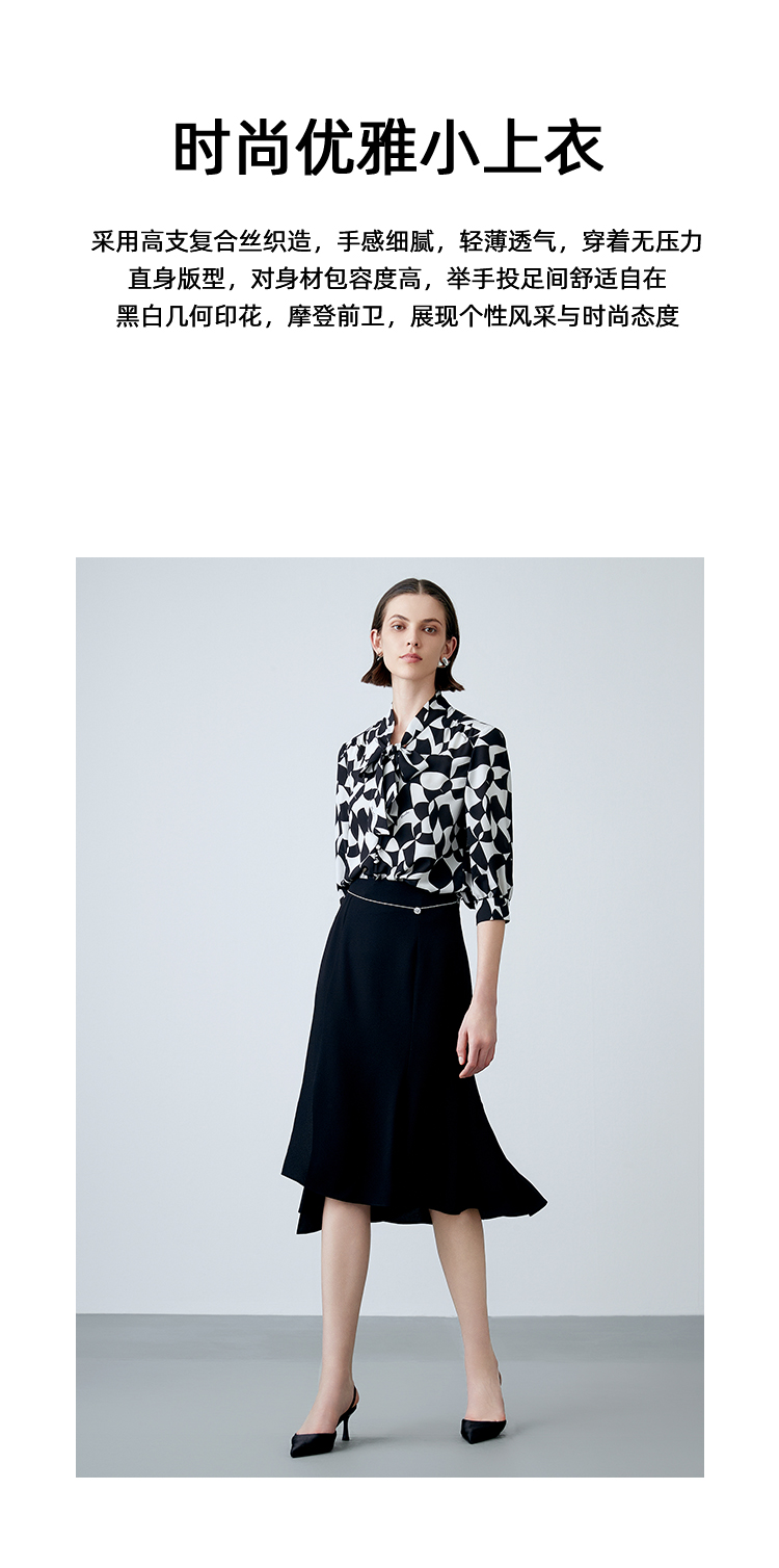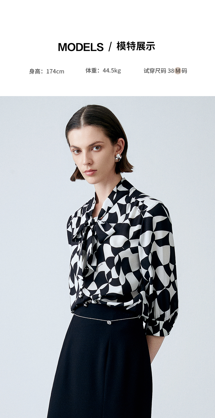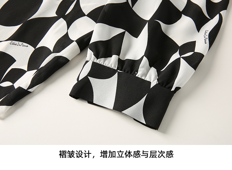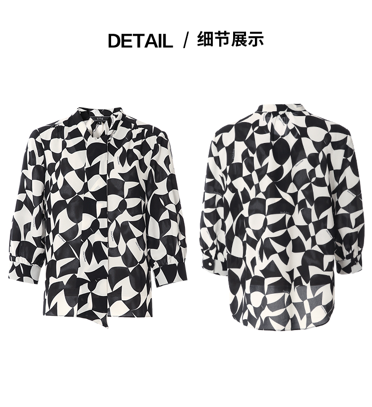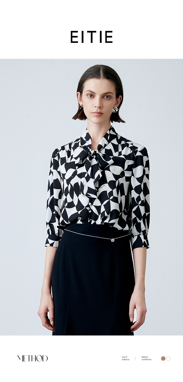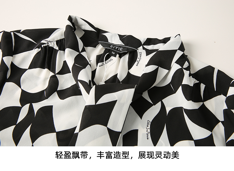 EITIE爱特爱夏新款气质通勤显瘦飘带系带印花衬衫上衣7813508