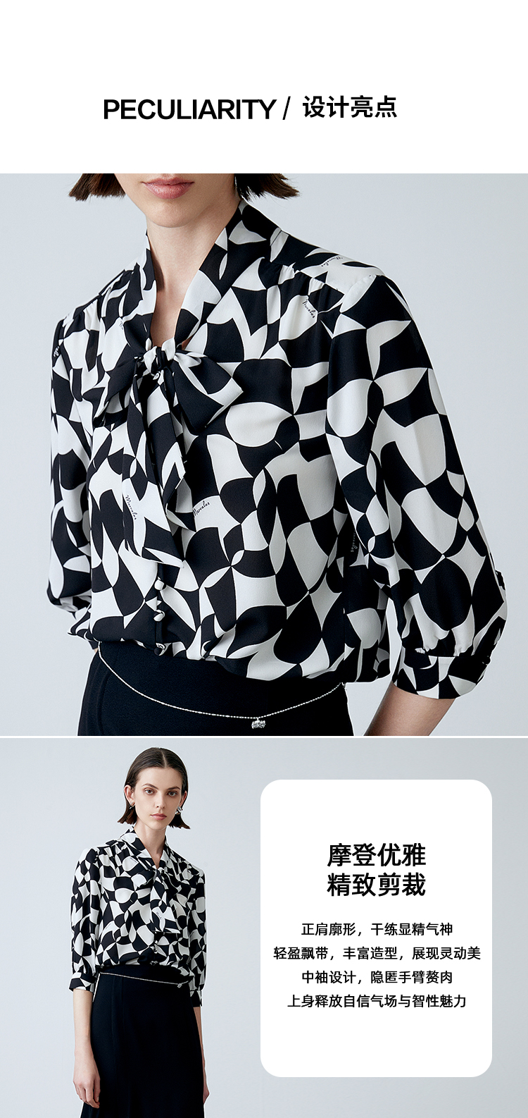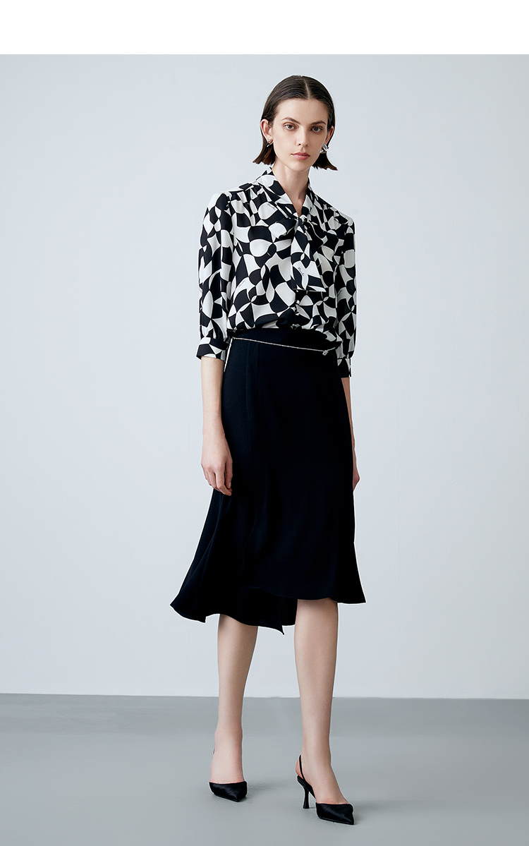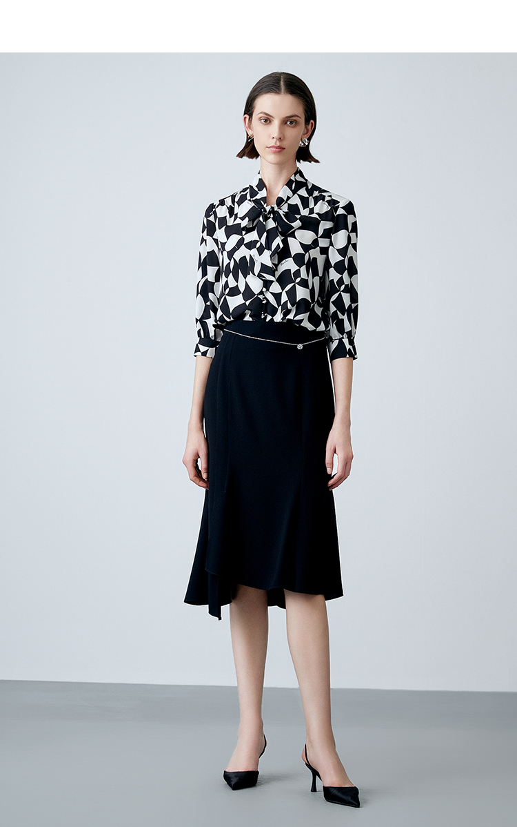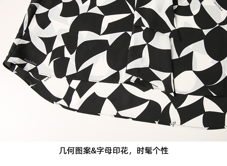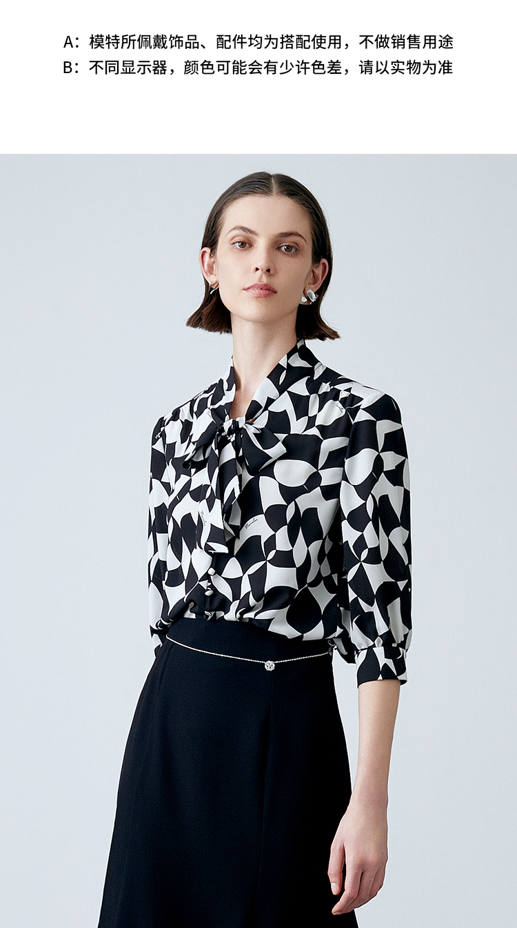 EITIE爱特爱夏新款气质通勤显瘦飘带系带印花衬衫上衣7813508