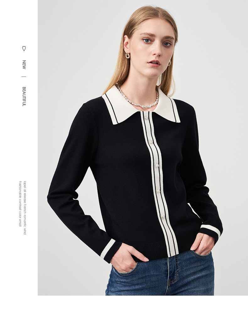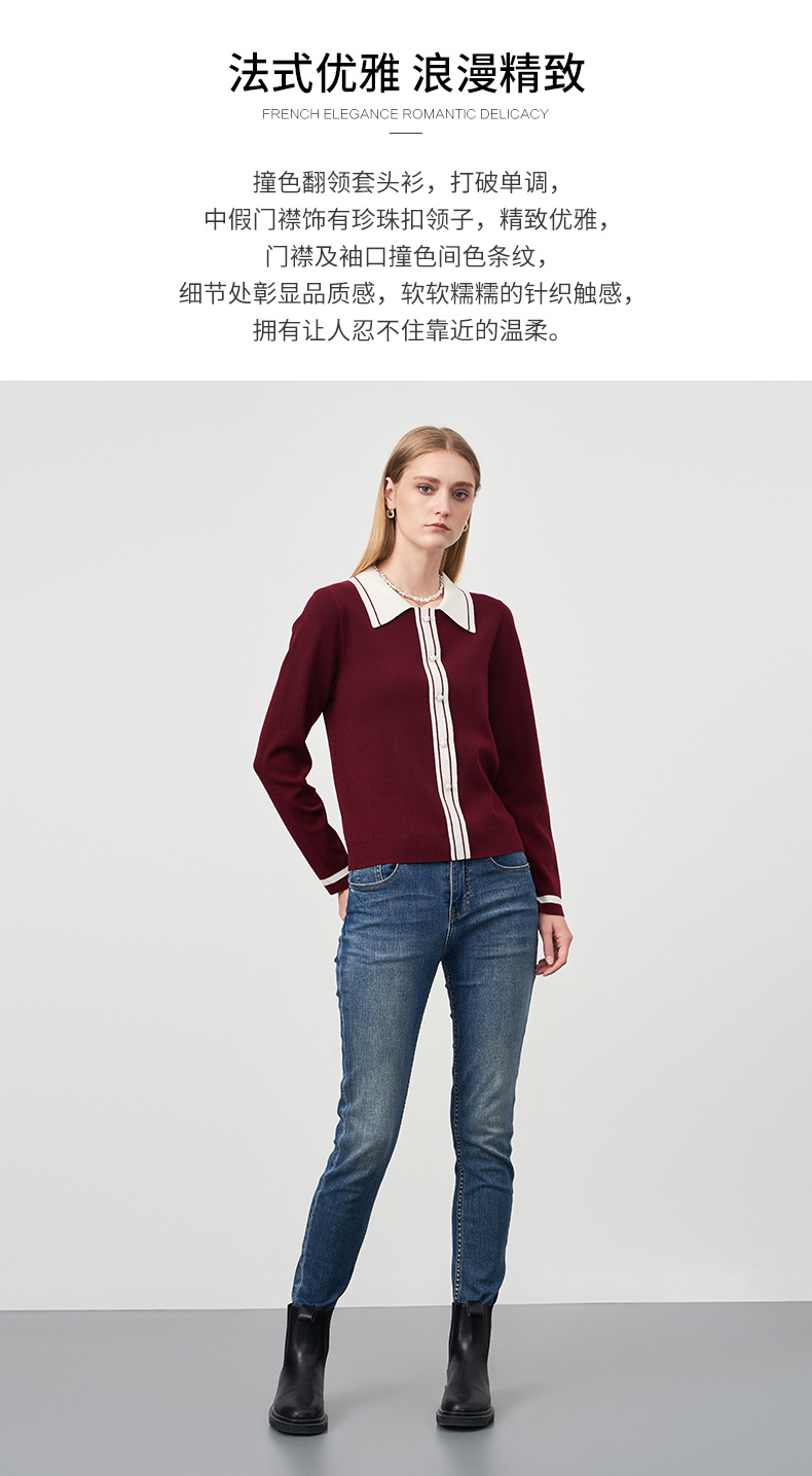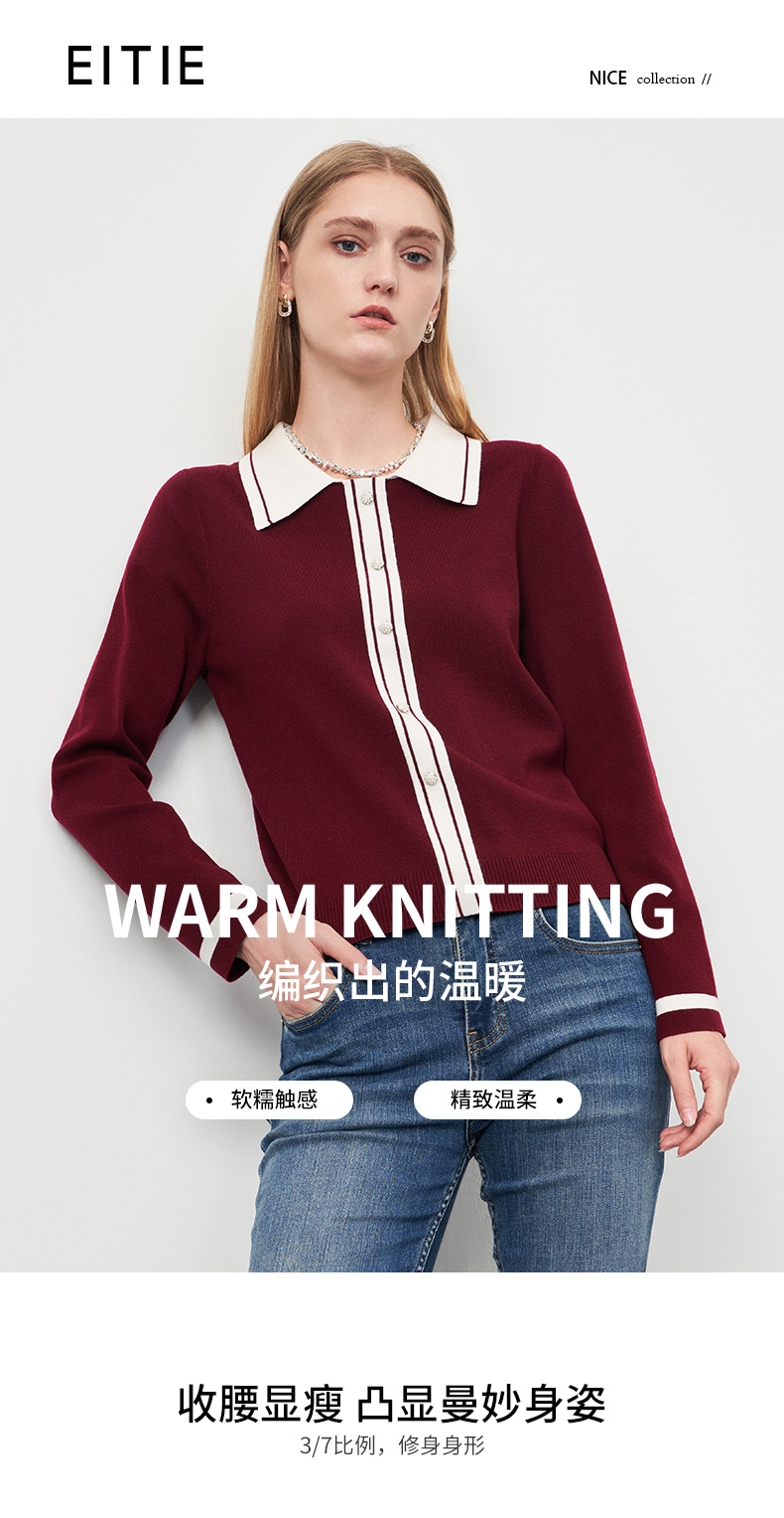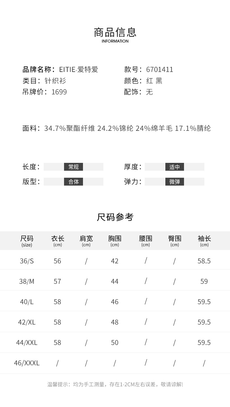 EITIE爱特爱秋季新品时尚拼接针织衫优雅打底衫女6701411