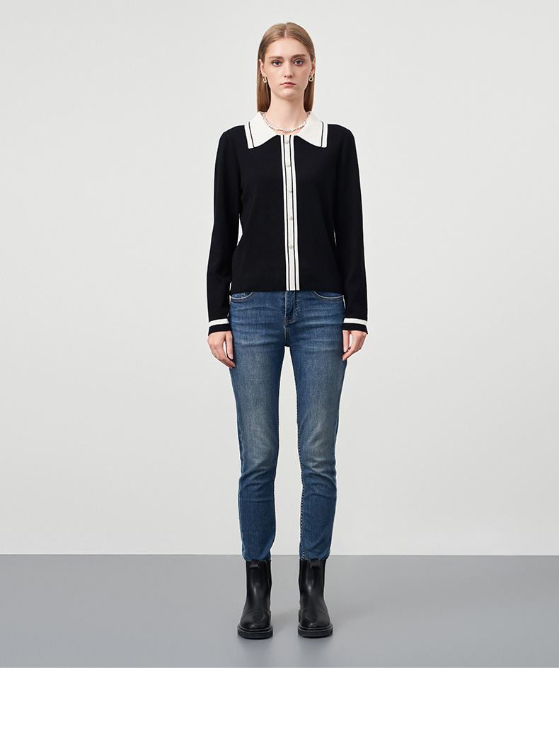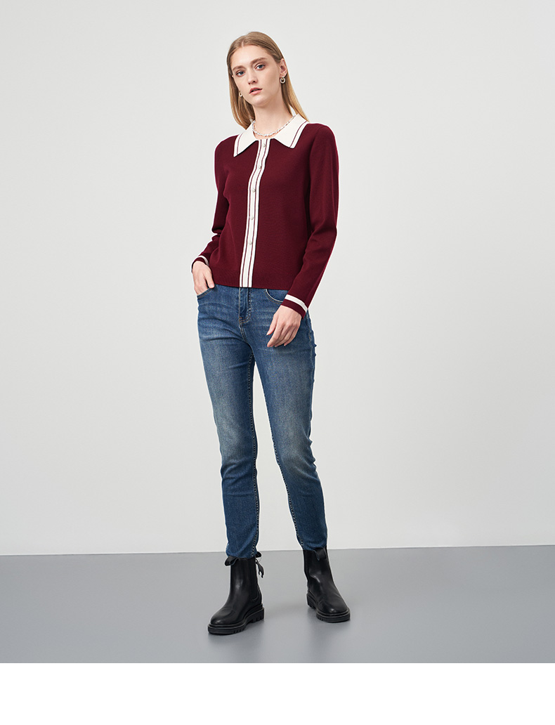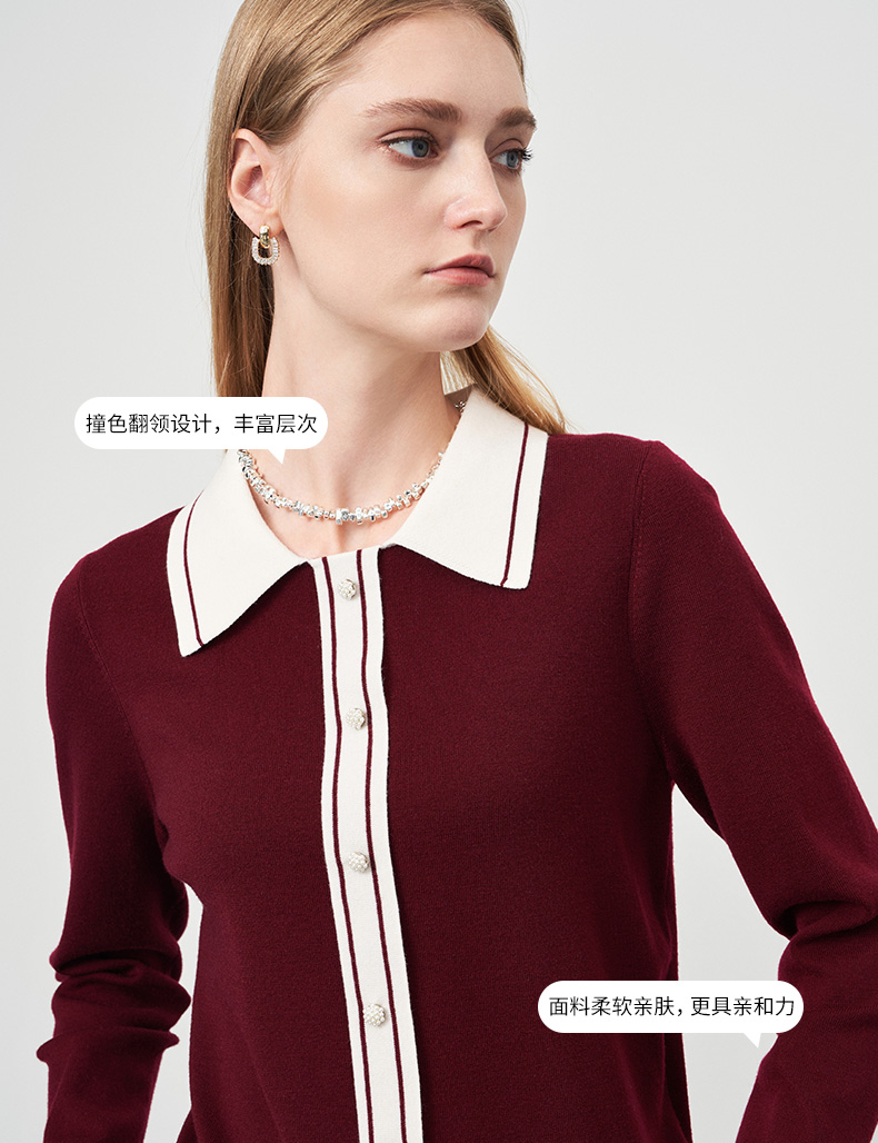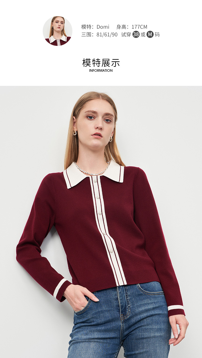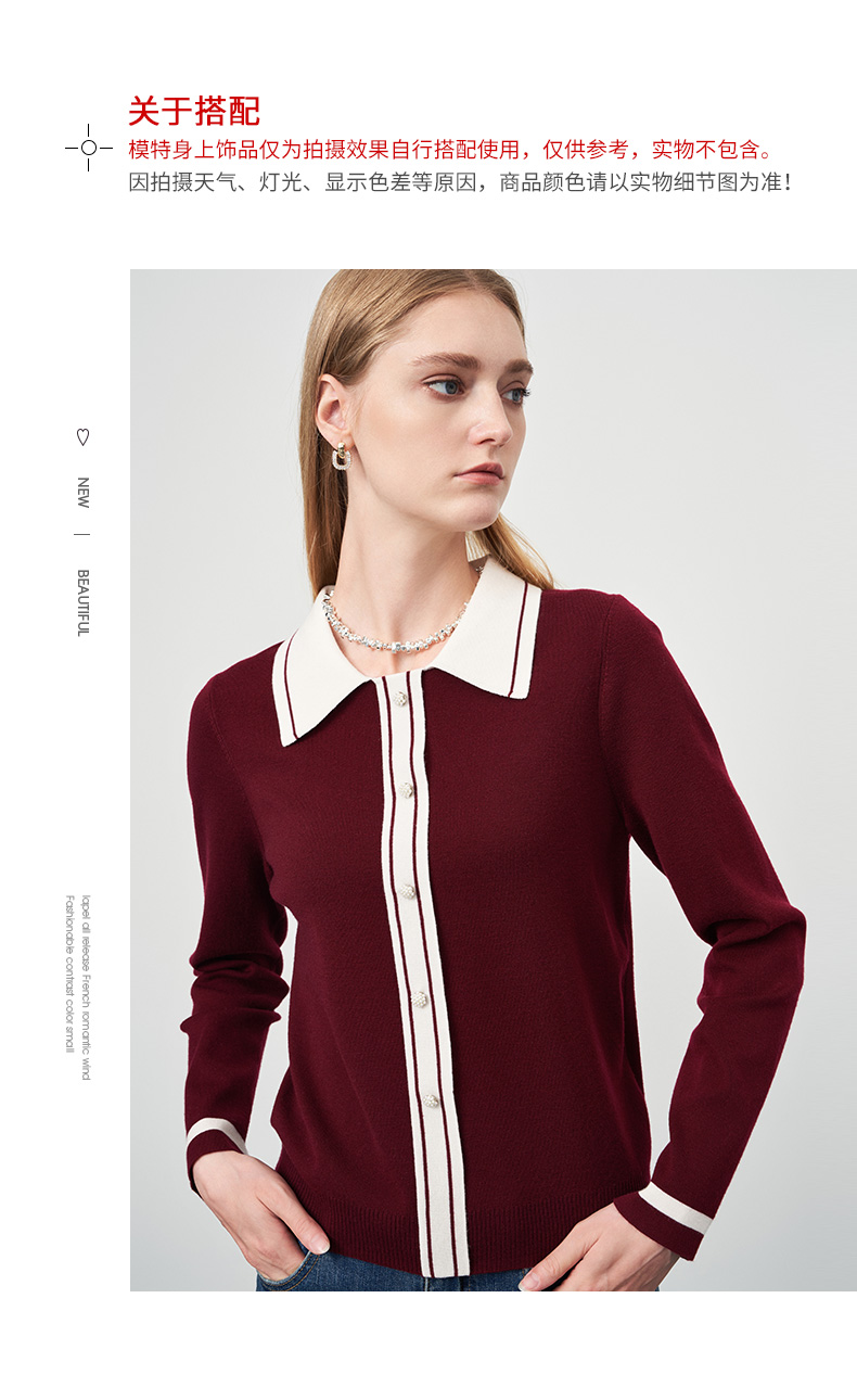 EITIE爱特爱秋季新品时尚拼接针织衫优雅打底衫女6701411