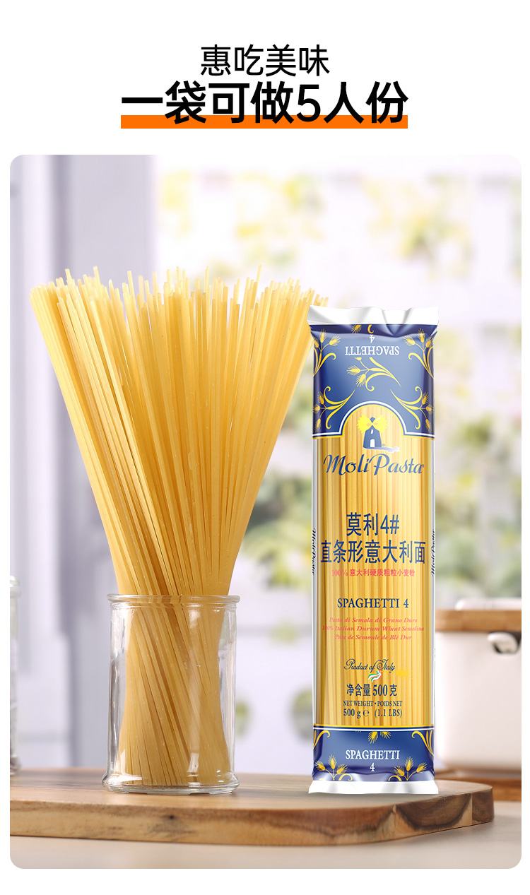 莫利 意大利进口 4#直条形意大利面 500g/包
