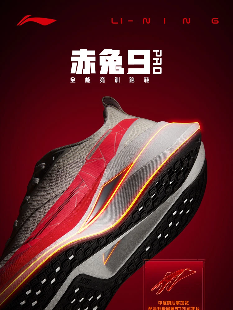 李宁赤兔9 PRO男子䨻丝反光轻量高回弹竞速训练跑鞋ARPW001