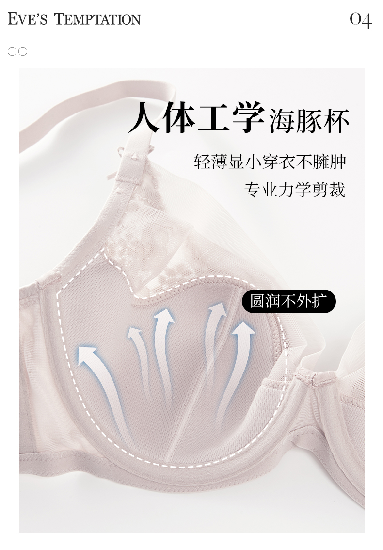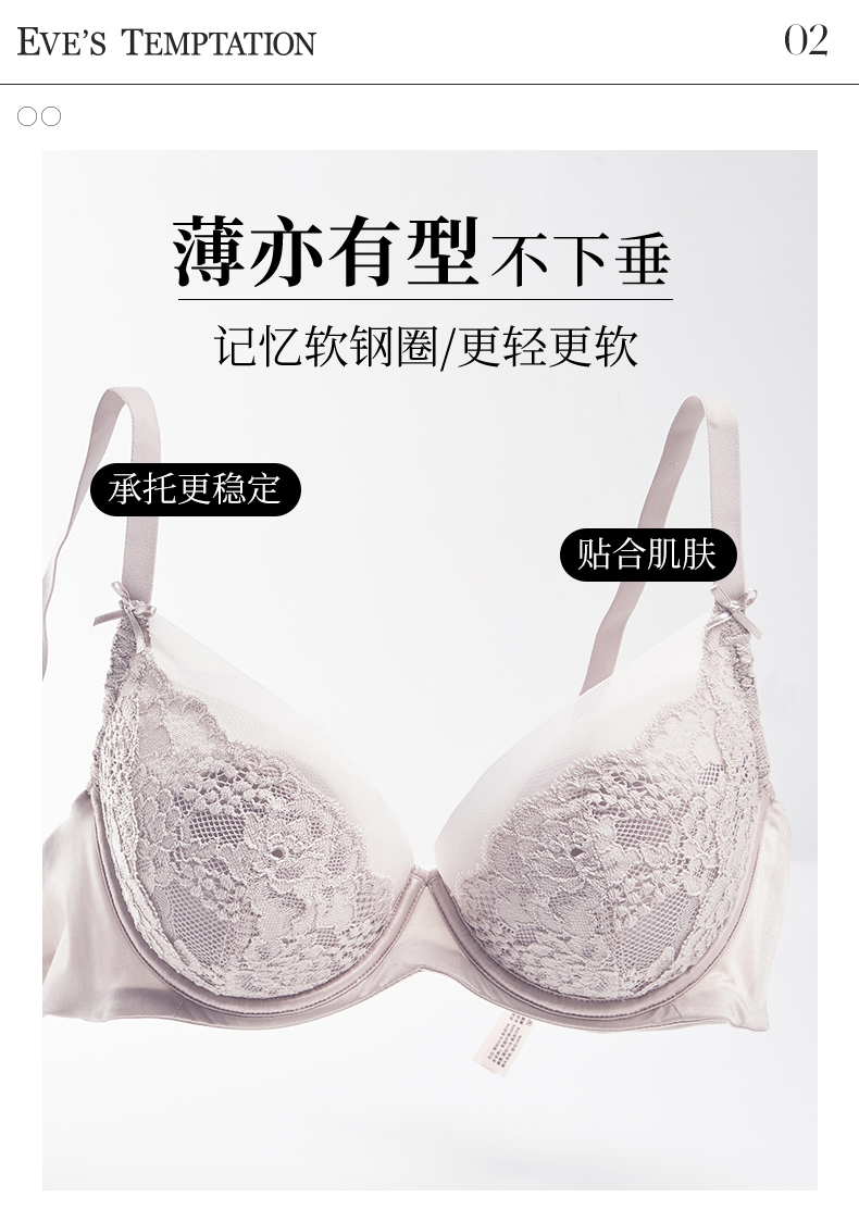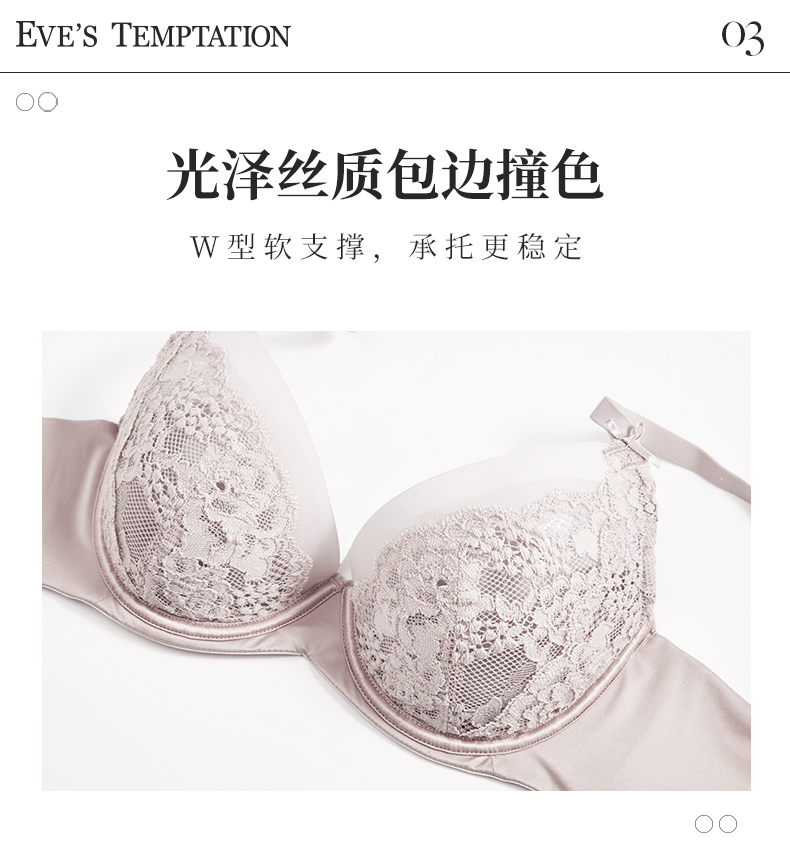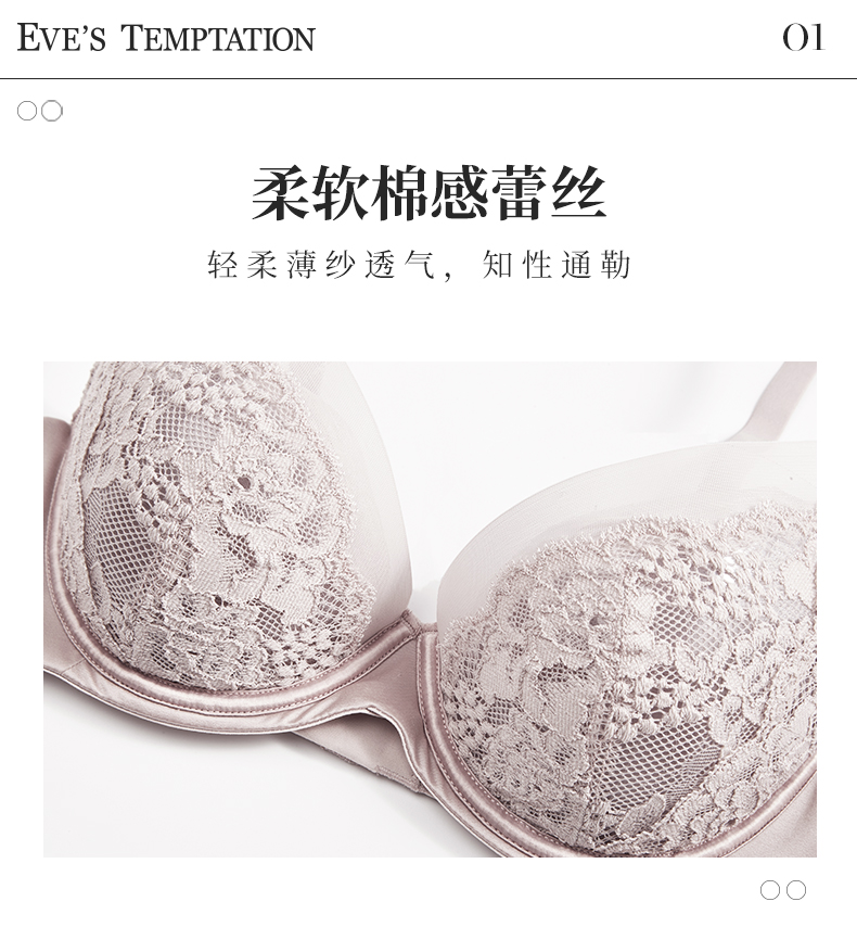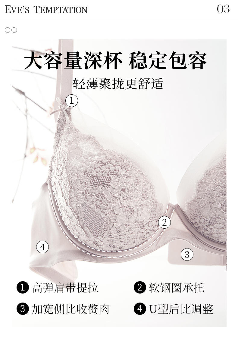 夏娃的诱惑灵韵组法式蕾丝内衣女防下垂收副乳聚拢大码大胸显小胸罩文胸