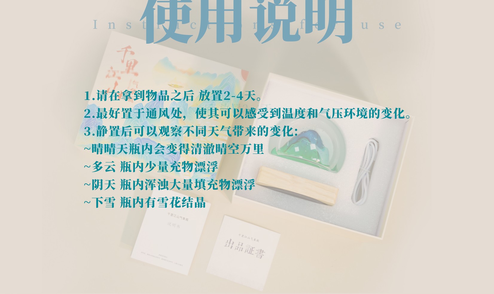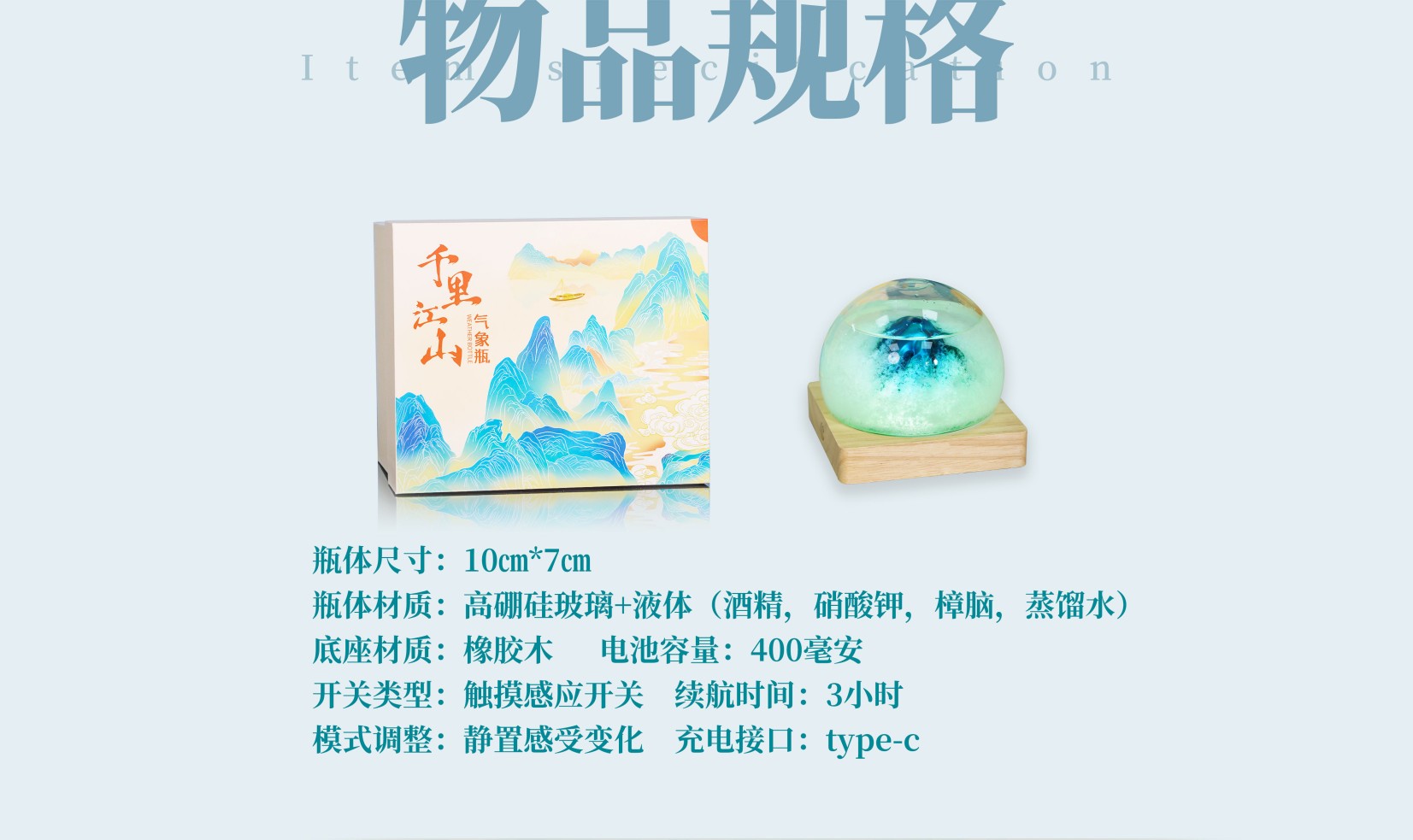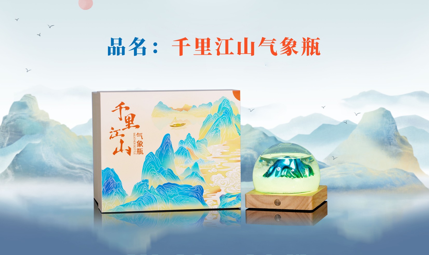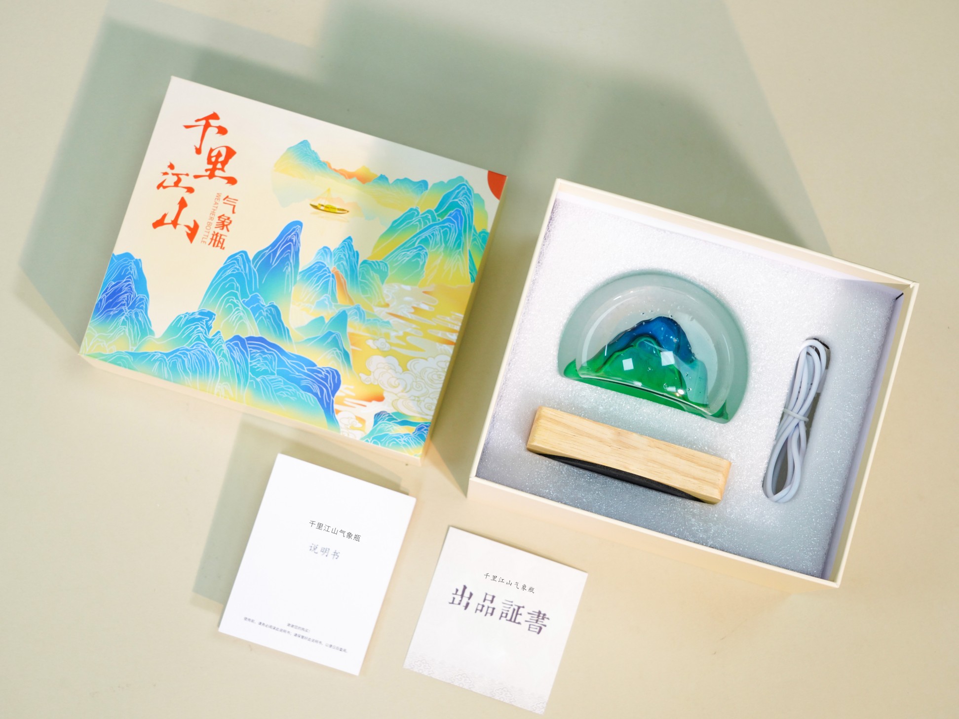 【千里江山气象瓶】天气瓶既能预报天气,也是唯美摆件,更是温馨夜灯,瓶体为高硼硅玻璃材质,做工为人工吹制,做工精细精美