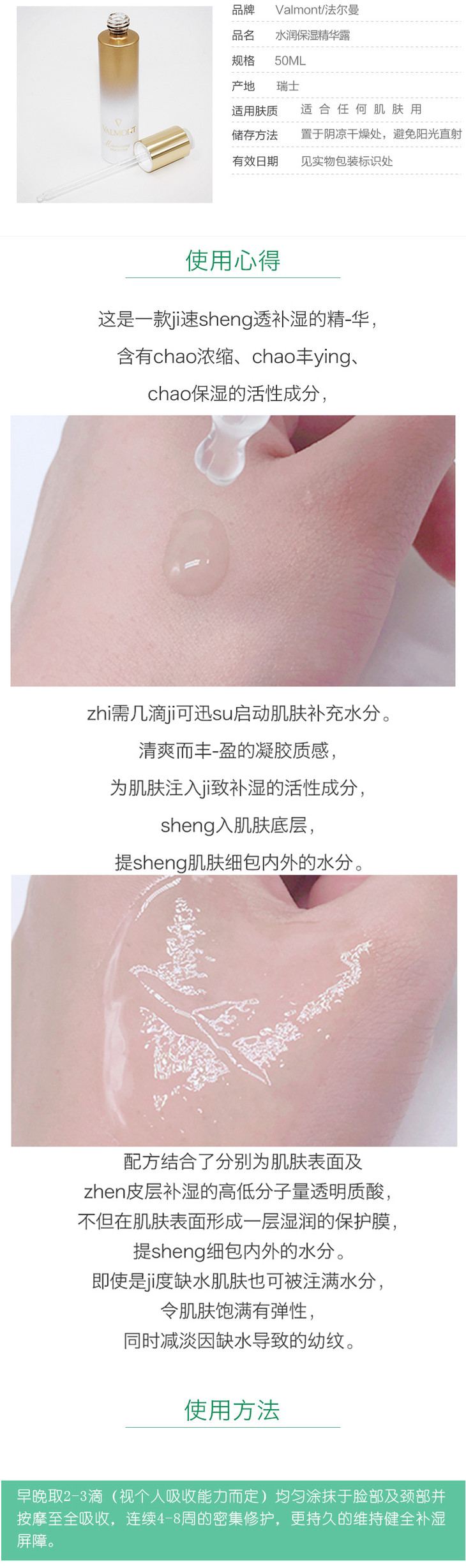 Valmont法尔曼水润补湿精华露 玻尿酸精华50ML