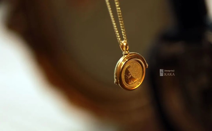 项链搭配的是最复古的侧身链,非常时髦百搭。