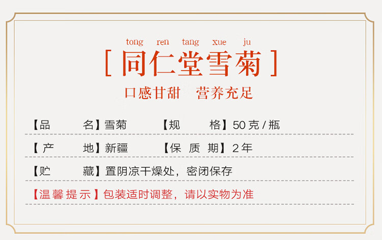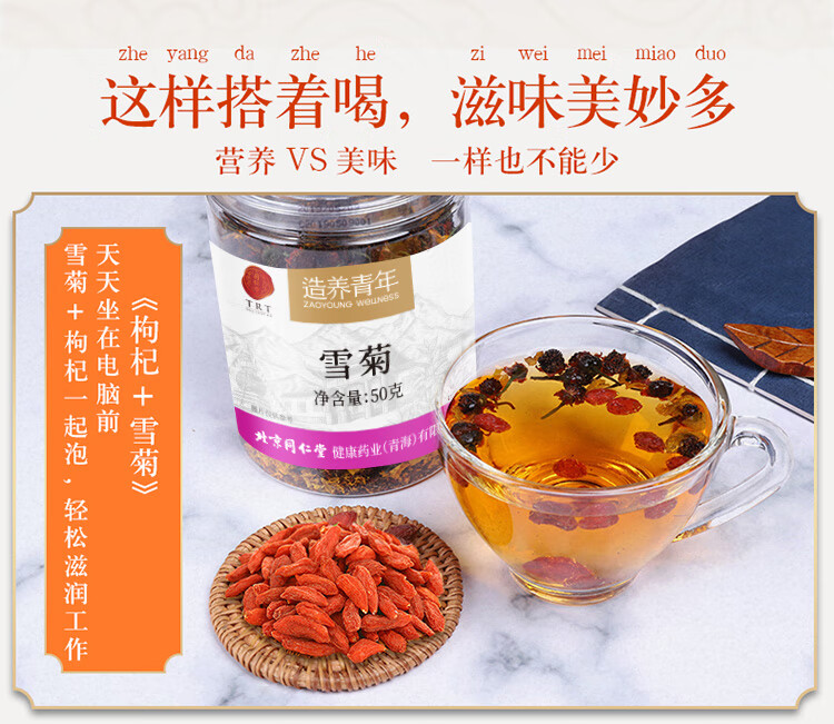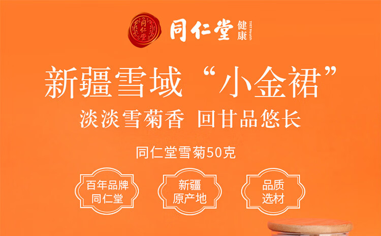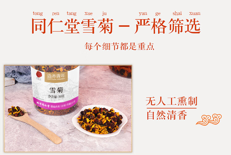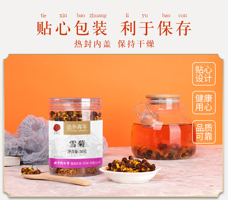 【正宗同仁堂品牌】北京同仁堂 雪菊50克/瓶 产自新疆 自然清香 口感甘甜 拒绝熏制SY