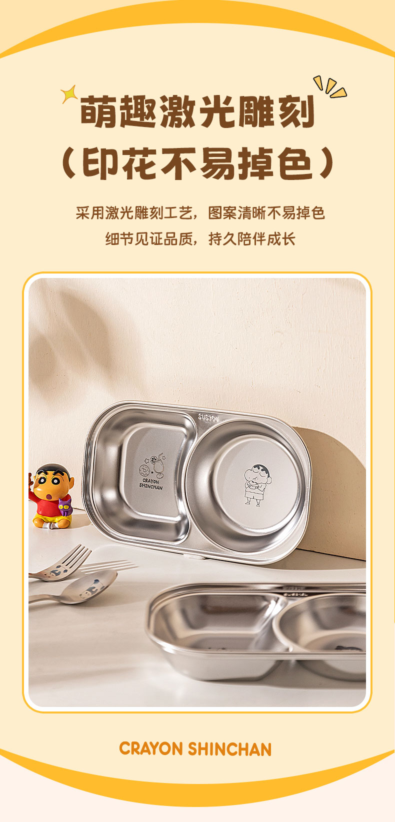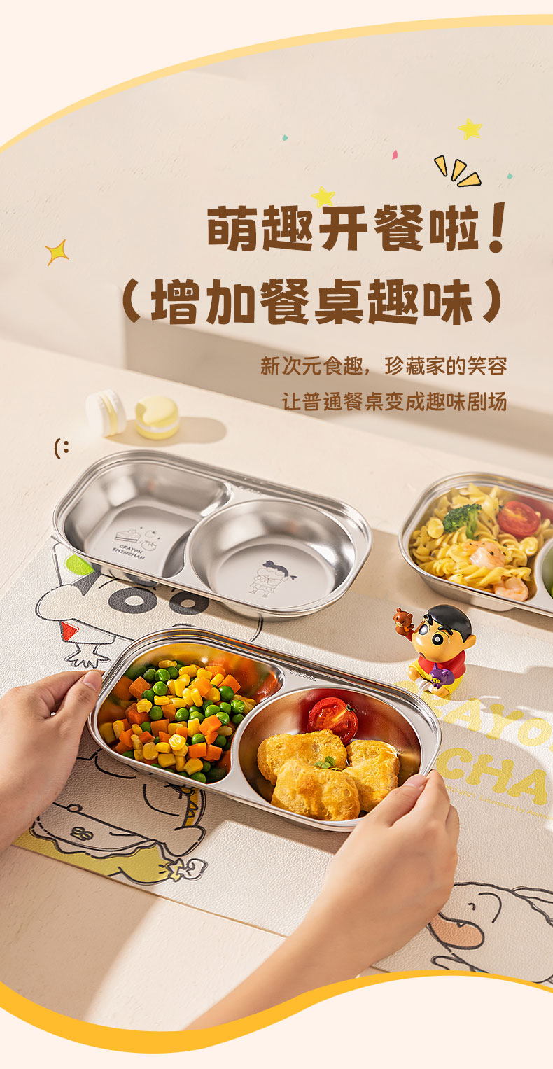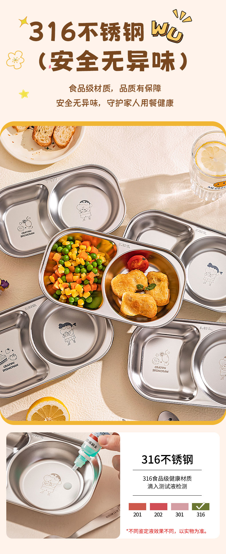 【摩登主妇&蜡笔小新】分格餐盘316不锈钢餐具防摔儿童宝宝辅食盘