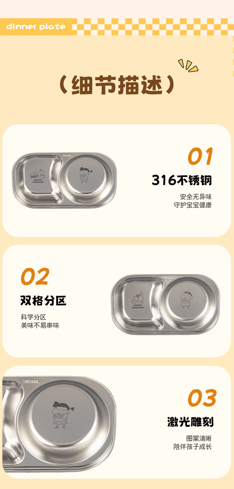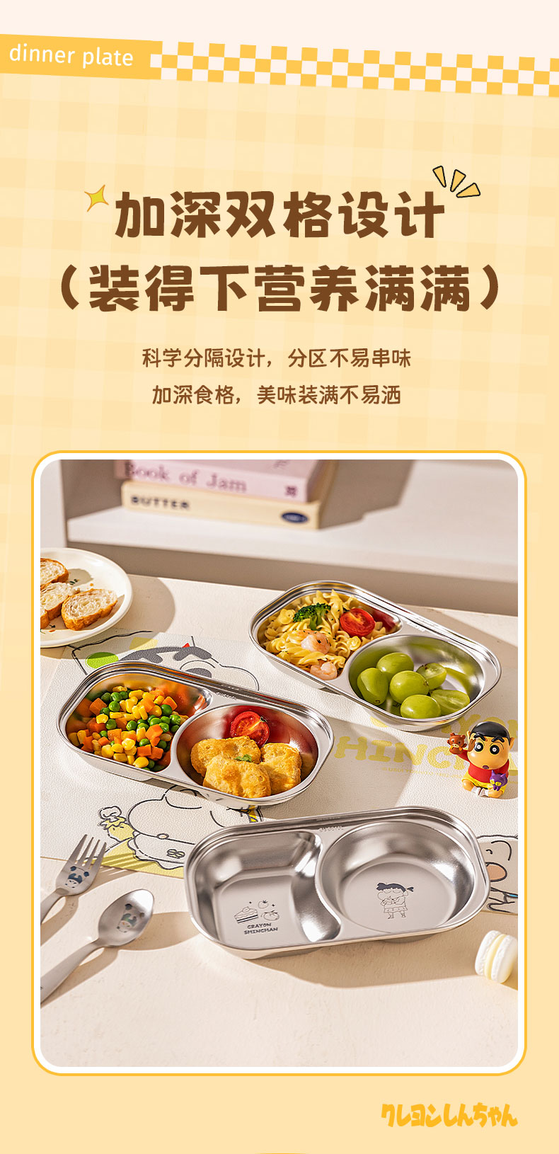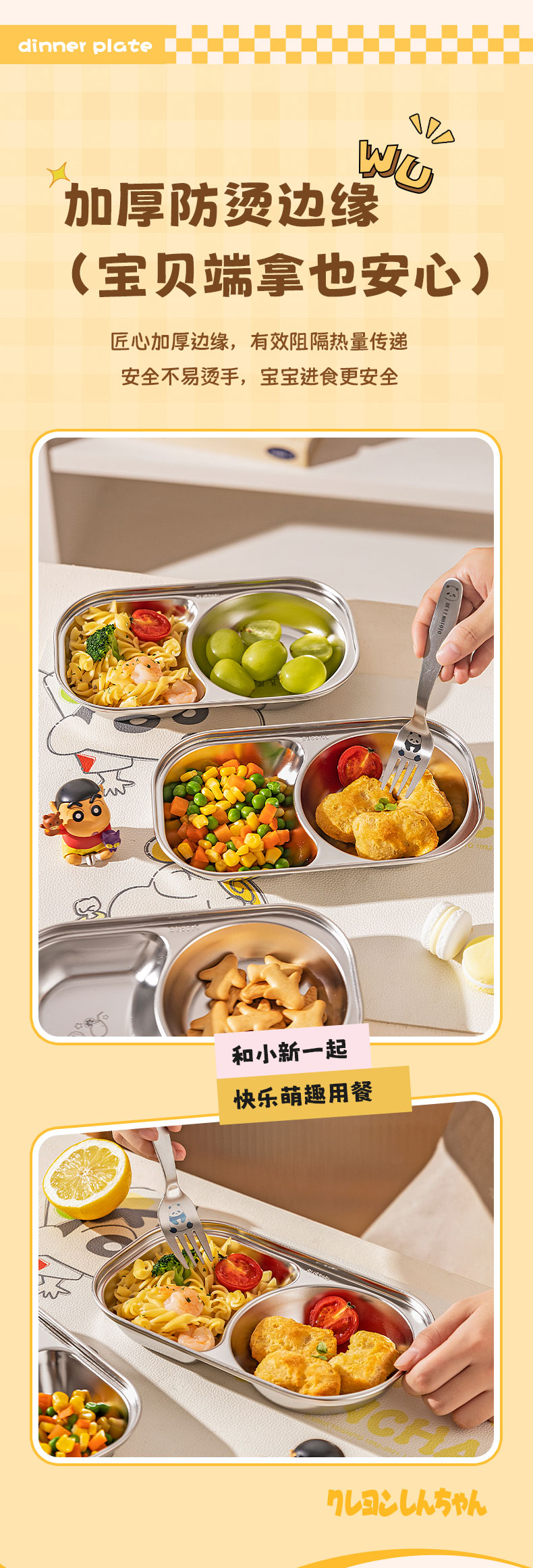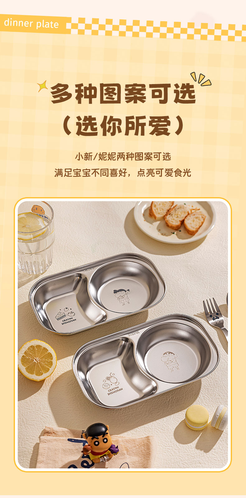 【摩登主妇&蜡笔小新】分格餐盘316不锈钢餐具防摔儿童宝宝辅食盘
