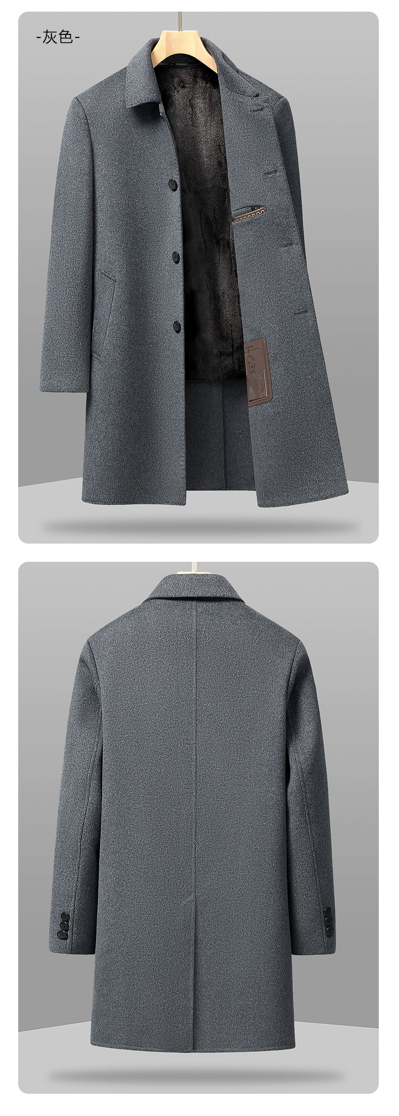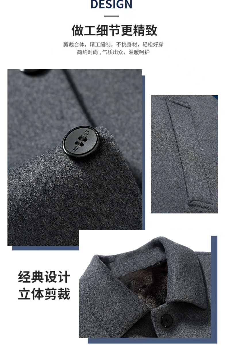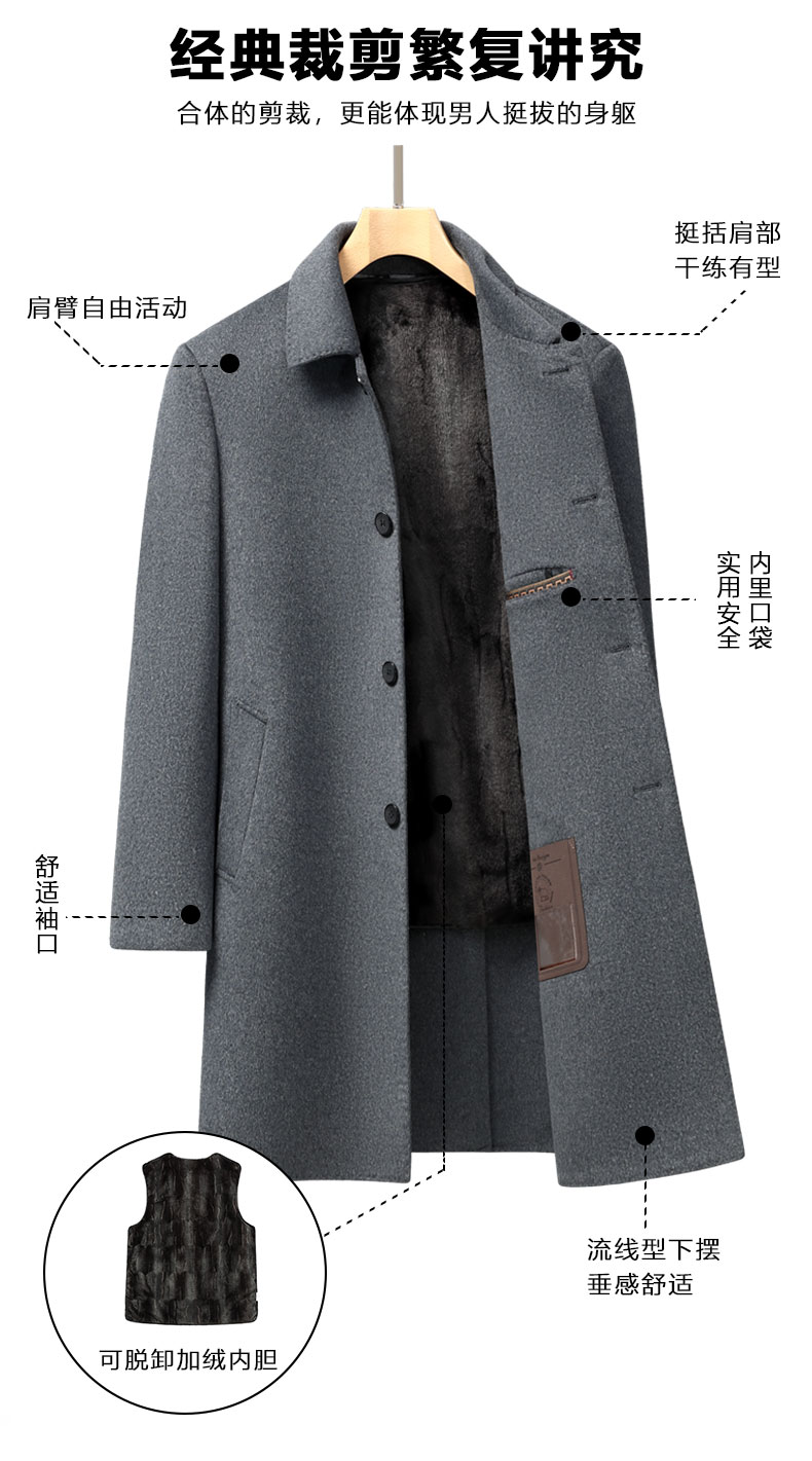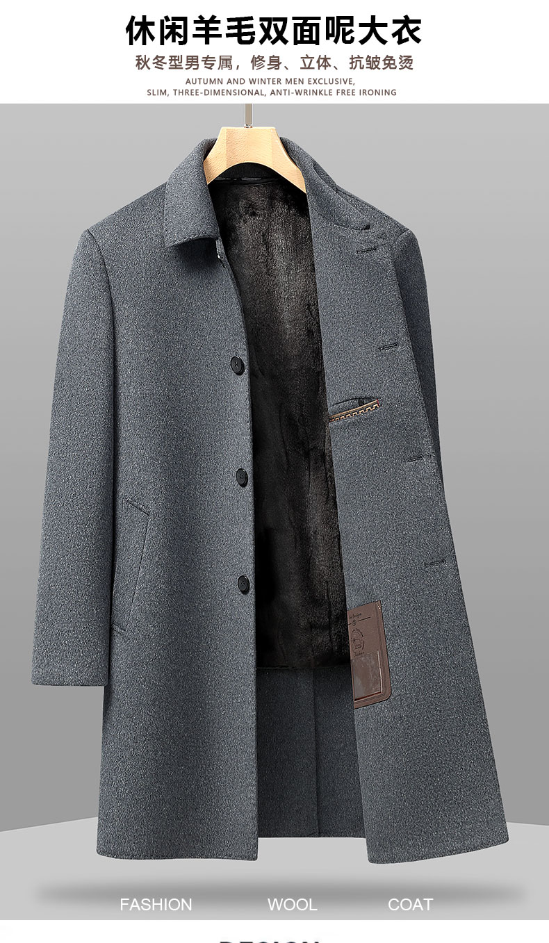 【可拆卸加绒内胆】【绵羊毛】【新款DXS】大依优型大码中长款翻领羊毛呢大衣外套商务夹克男宽松加肥加大码上衣胖子正装休闲