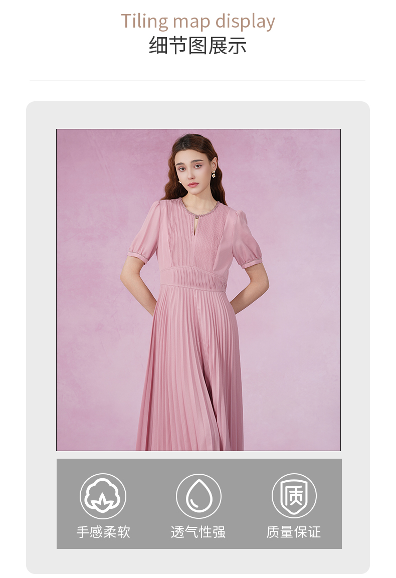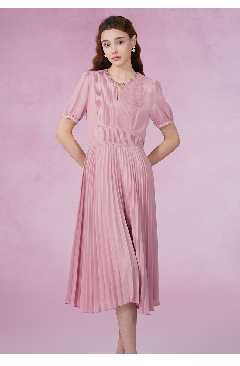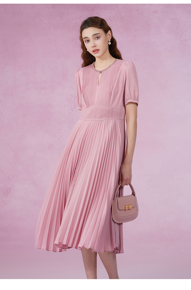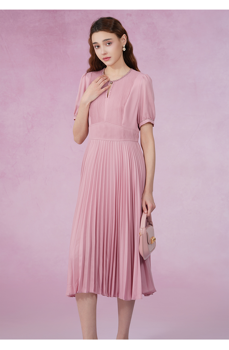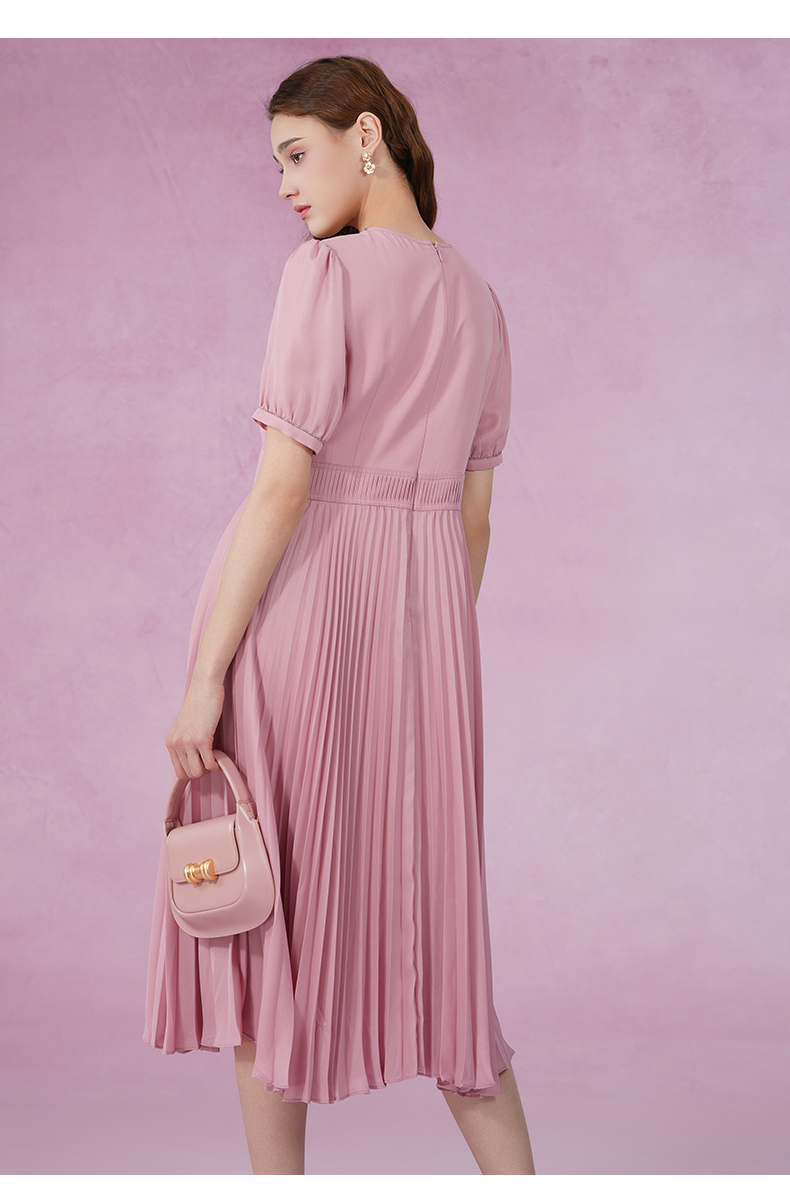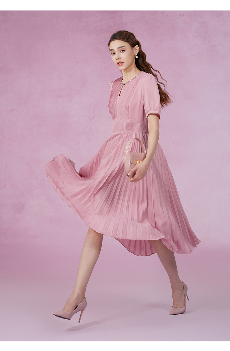 乔万尼新款连衣裙压褶设计收腰显瘦ET2E290