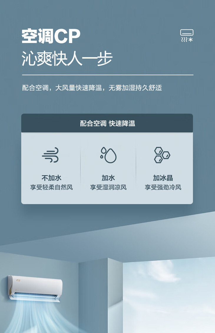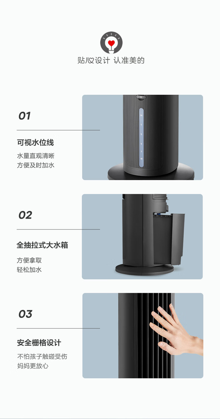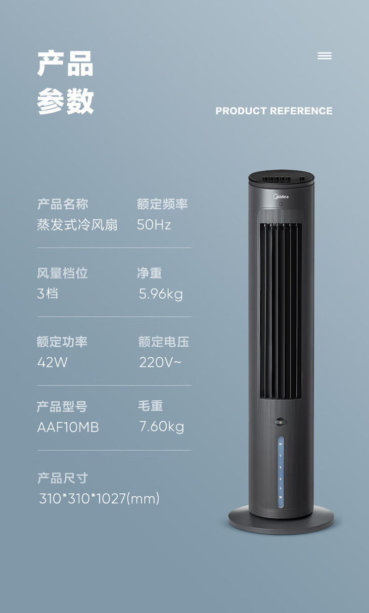 【美的 AAF10MB家用空调扇】净化加湿冷风扇 水冷降温无叶塔扇落地扇