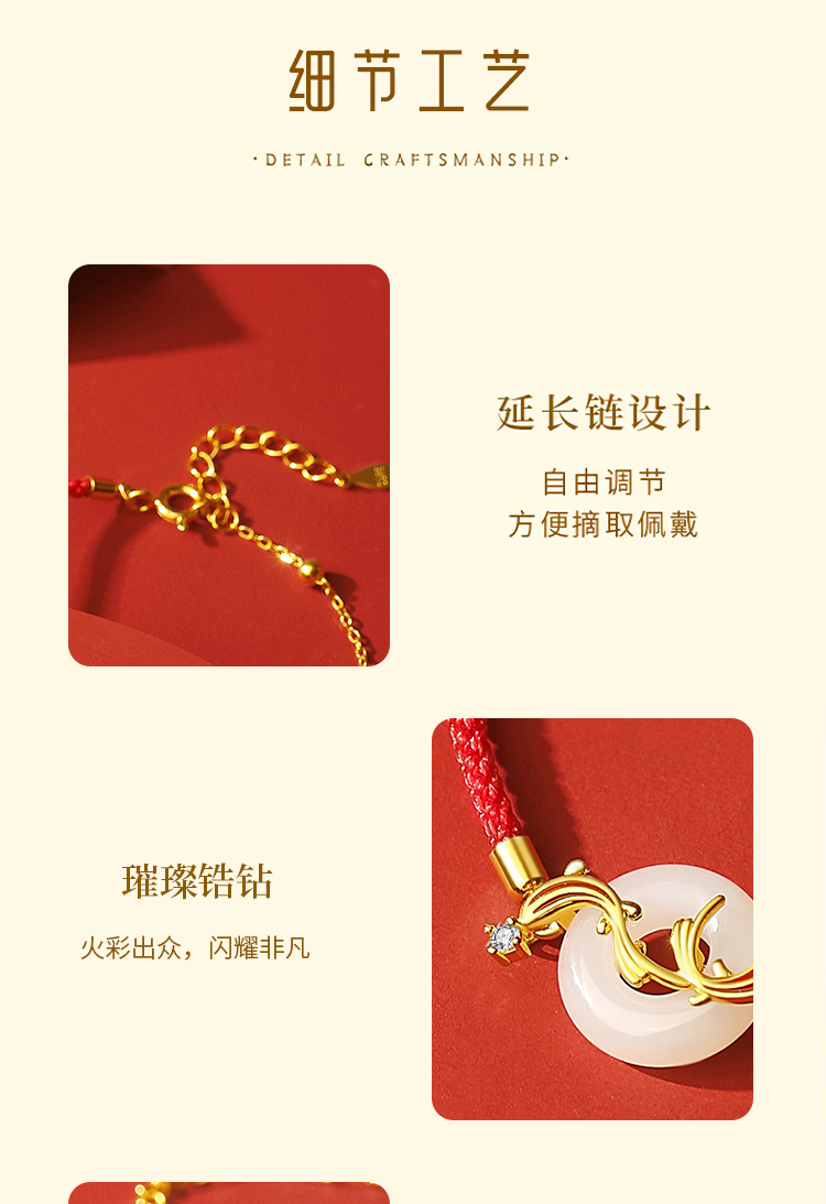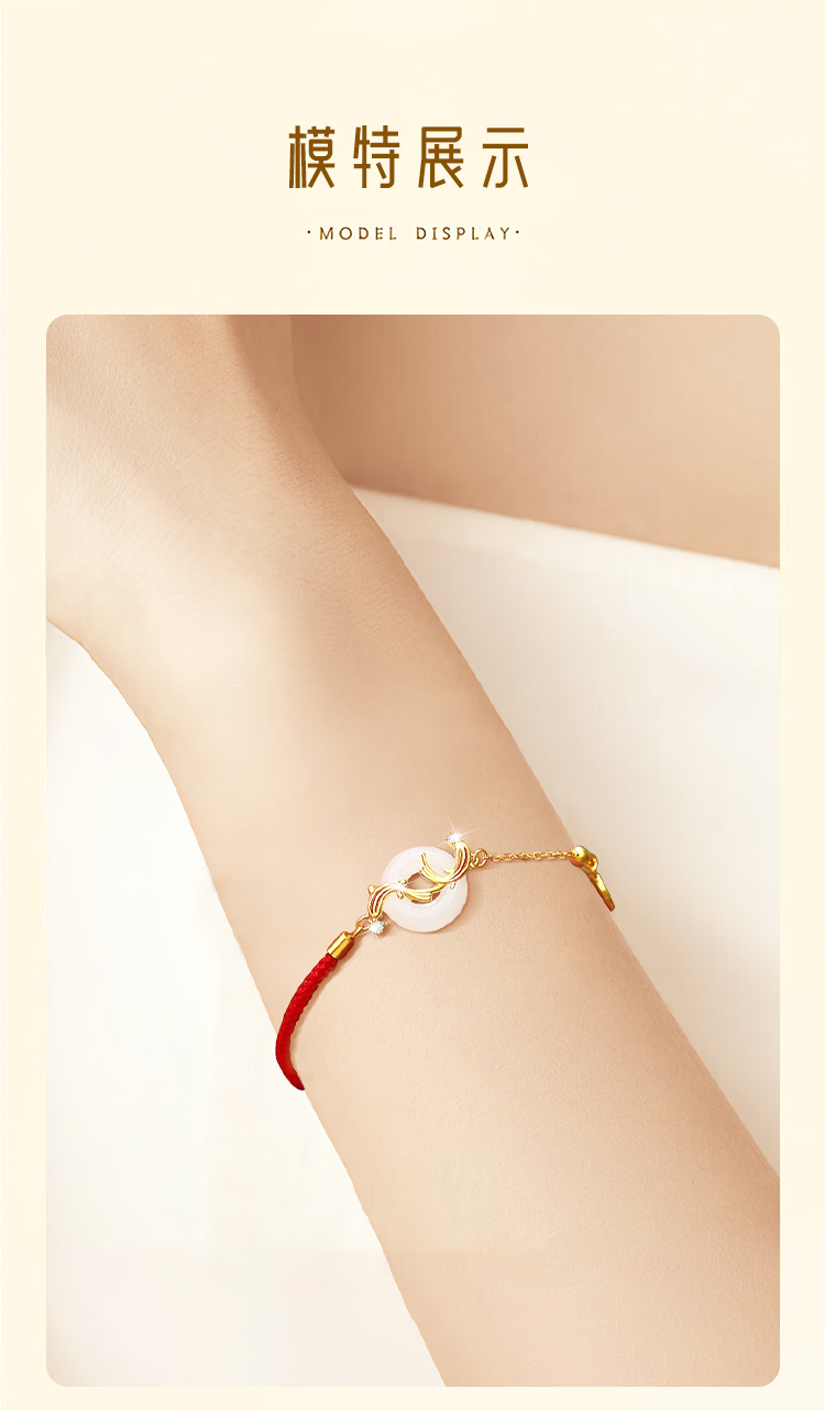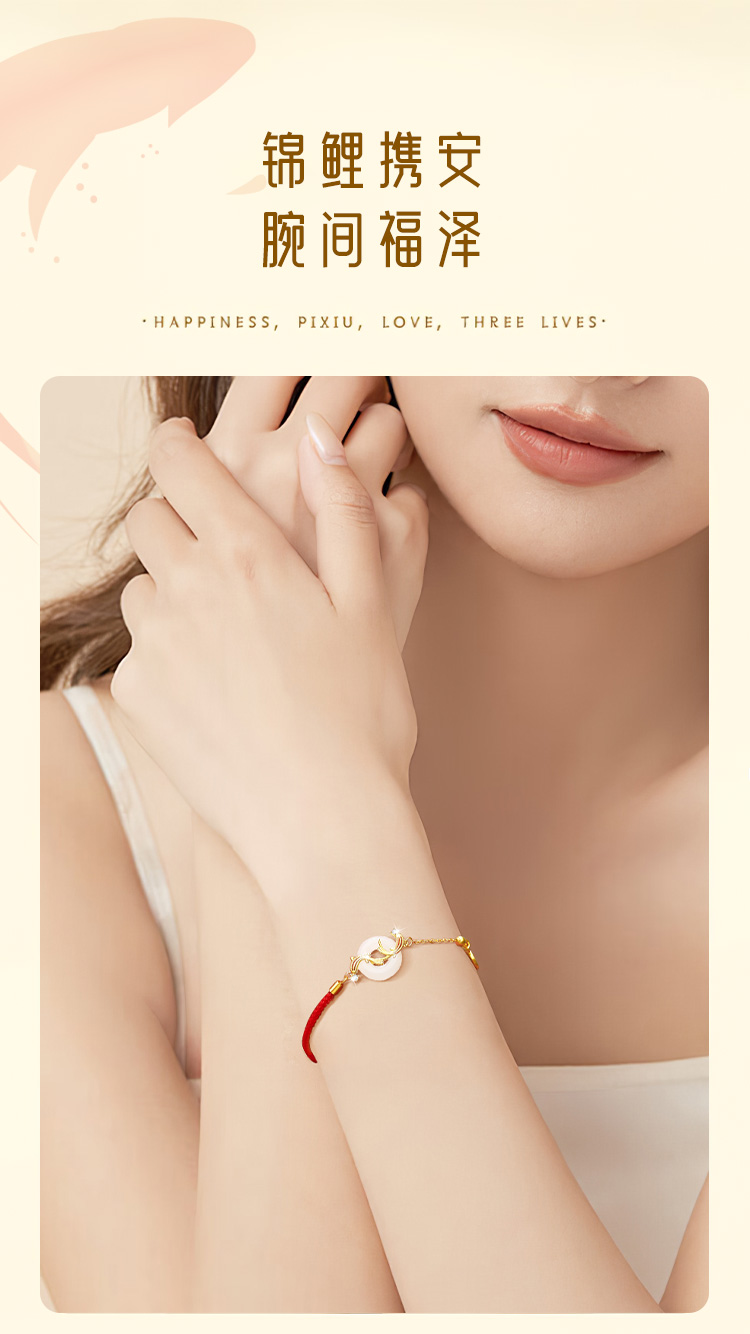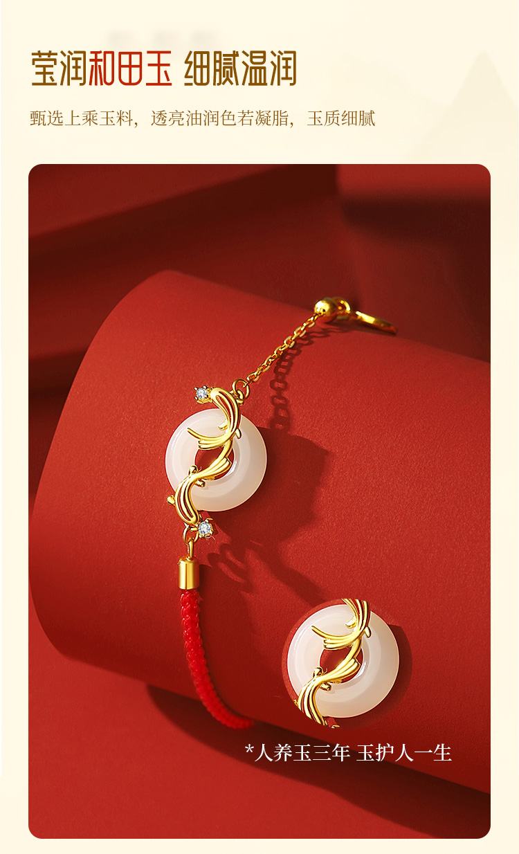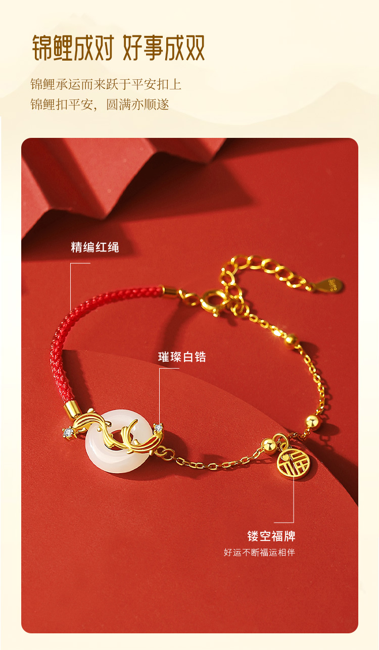 Winy925银红绳平安锦鲤和田玉手链配证书送女友闺蜜节日礼物