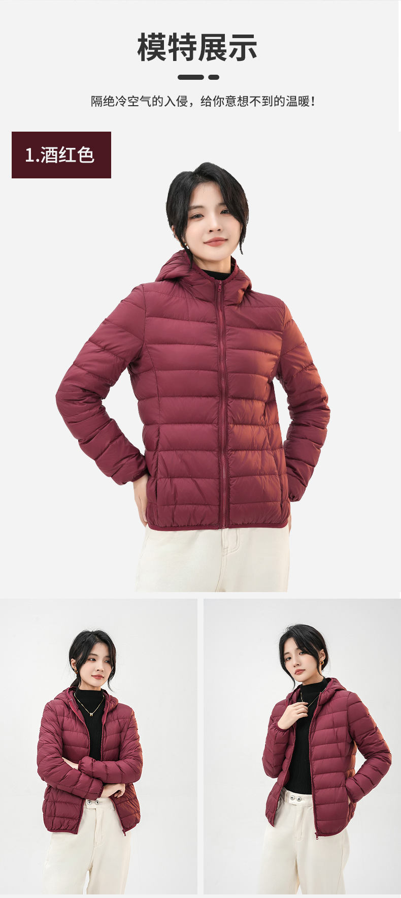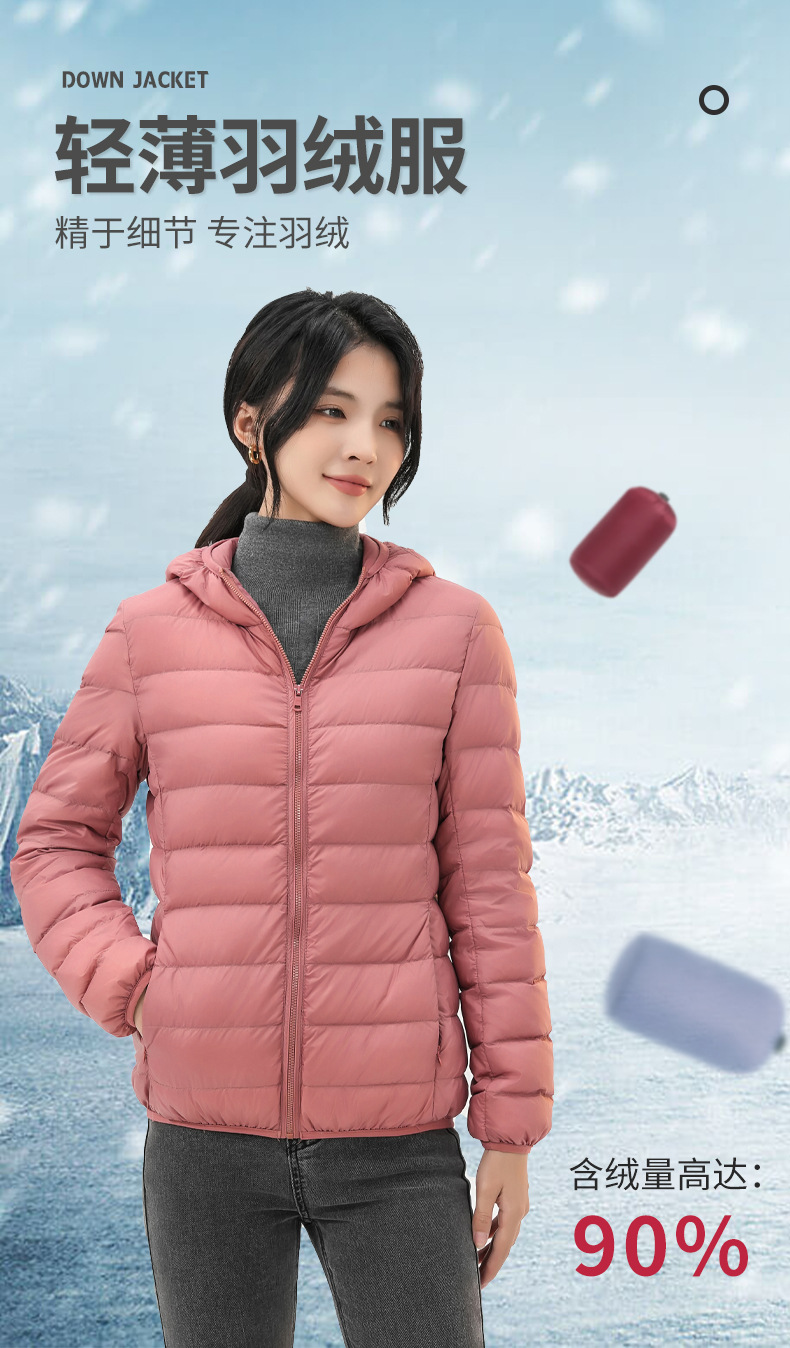 丁摩 轻薄修身90绒连帽立领羽绒服(送收纳袋)790DB1491201