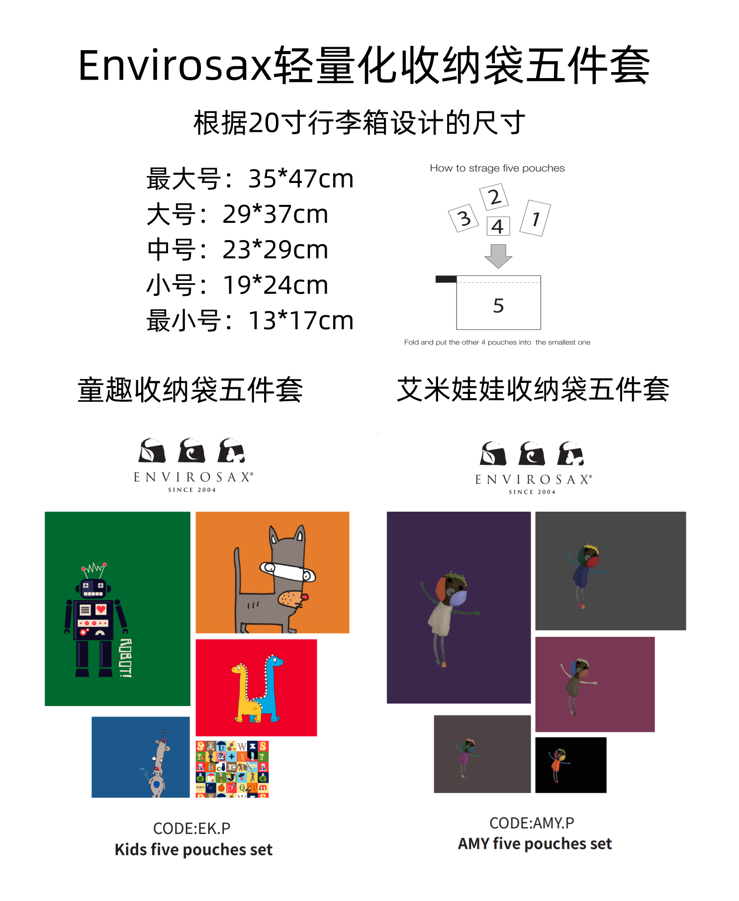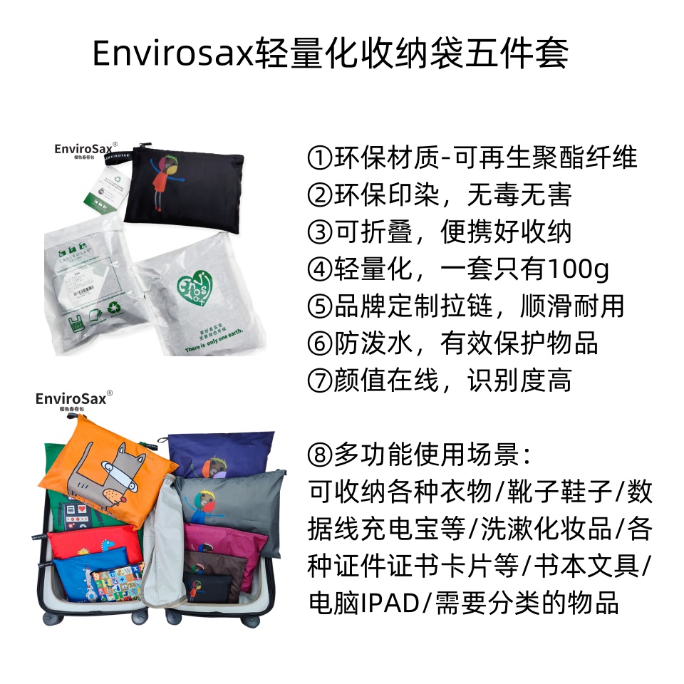 EnviroSax旅行五件套收纳袋多功能物品分类袋洗漱袋内胆包脏衣袋