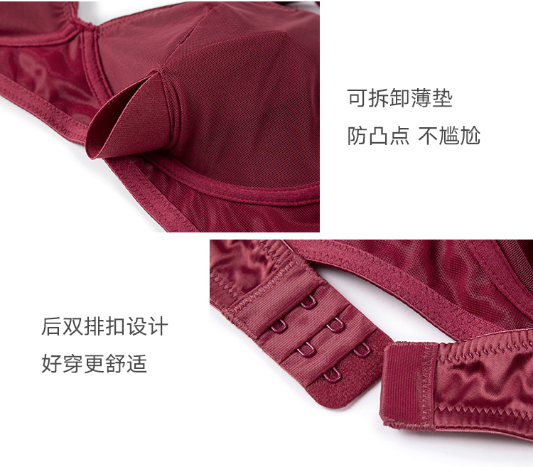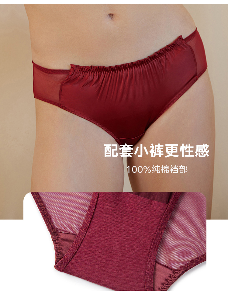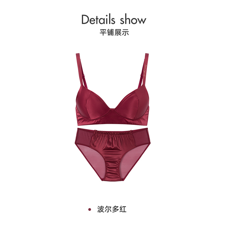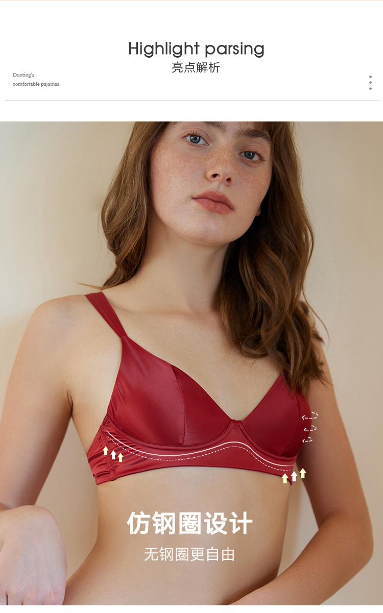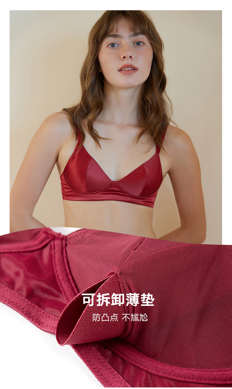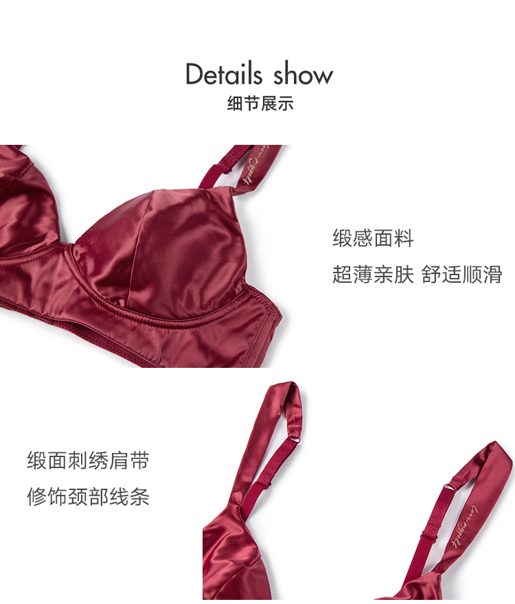弗利少女法式缎面内衣女士文胸红色小胸 胸罩舒适无钢圈薄款