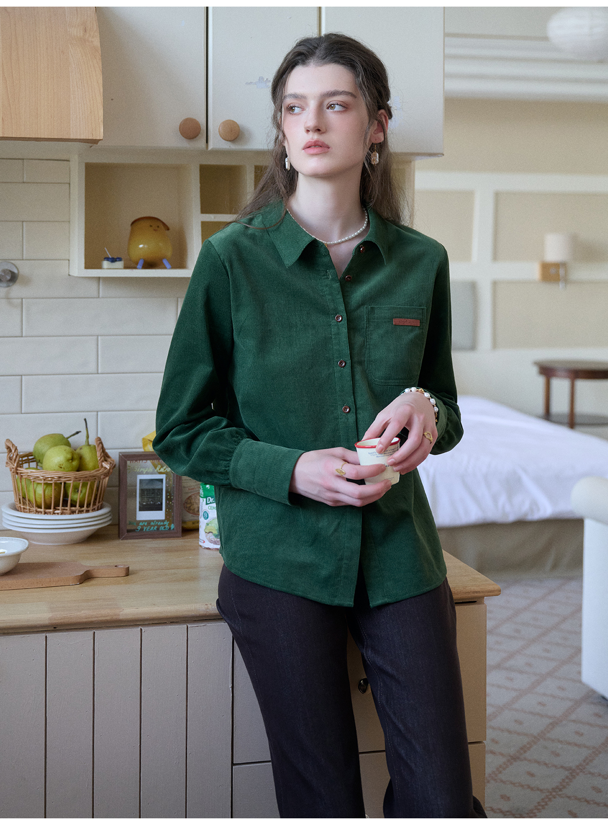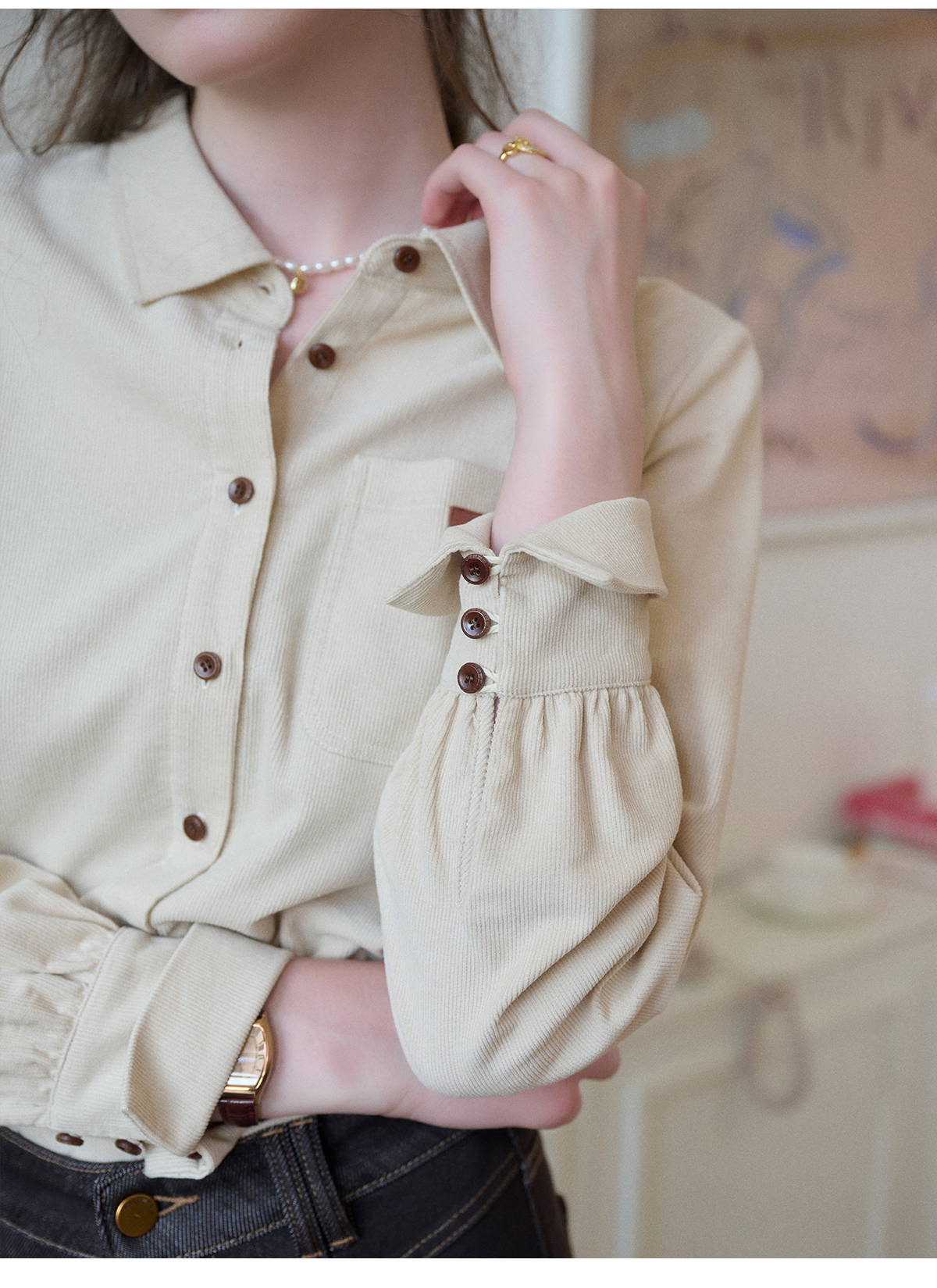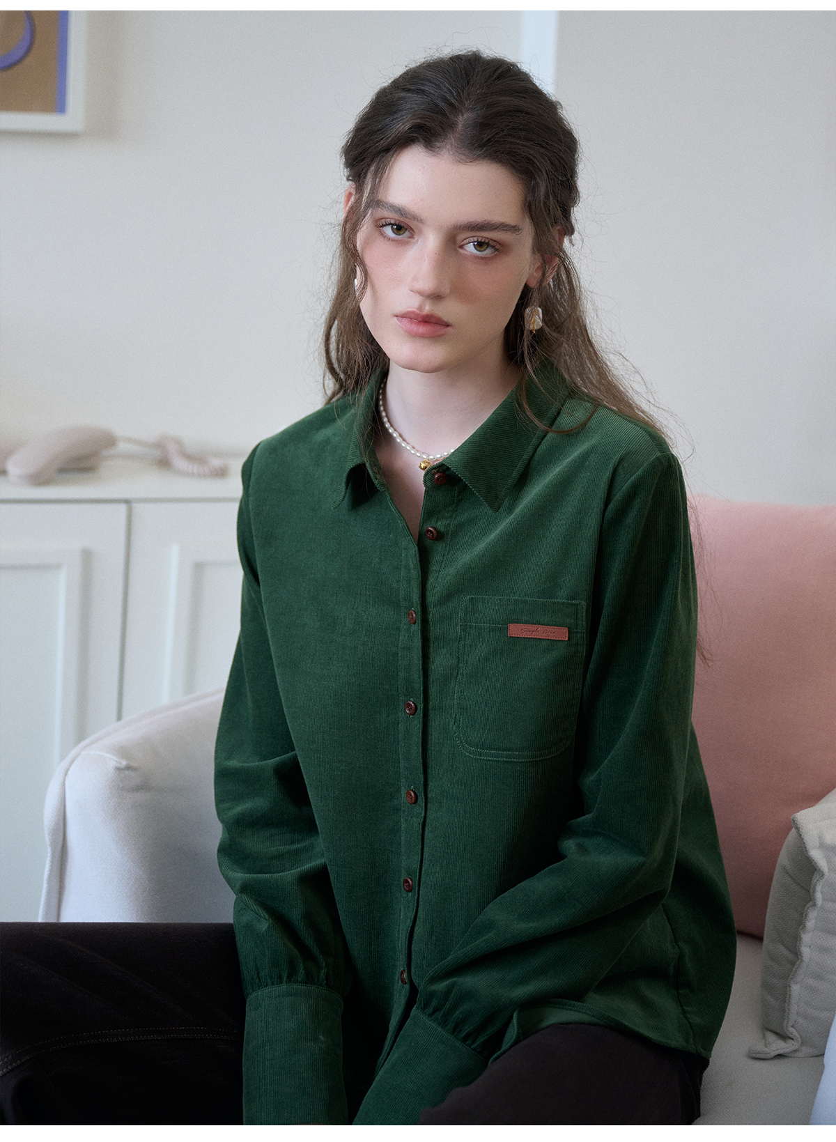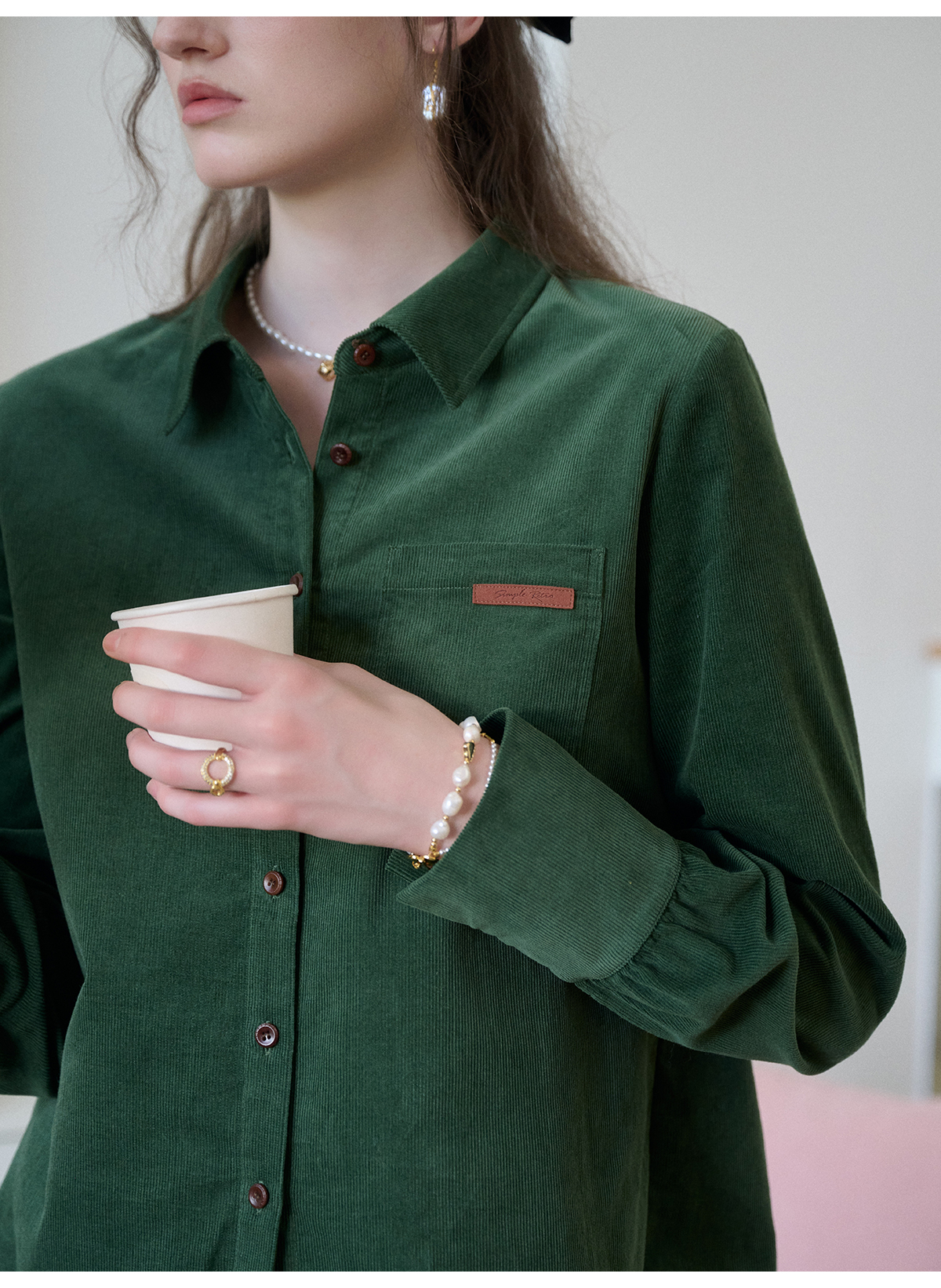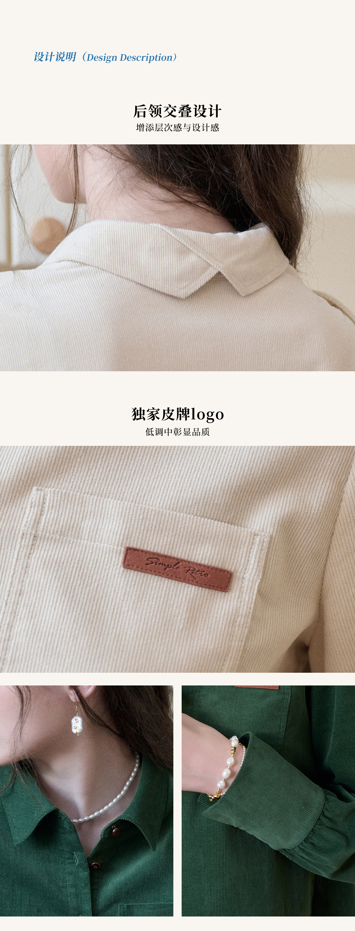 SimpleRetro法式复古百搭灯芯绒衬衫女上衣