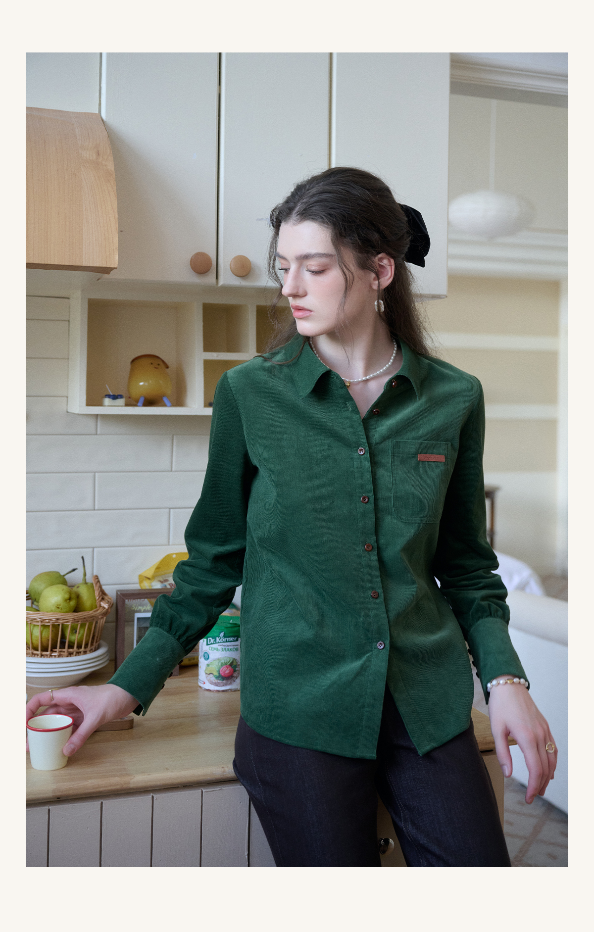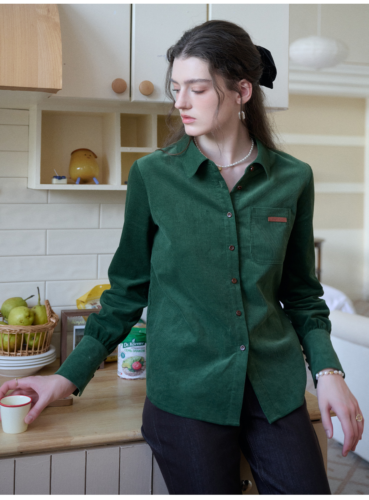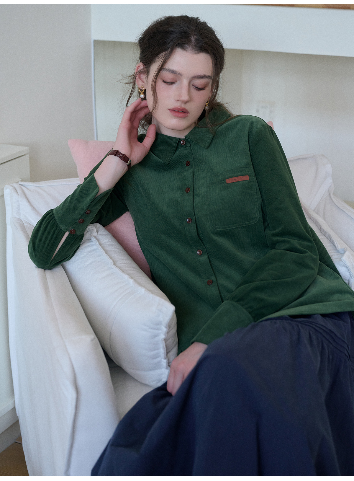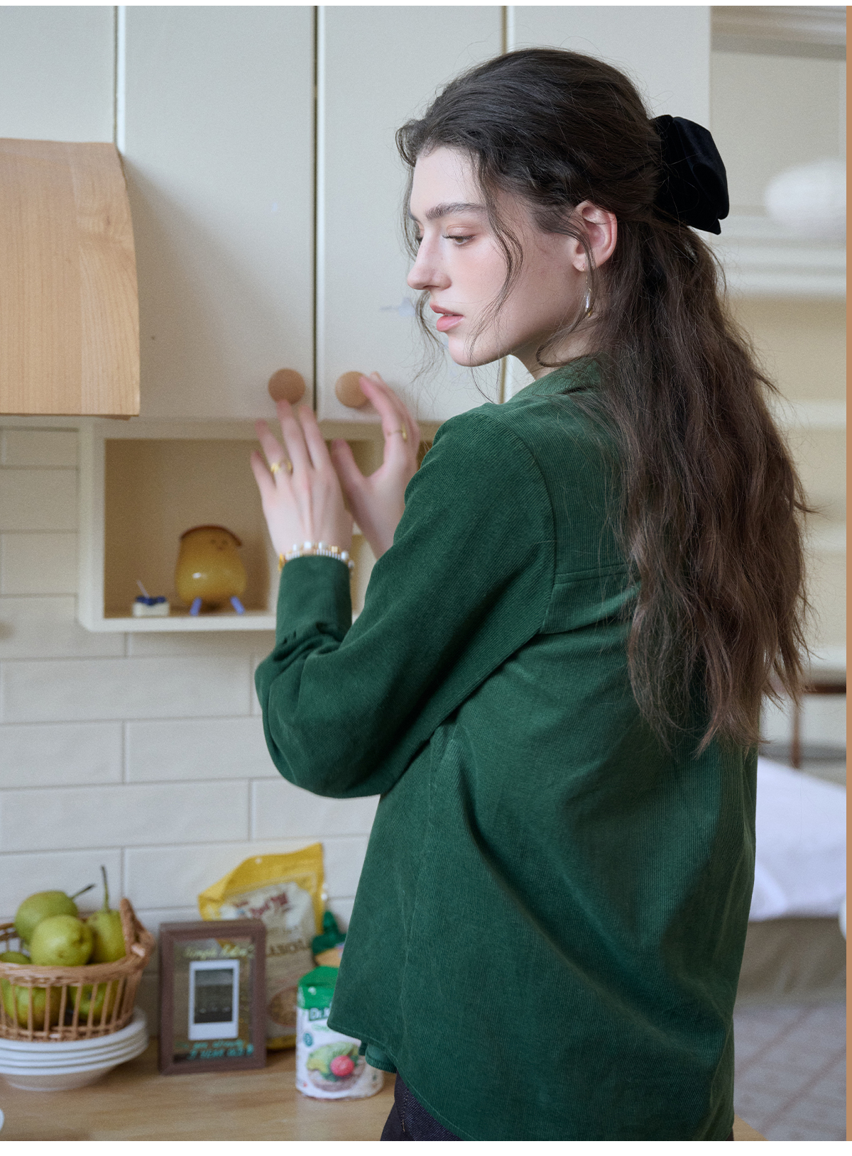 SimpleRetro法式复古百搭灯芯绒衬衫女上衣